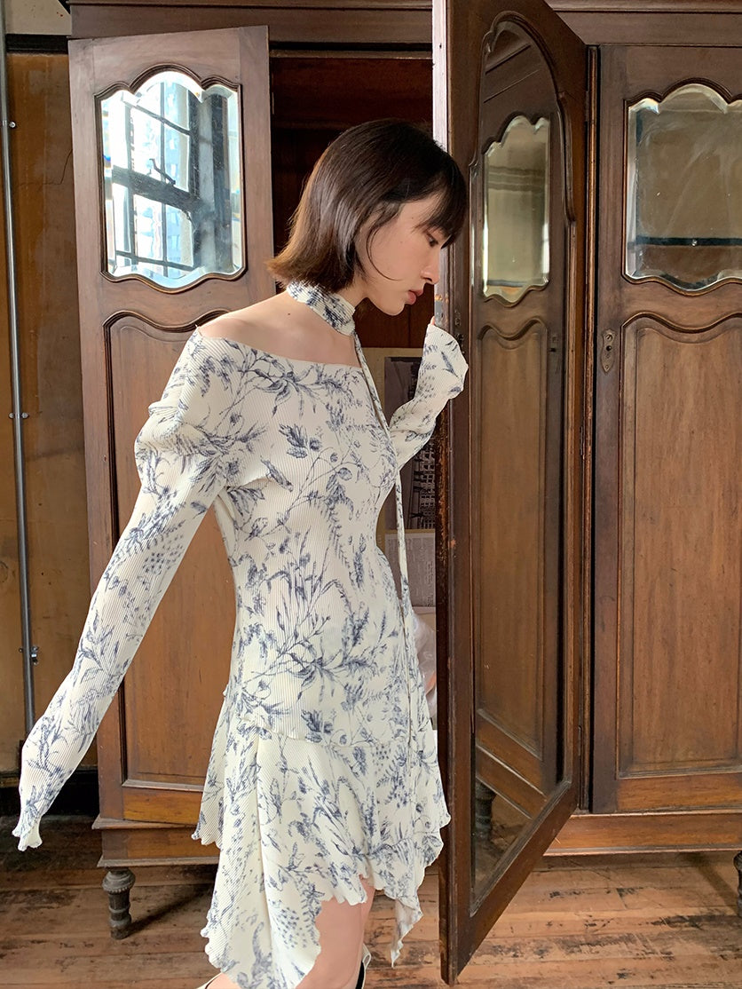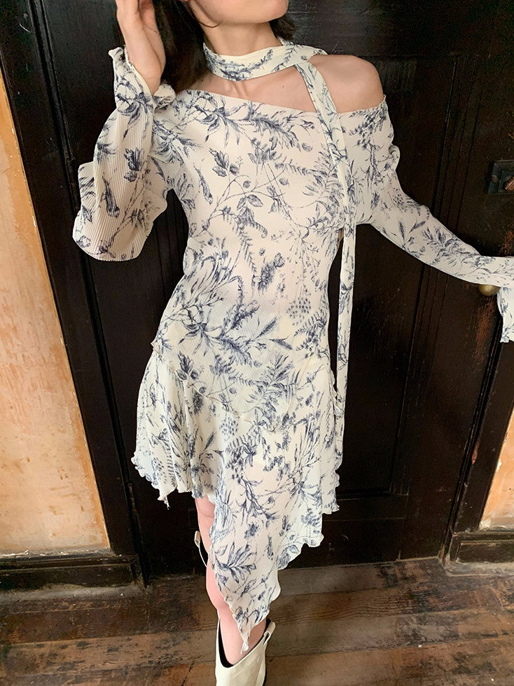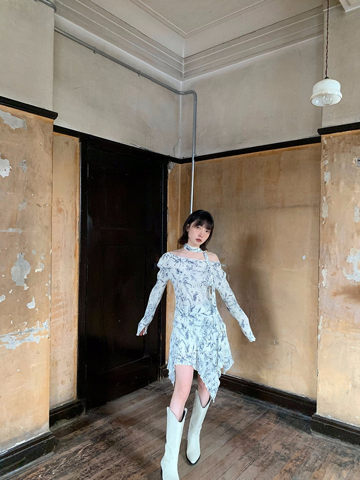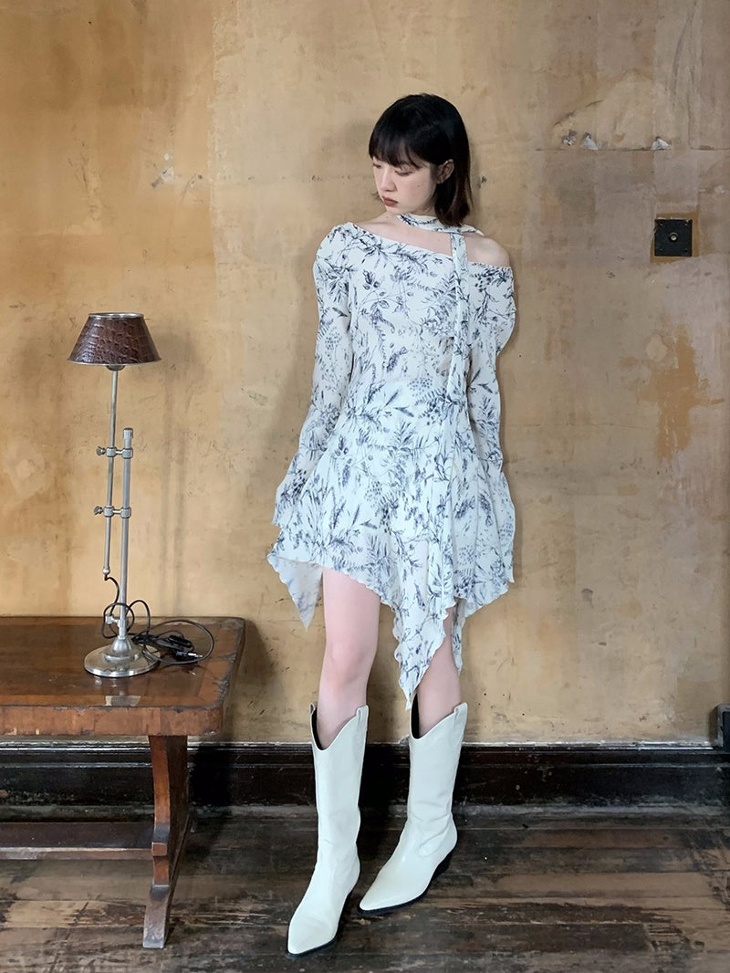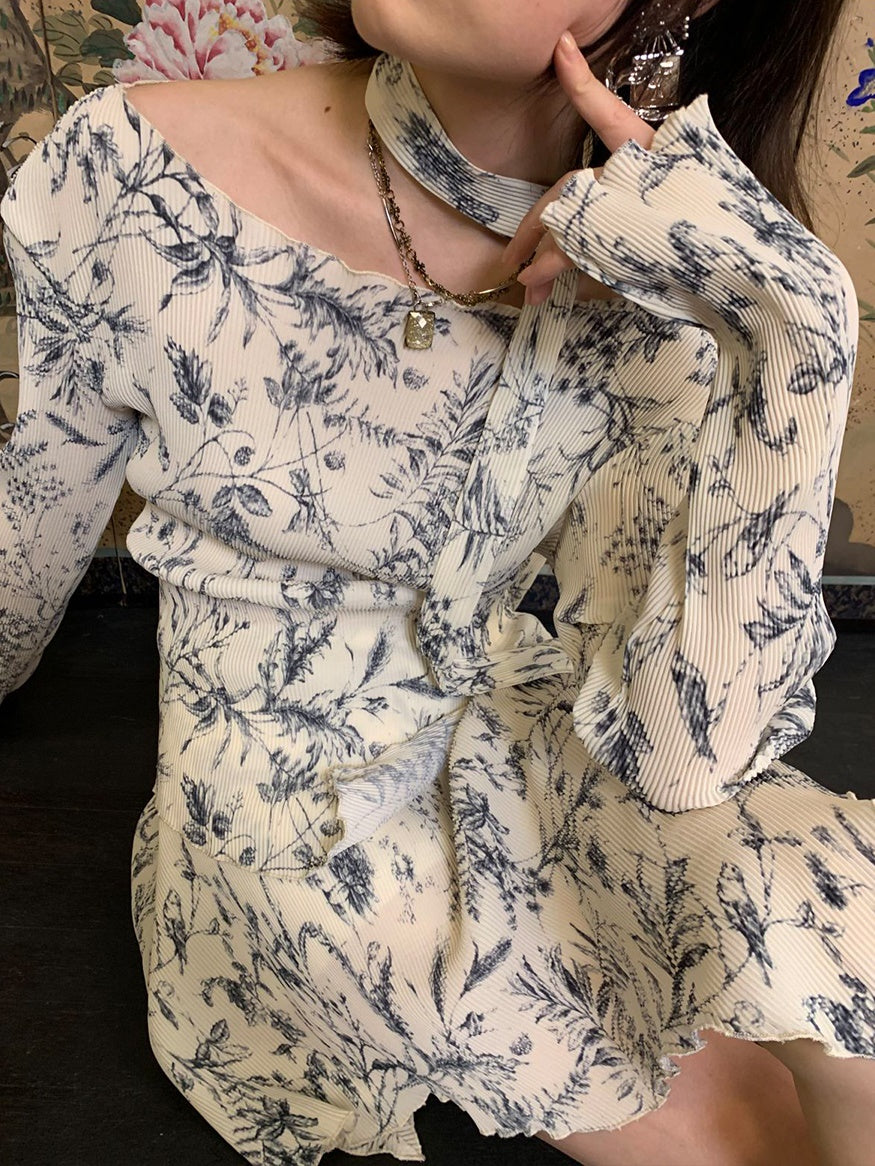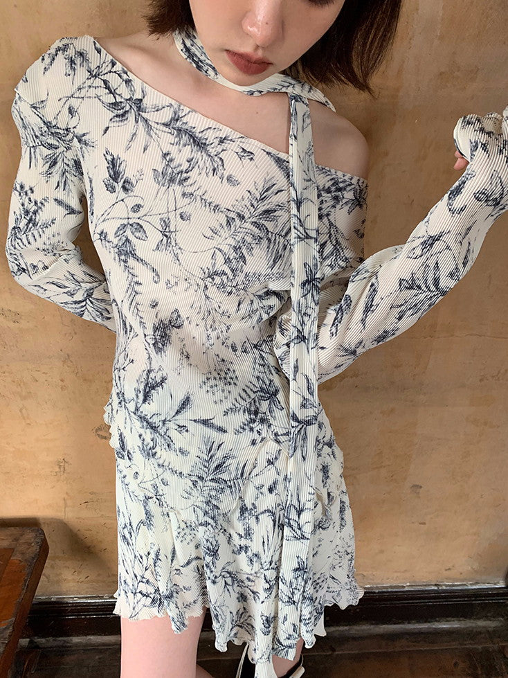 Asymmetrieblume Off-Shouler Retro Bluse & Rock