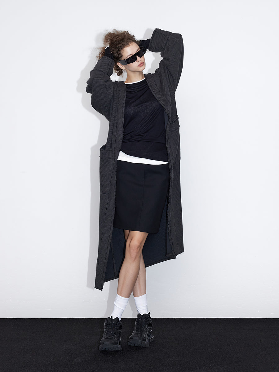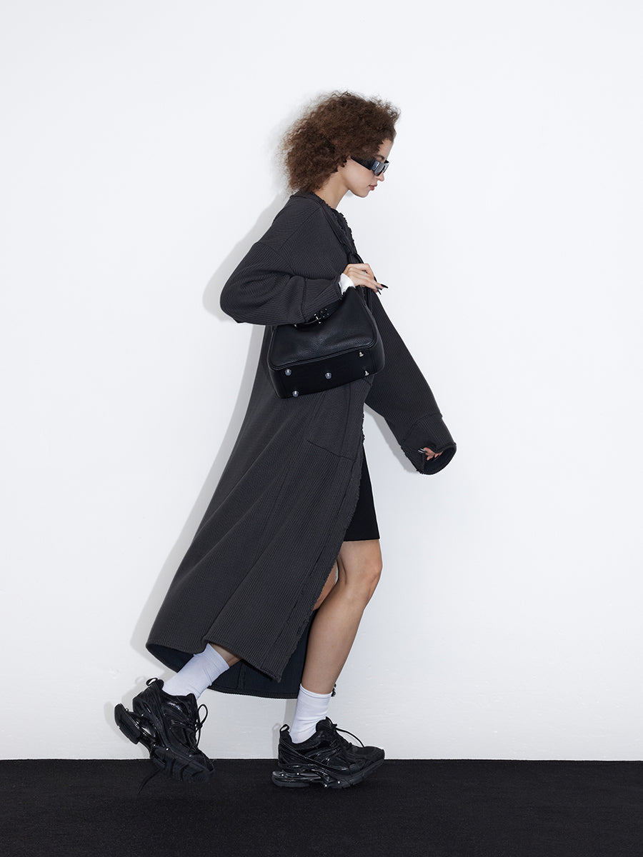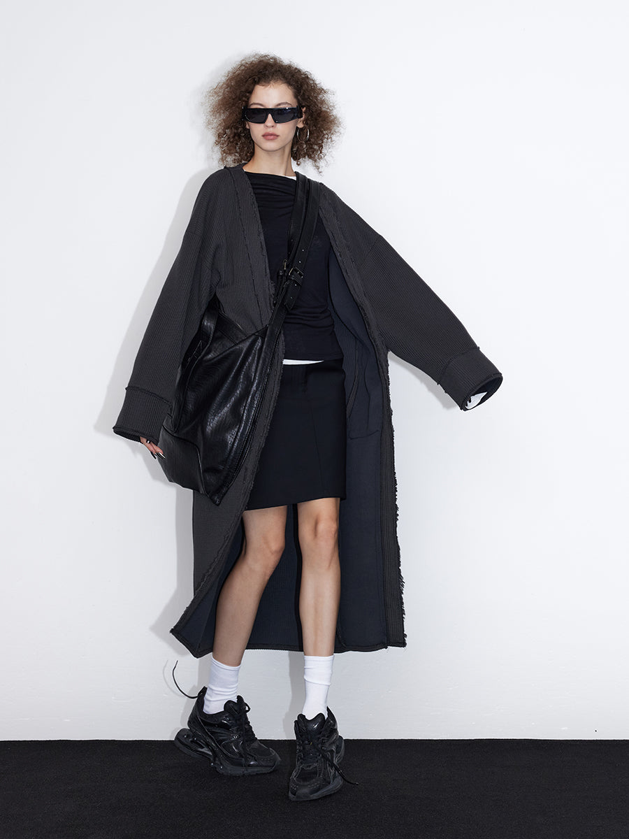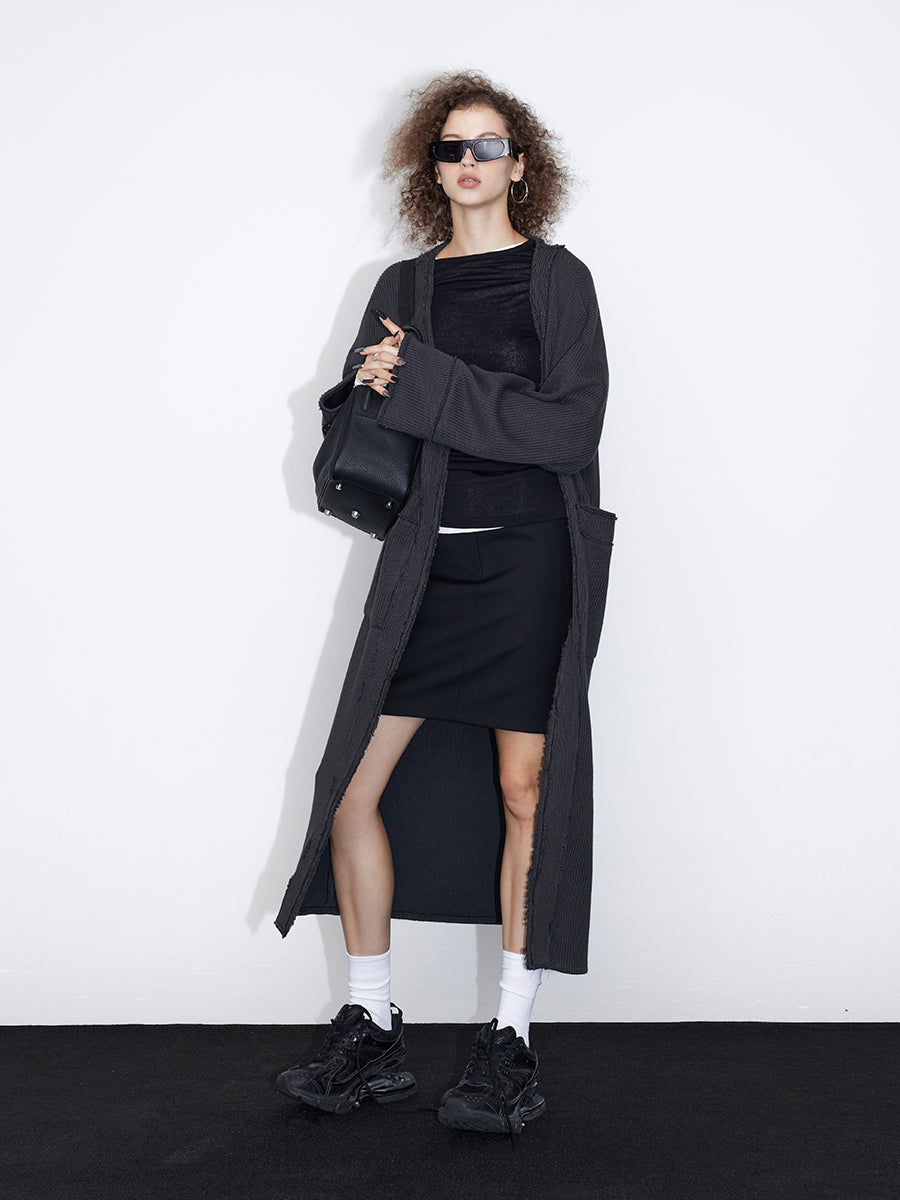 Beschädigter Vintage Retro-Strick-Long-Cardigan