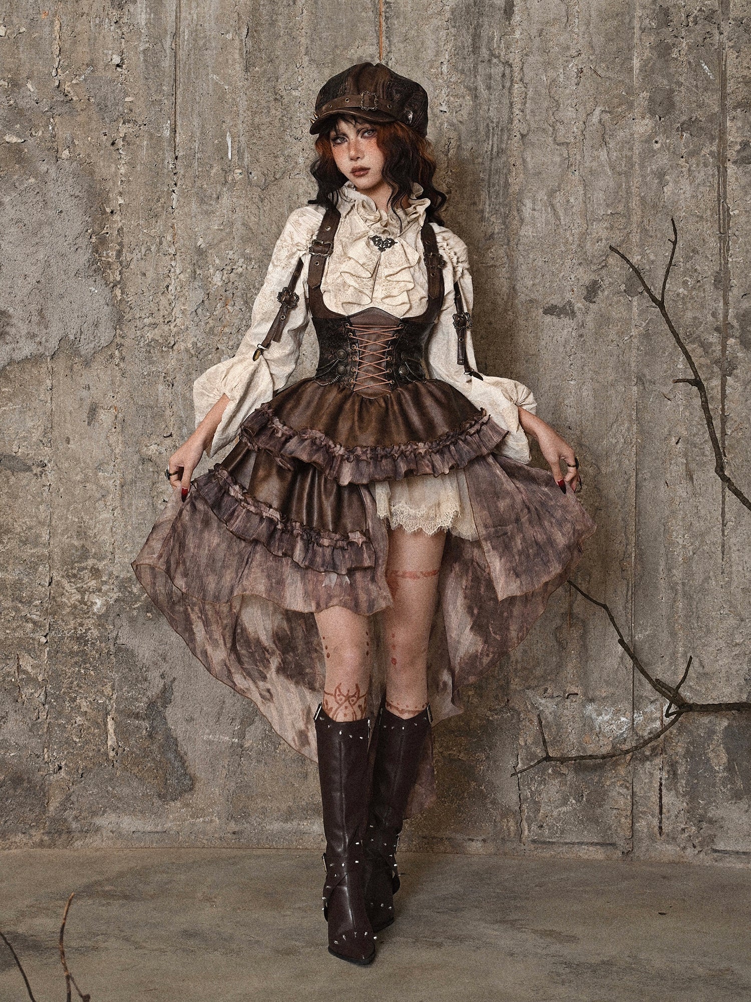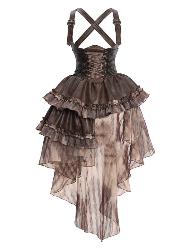 Cintage Gothic Schnürfleisch Leder Ciffon ein Stück & Pannier