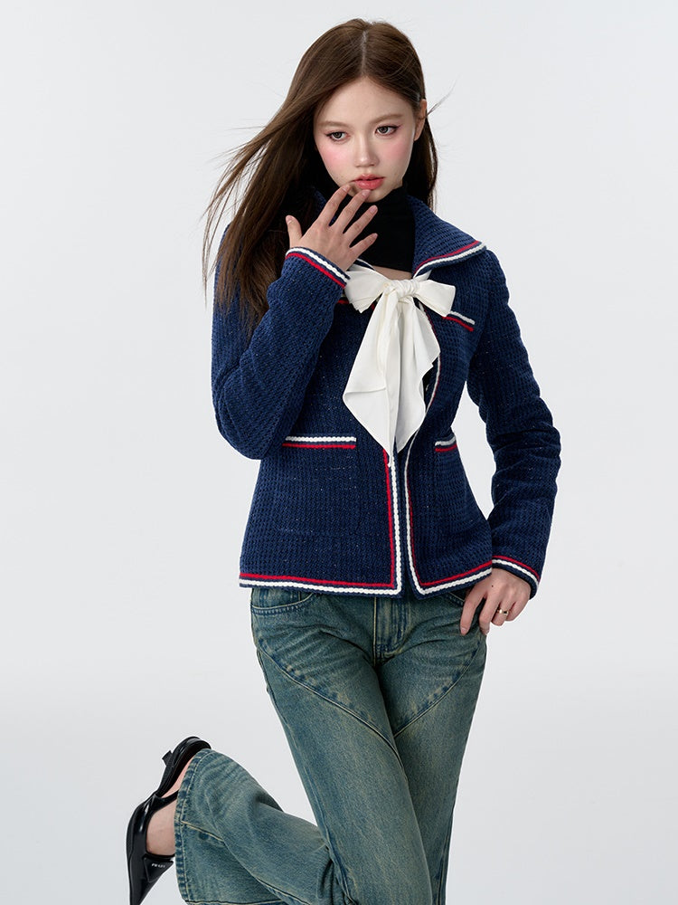 College -Style -Marinekragen Bow Tweed gepolsterte Jacke
