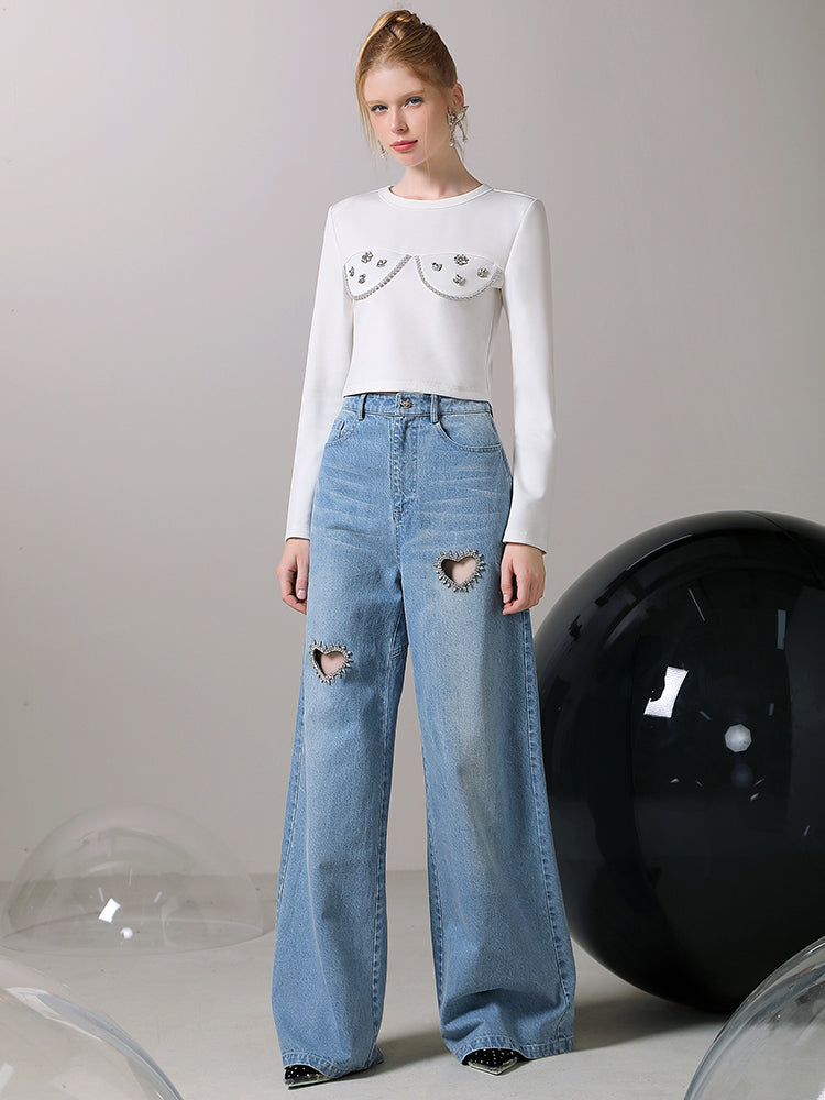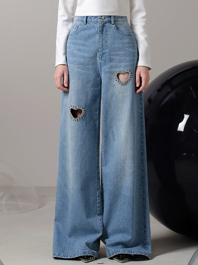 Denim-Herz-geschnittene Bijou Nichi-Breithosen