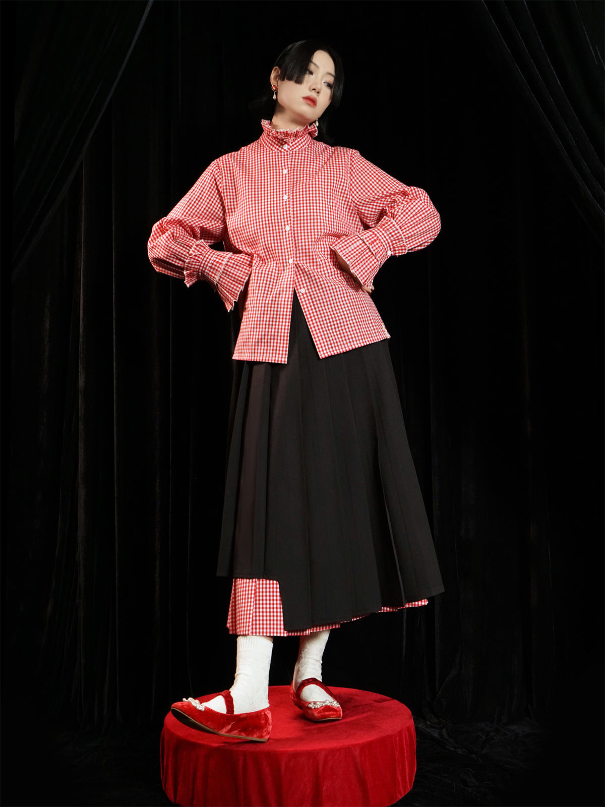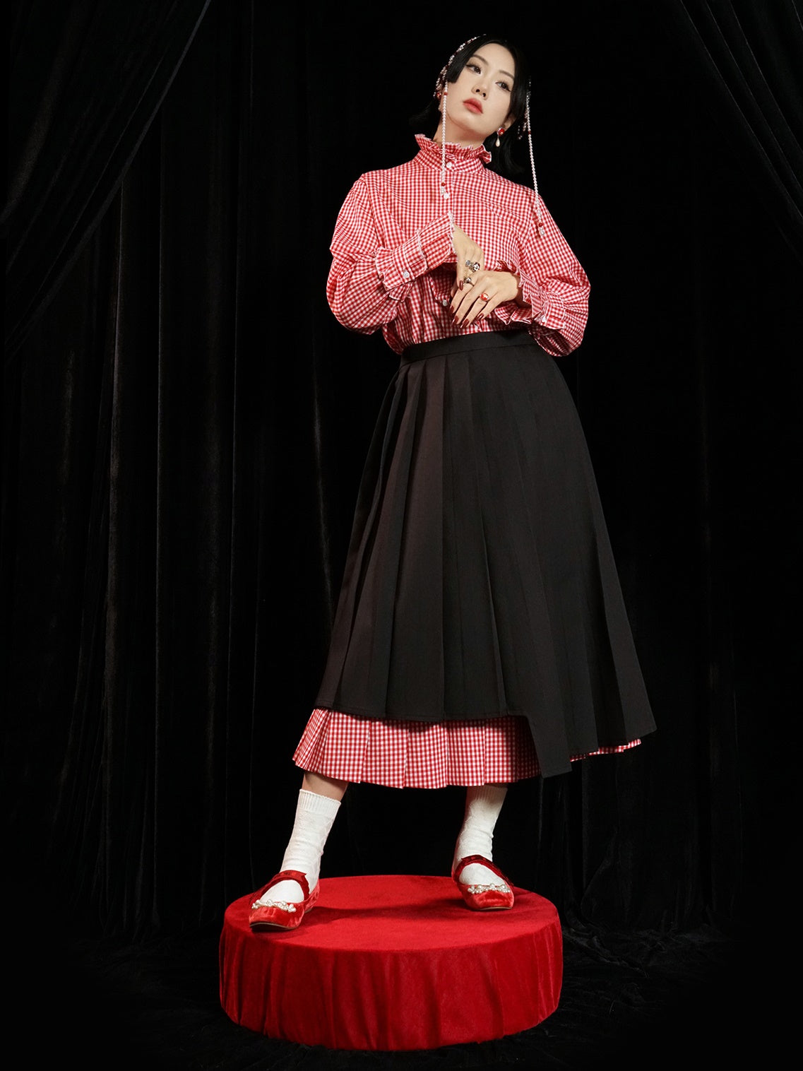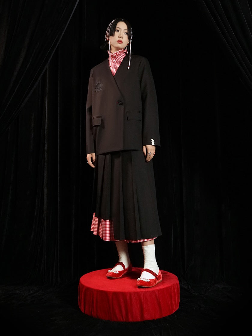 Doppelschichtige Plaid-Faltenrock