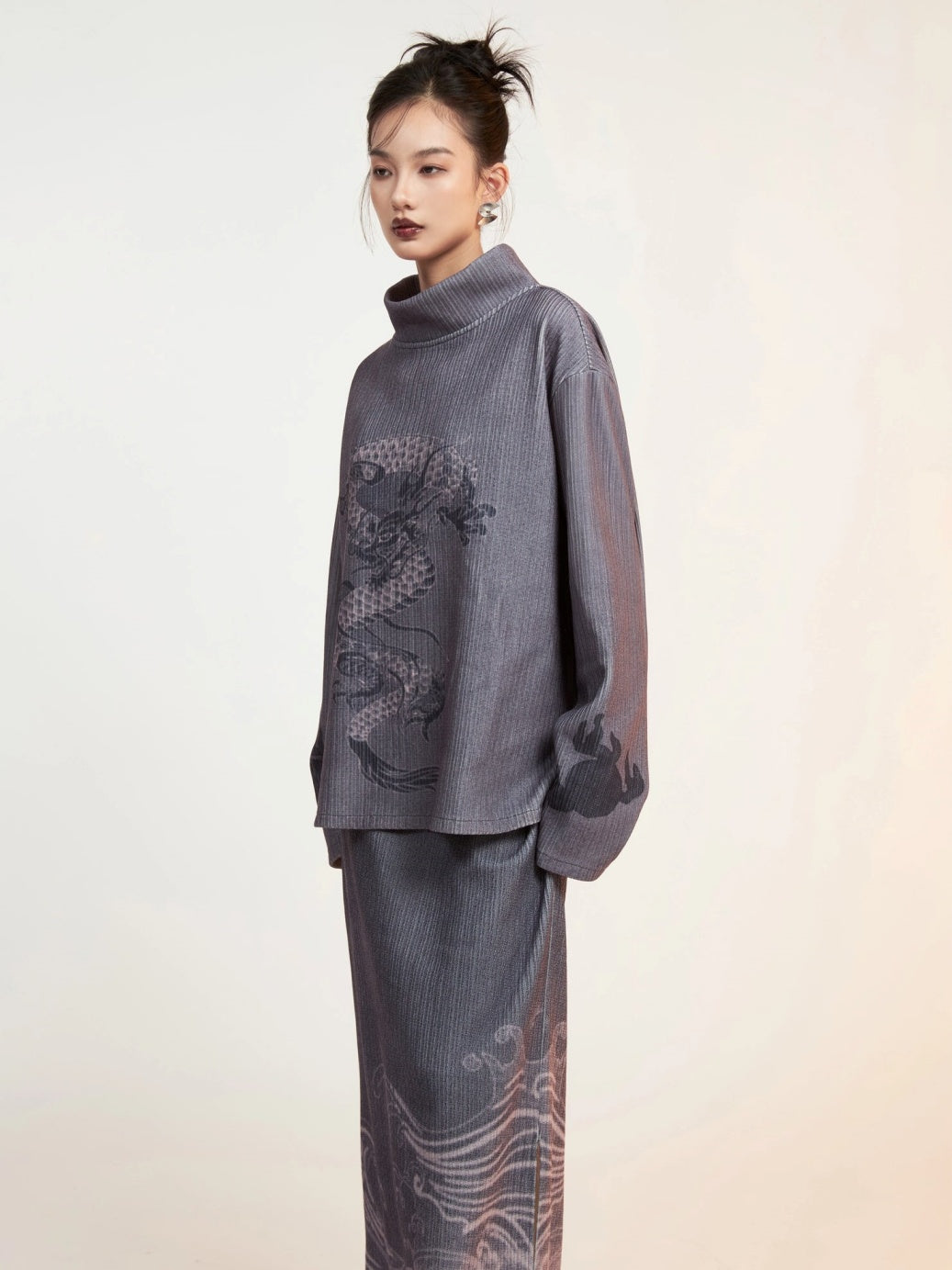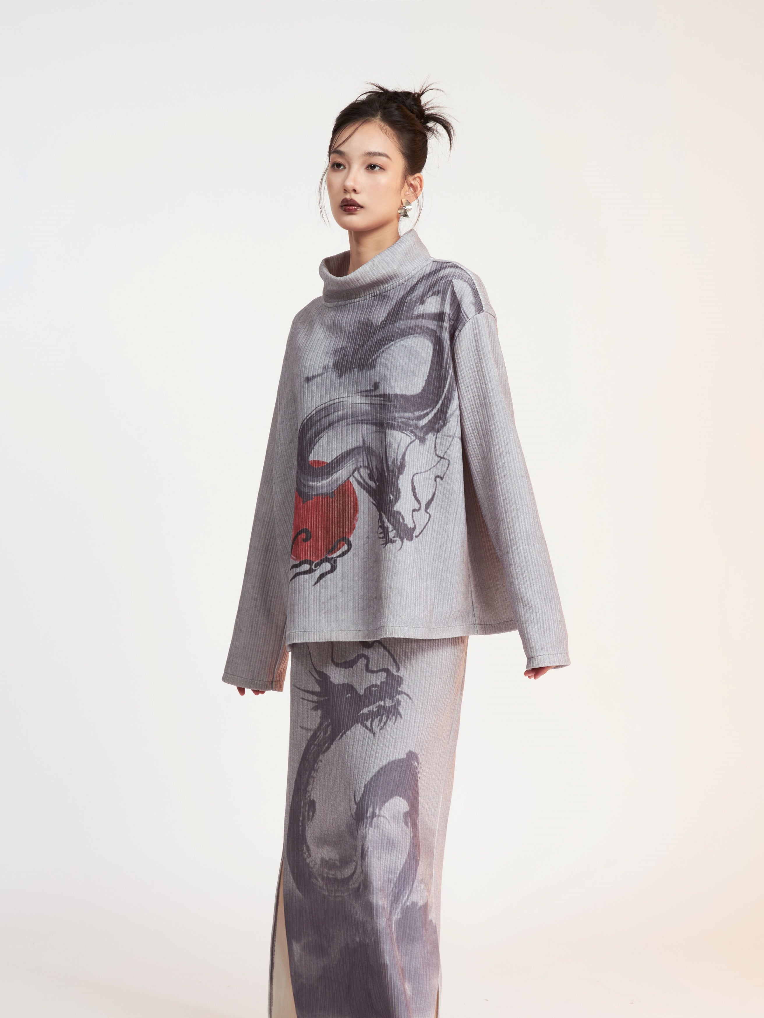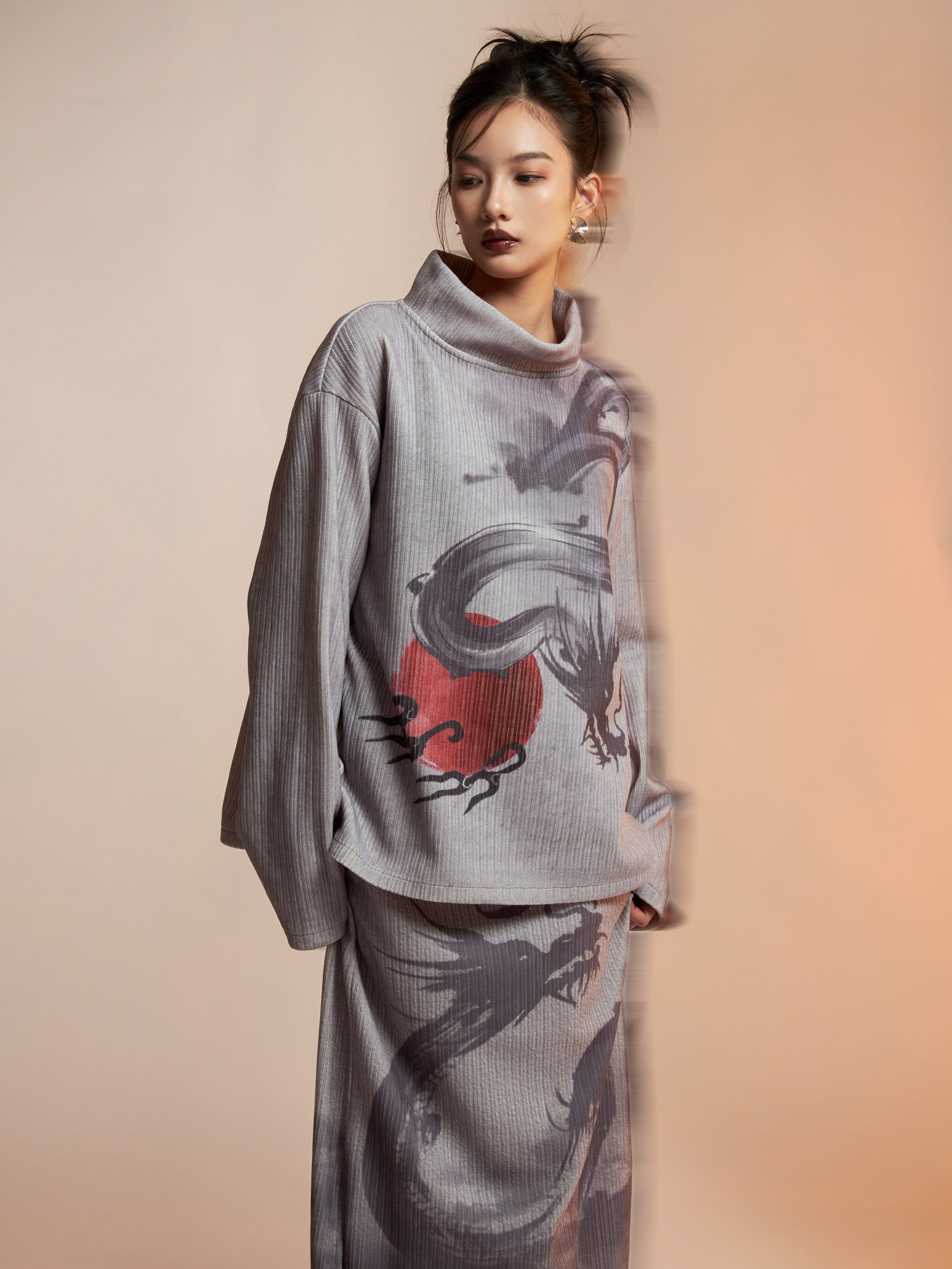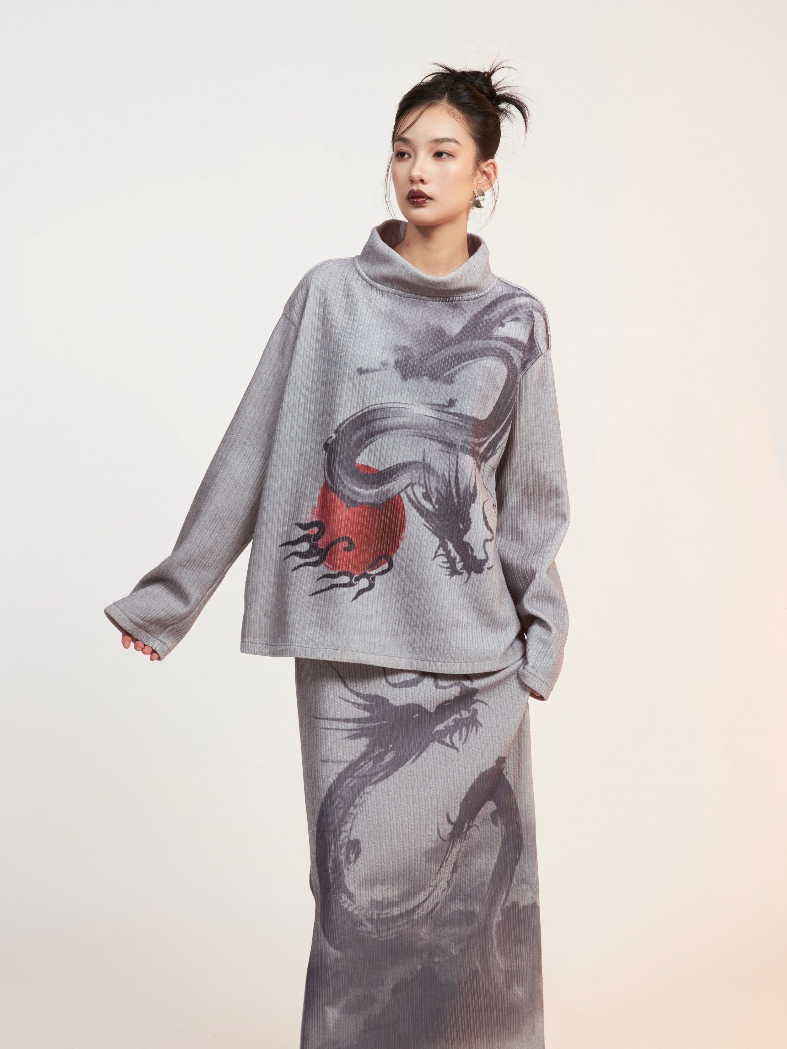 Drachendruckgedruckter Mock-Hals-Hals Cutssew & Spit Box Rock