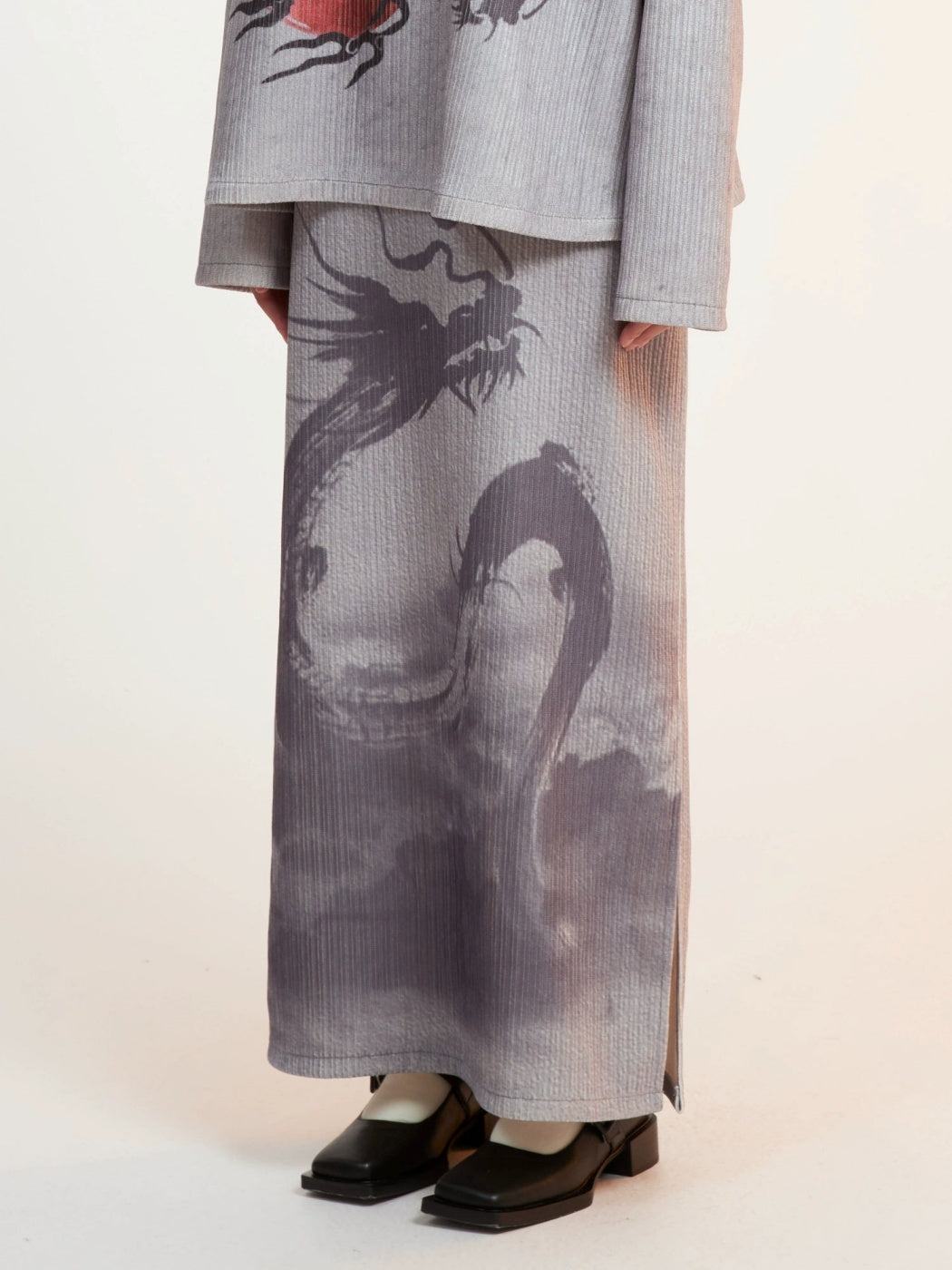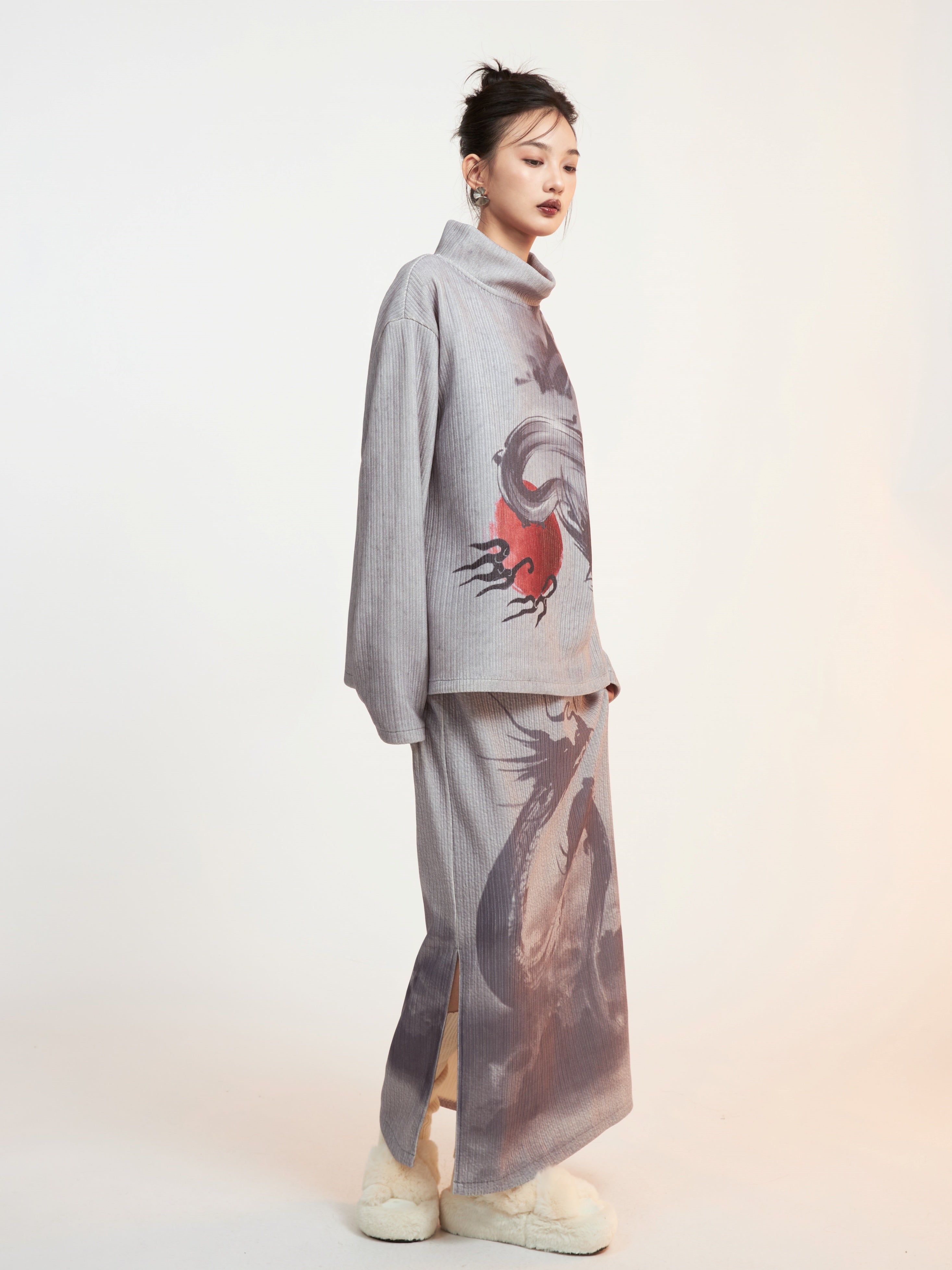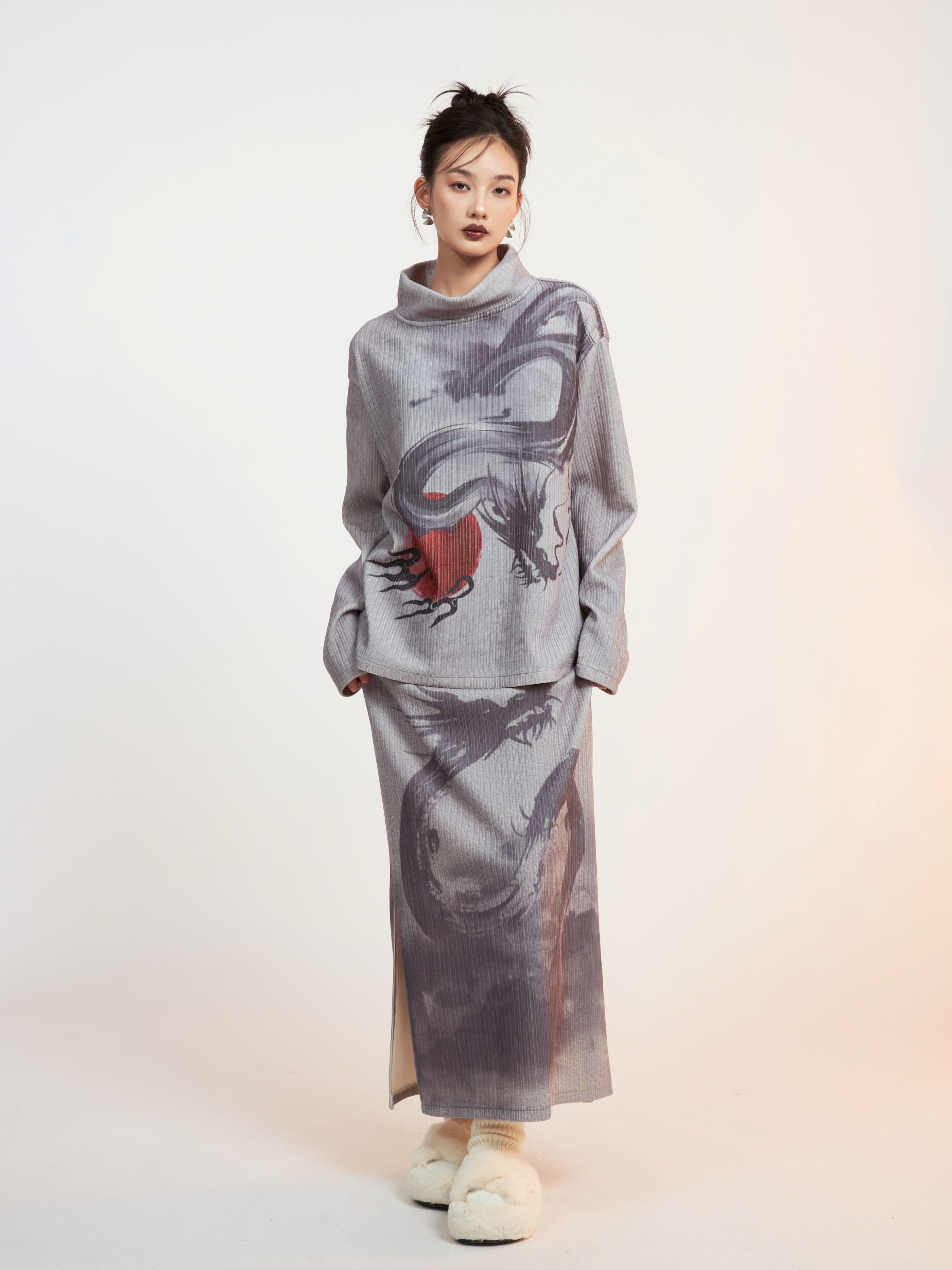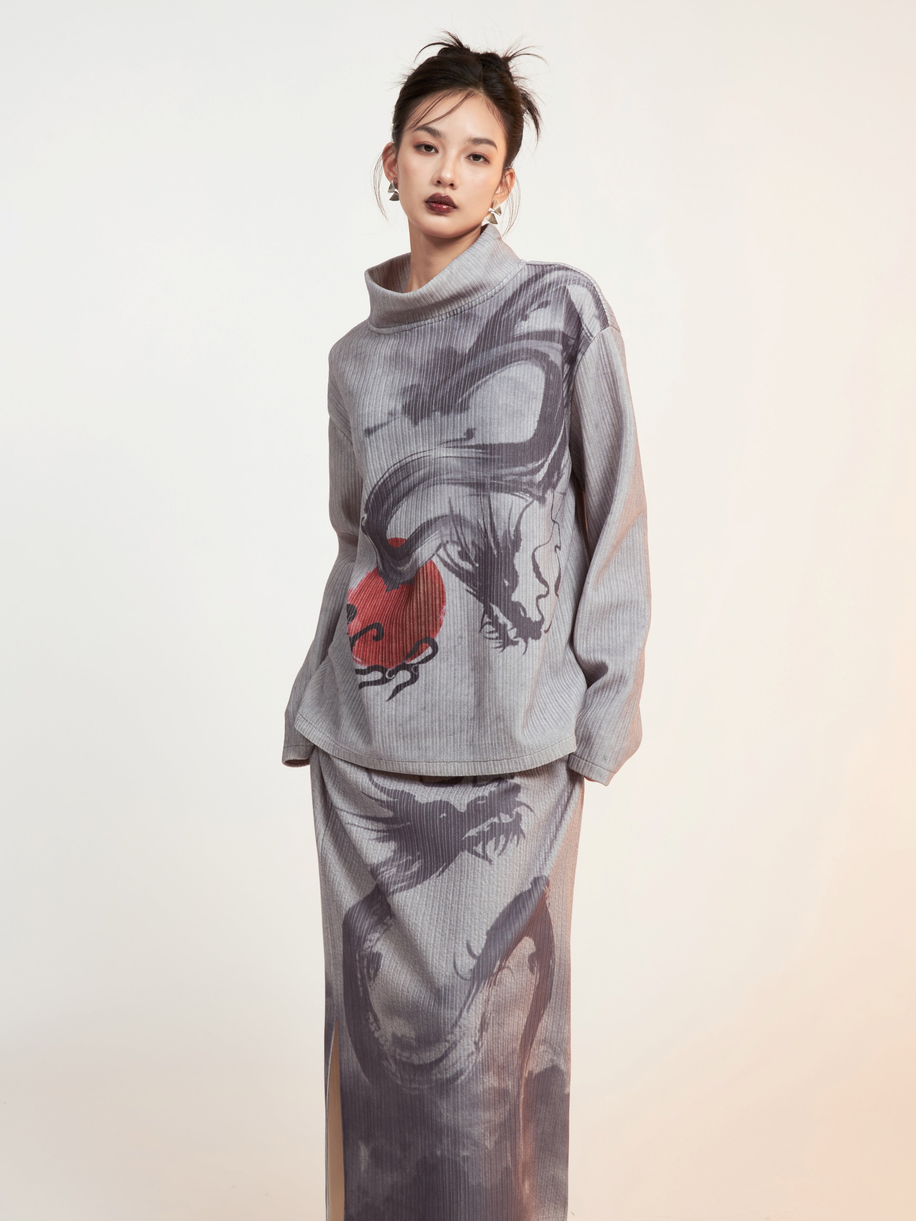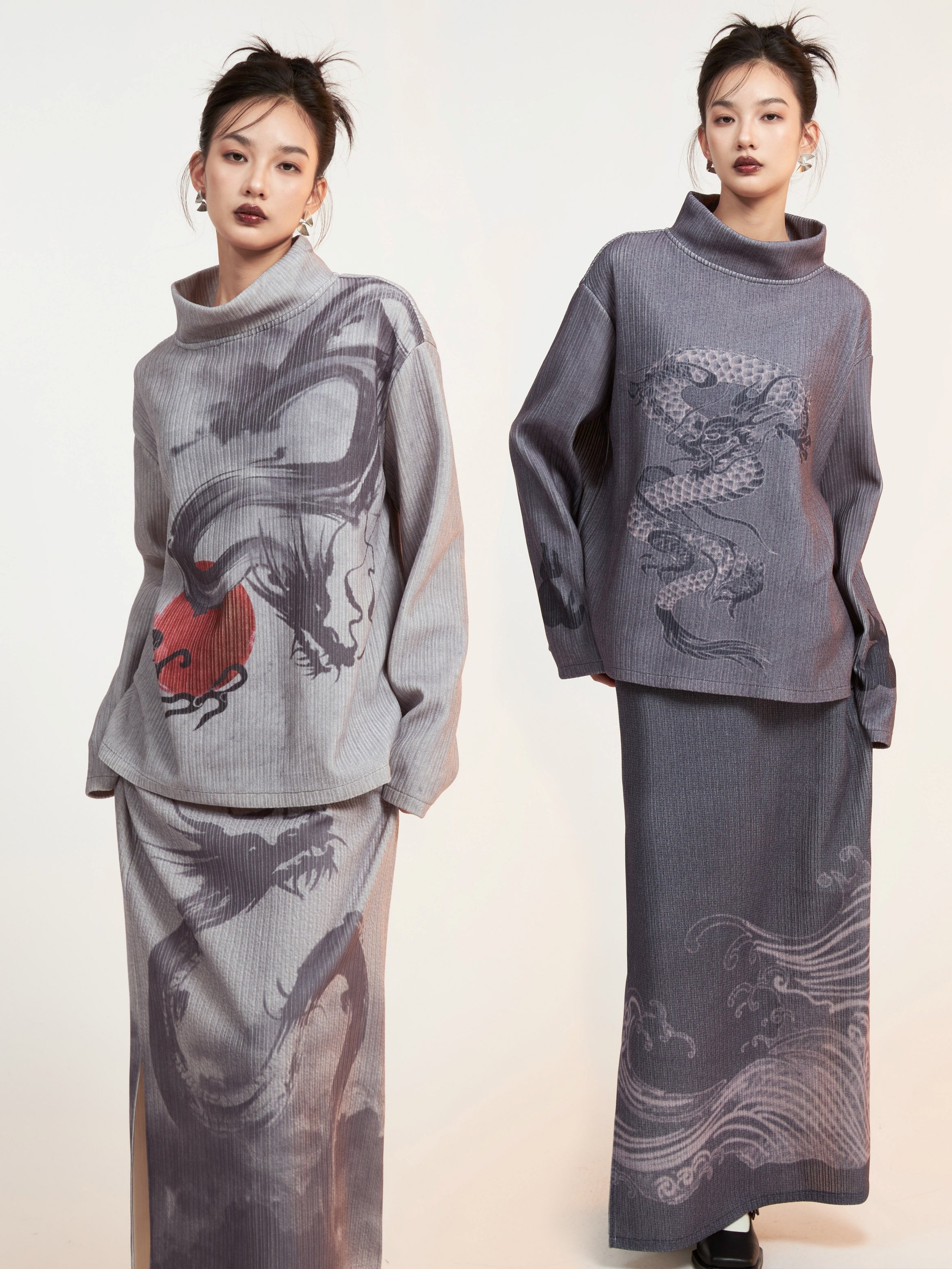 Drachendruckgedruckter Mock-Hals-Hals Cutssew & Spit Box Rock