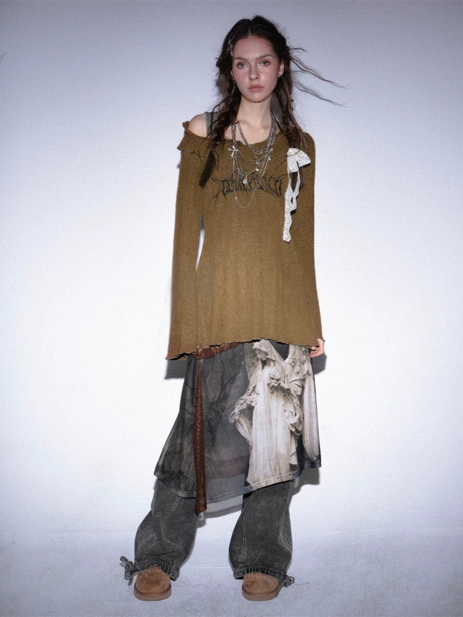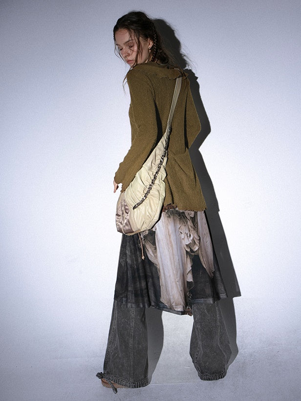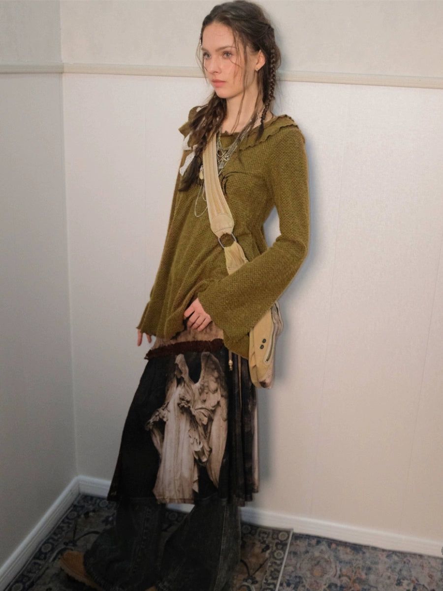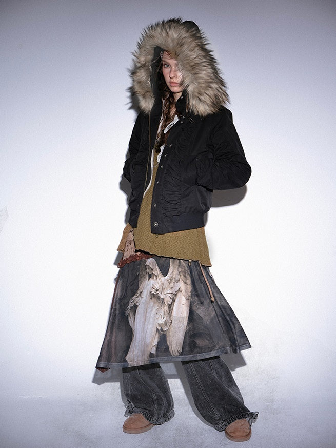 Engel gedrucktes Lederspleiß -Mesh -geschichtter Rock