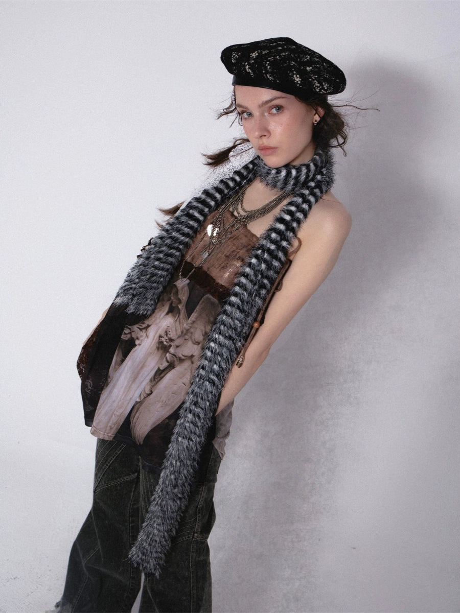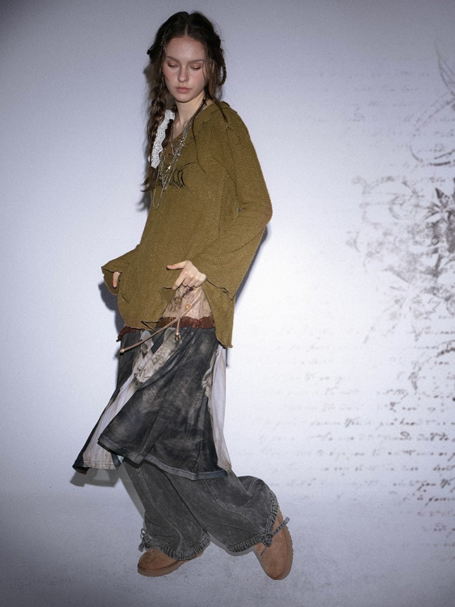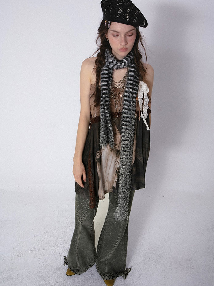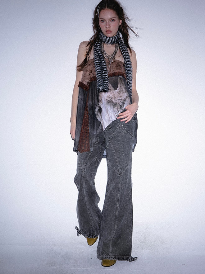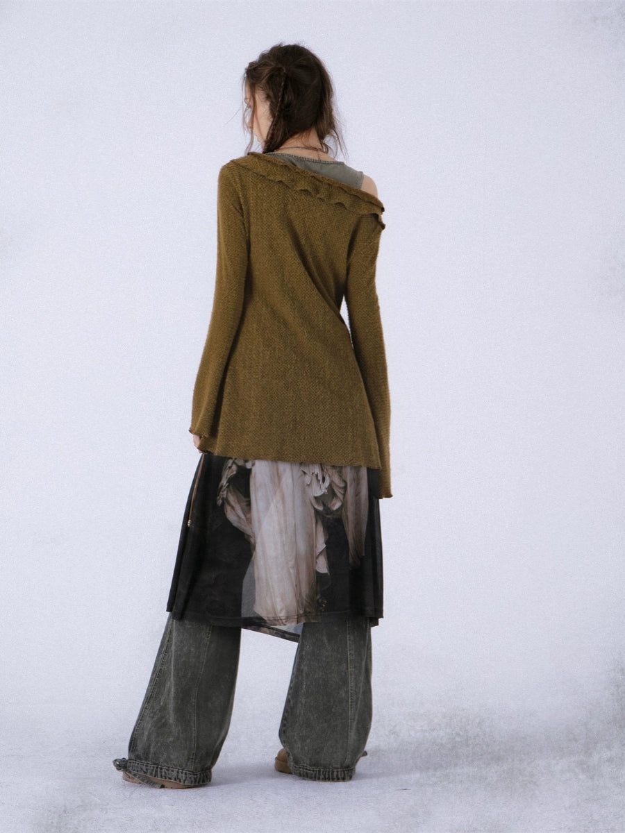 Engel gedrucktes Lederspleiß -Mesh -geschichtter Rock