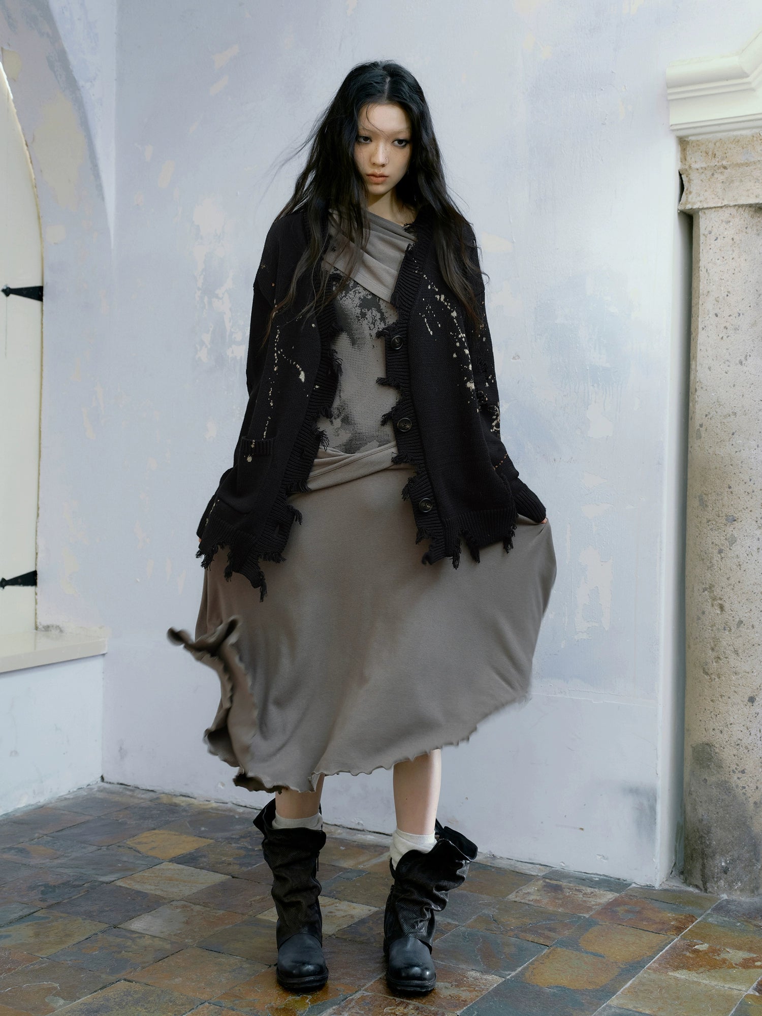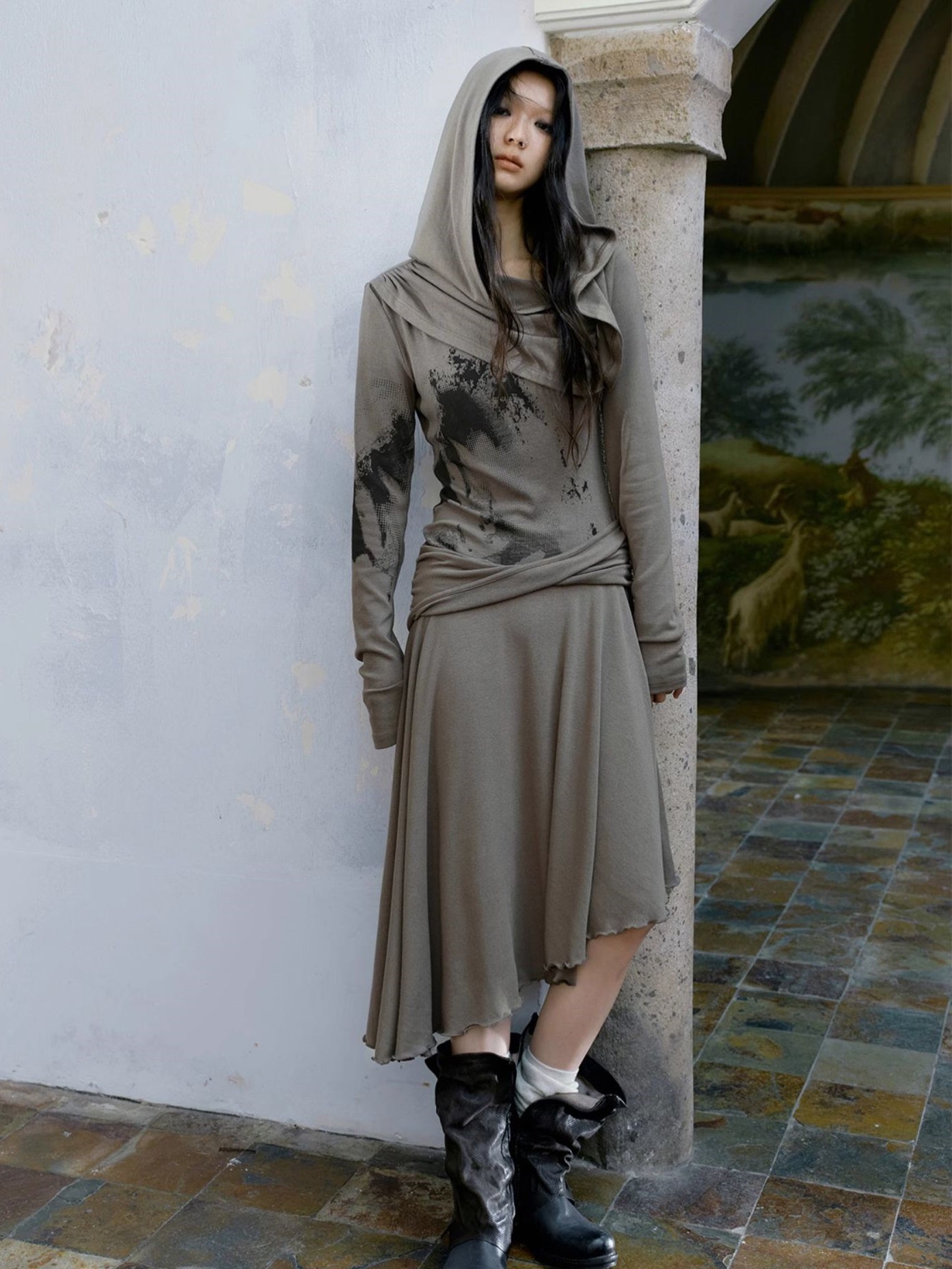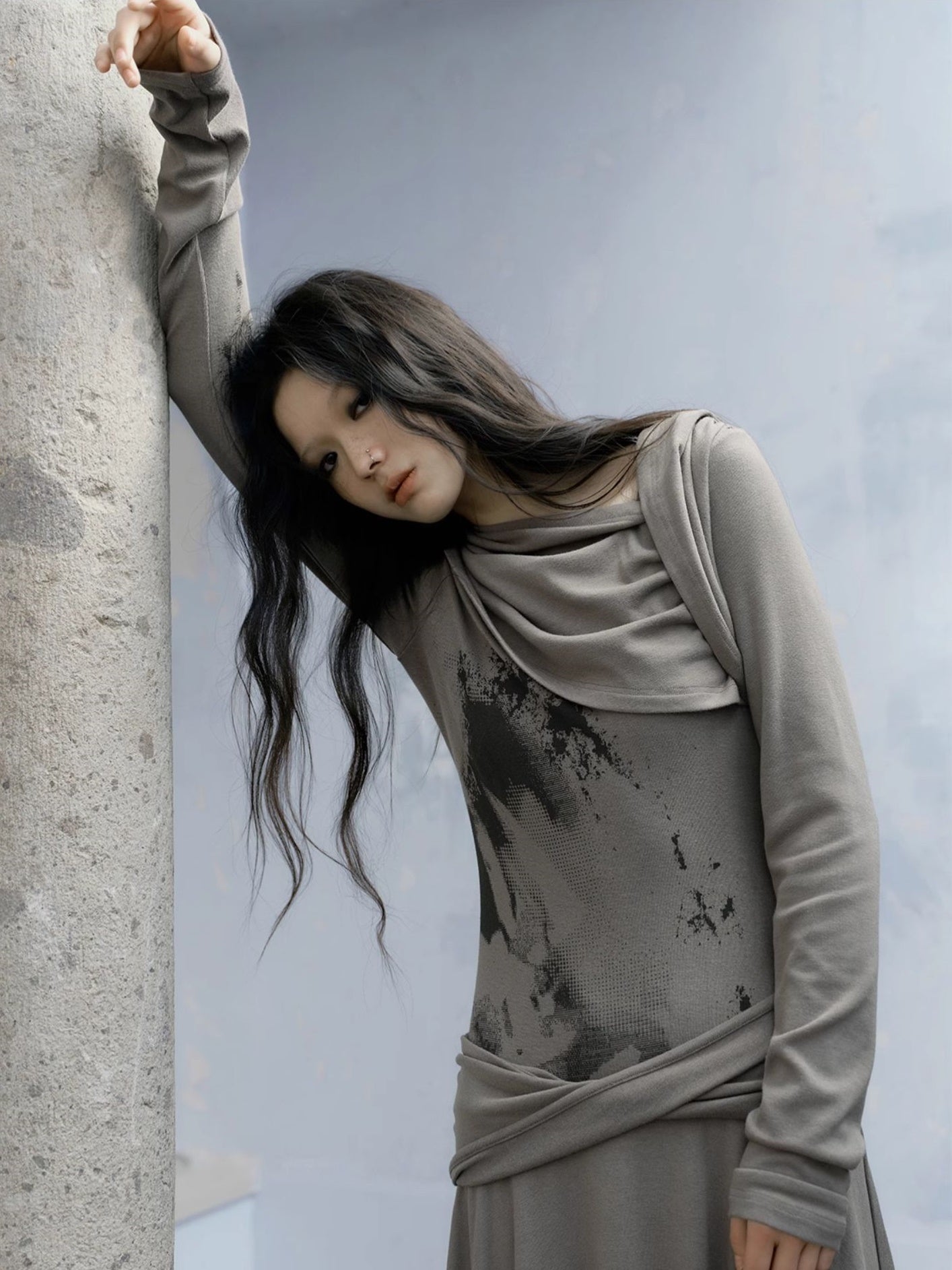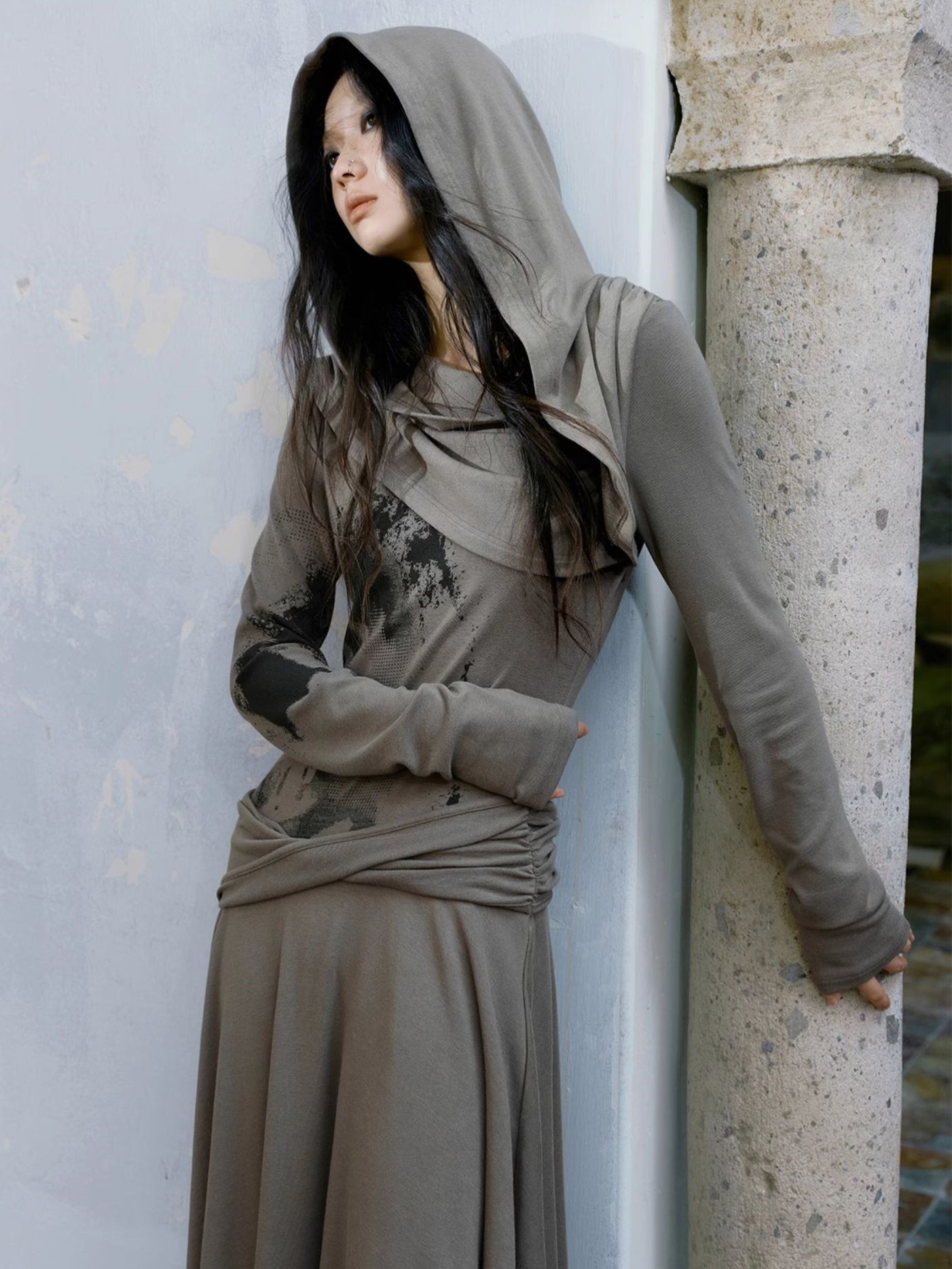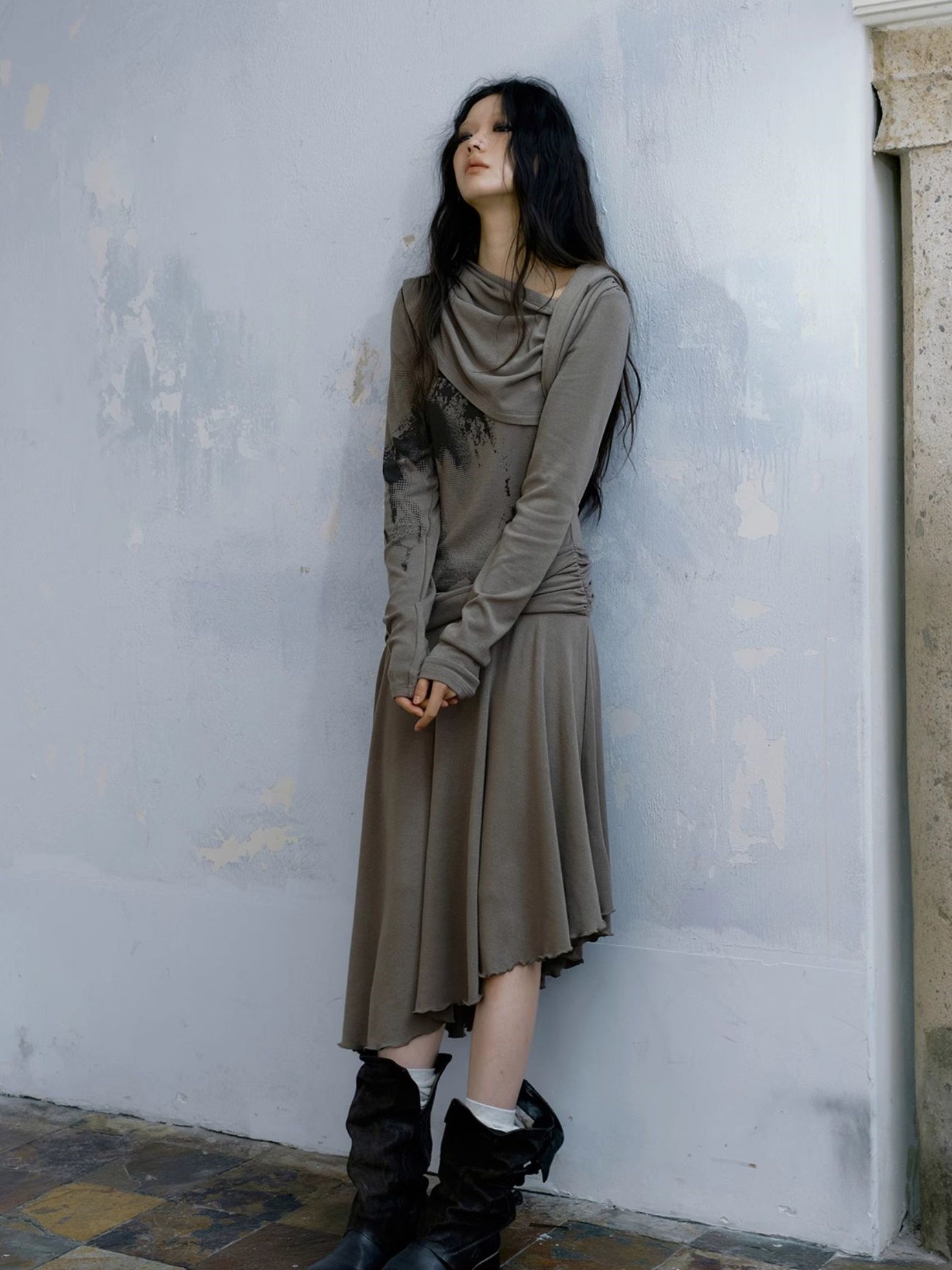 Falten -Kleid mit wandernden Style Plissee Slant geschnitten