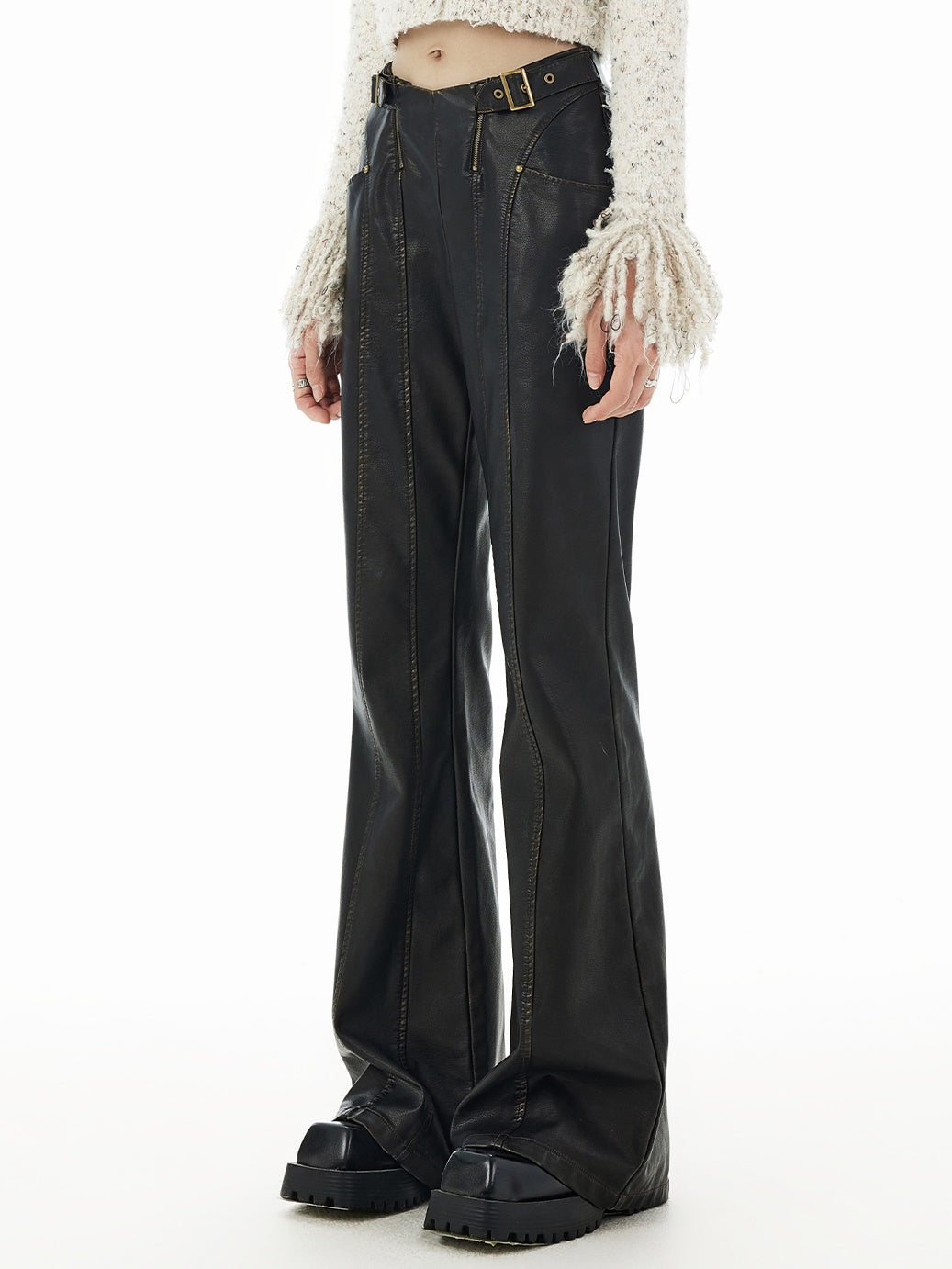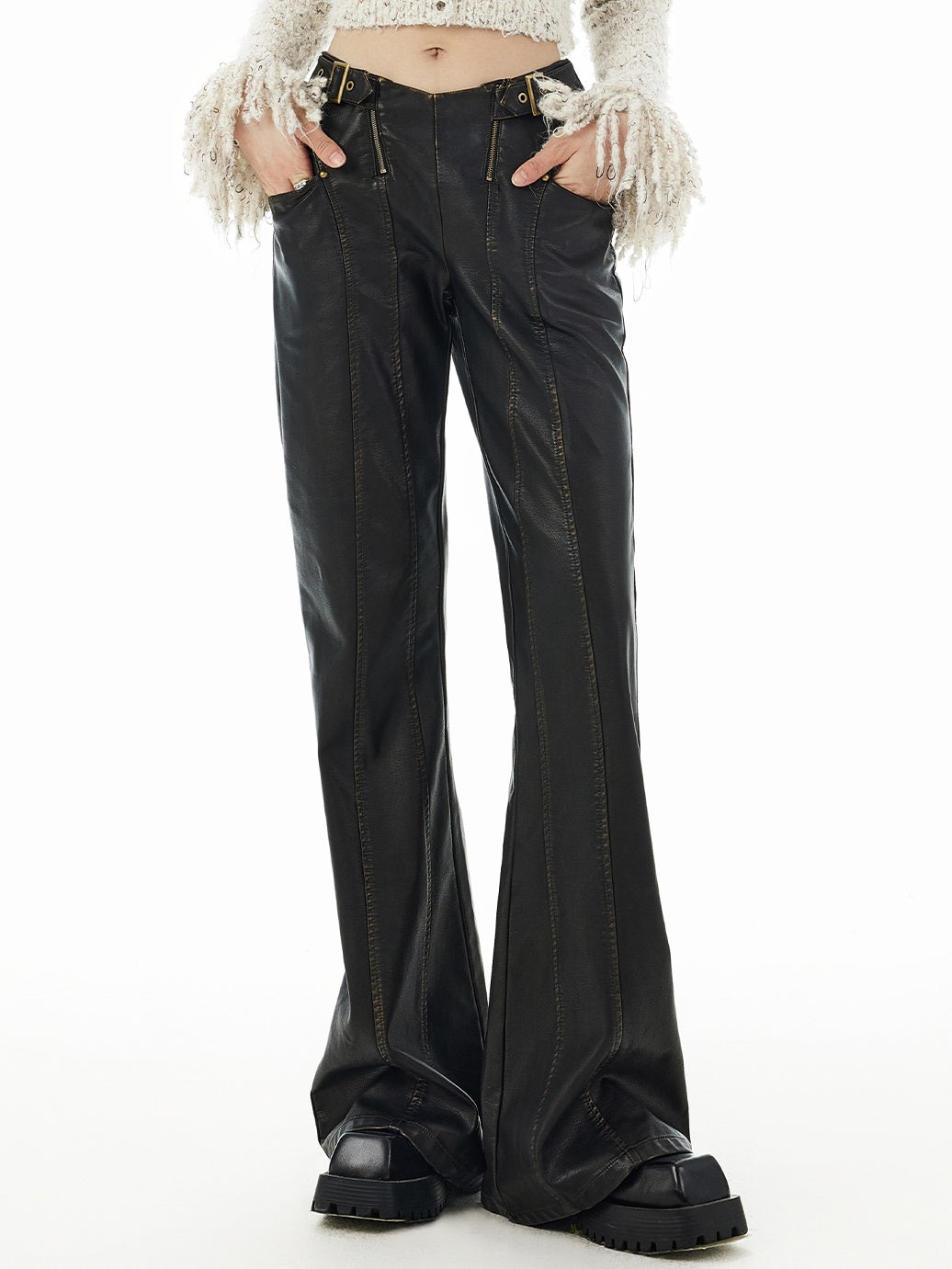 Flare Reißverschlussgürtel coole Patchwork-Letaher-Pants