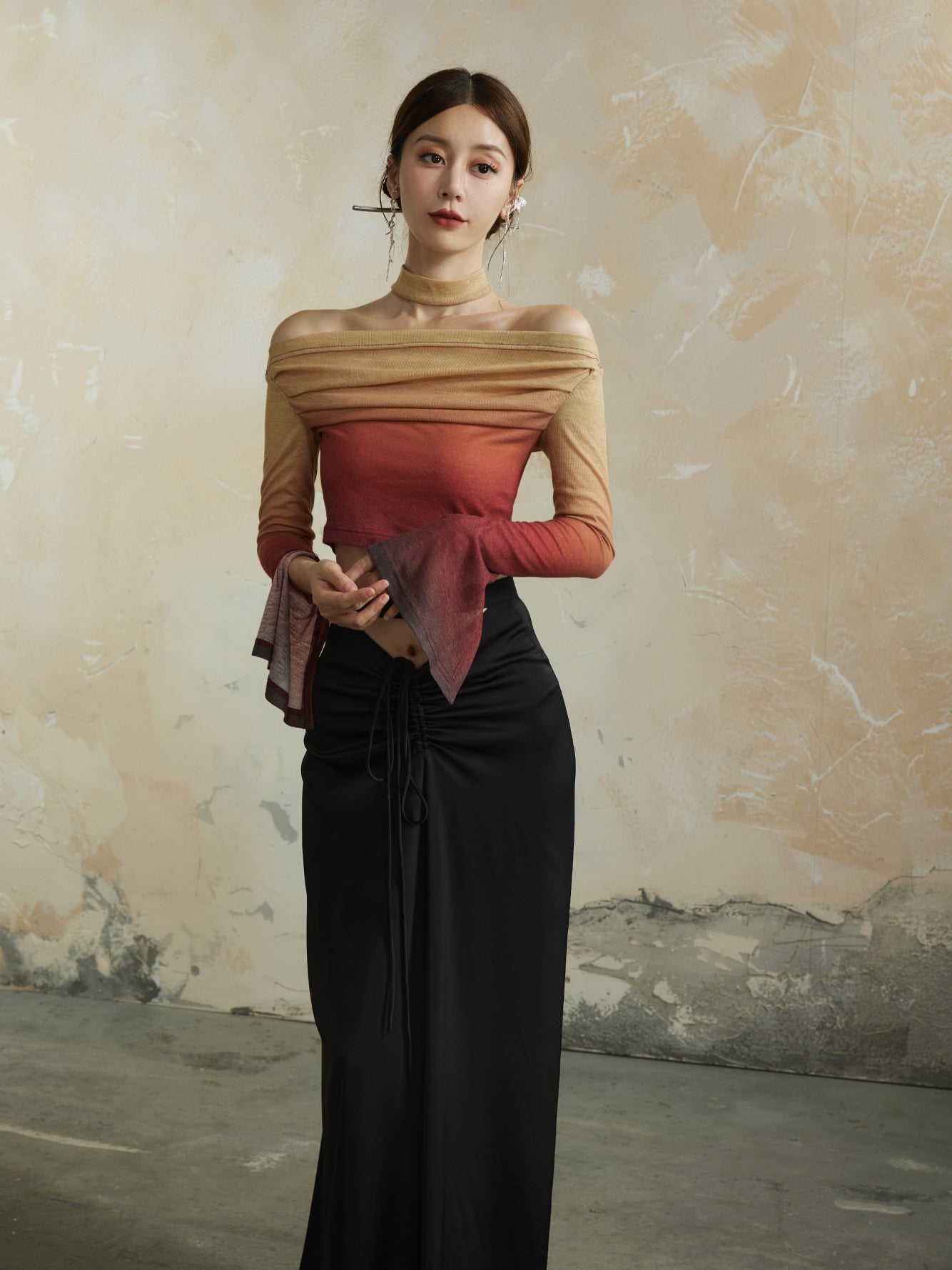 Flare-Sleeve-Off-Shoulder-Abteilung Drape Elegante Tops