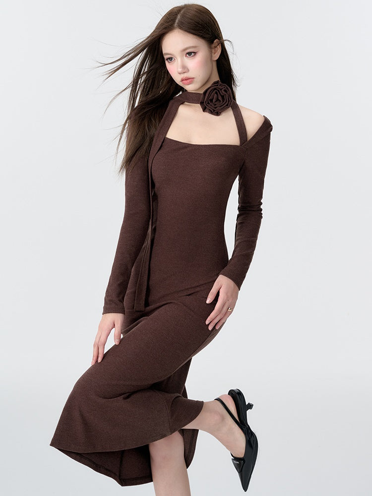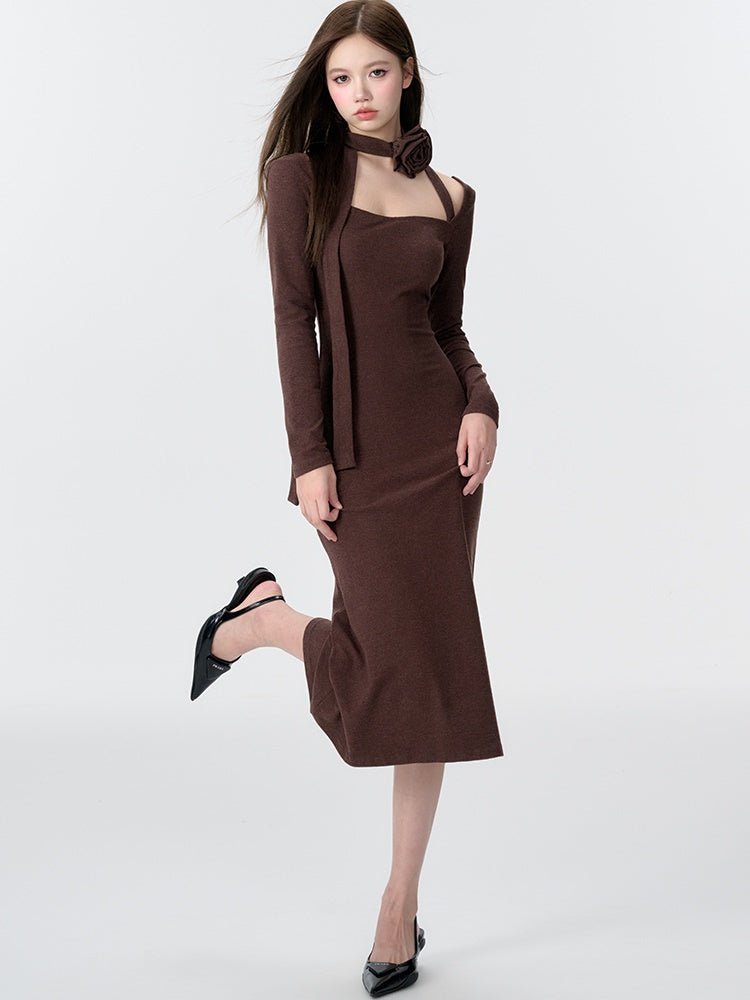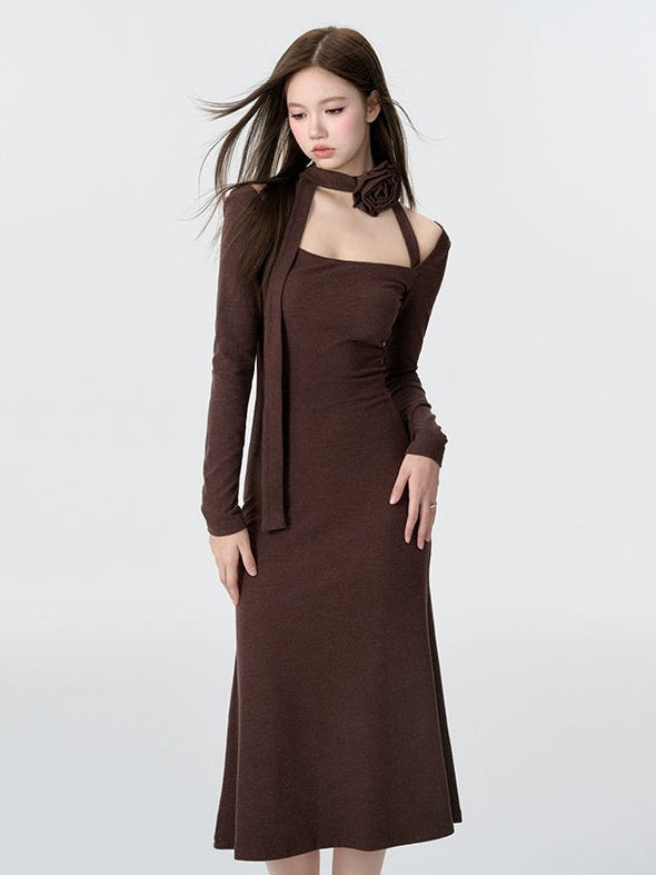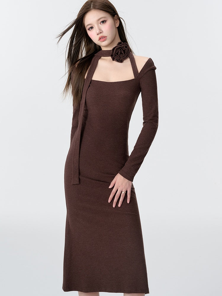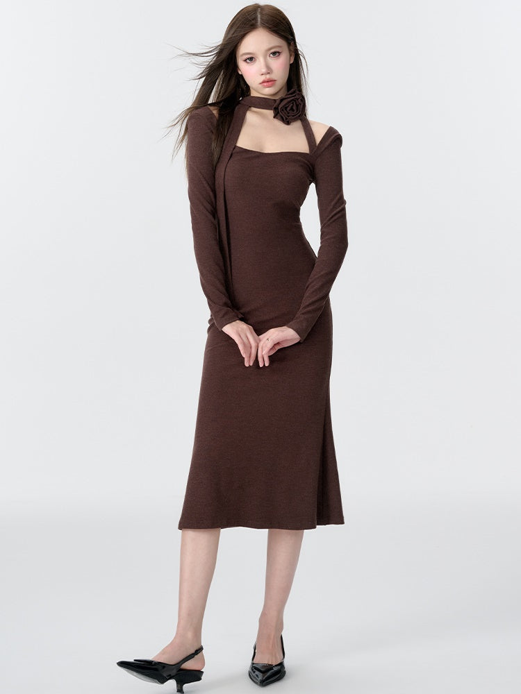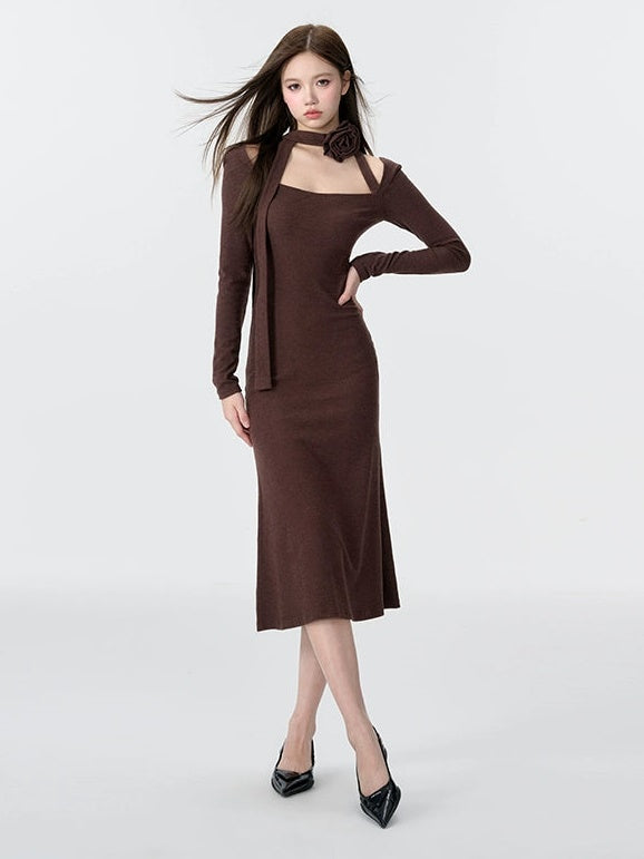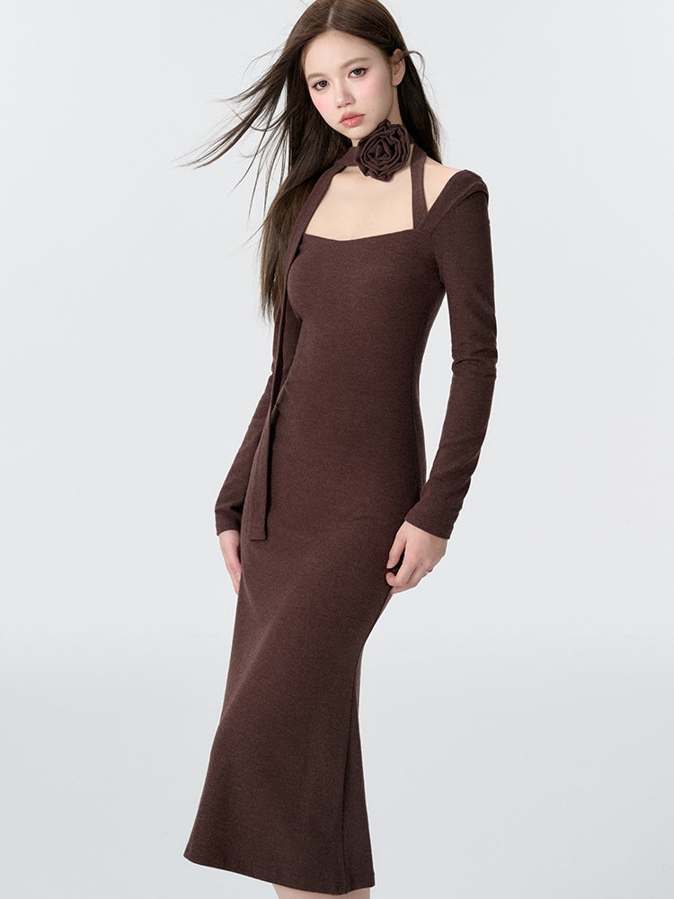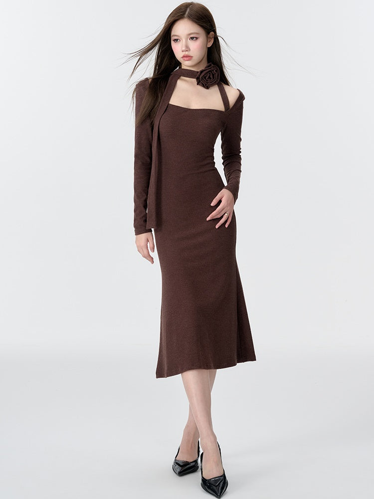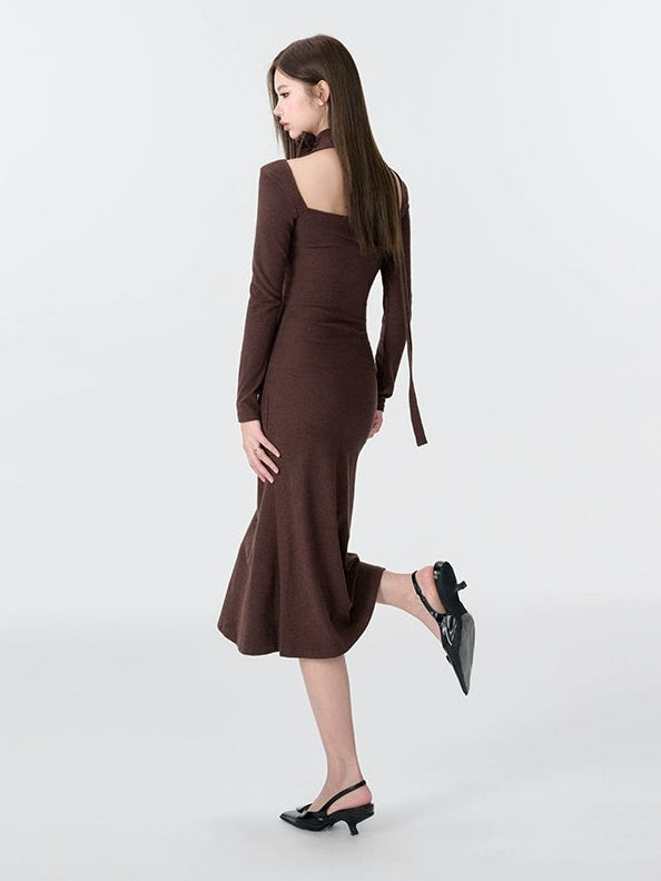 Gestricktes Dekolleté Neck Meerjungfrau Kleid