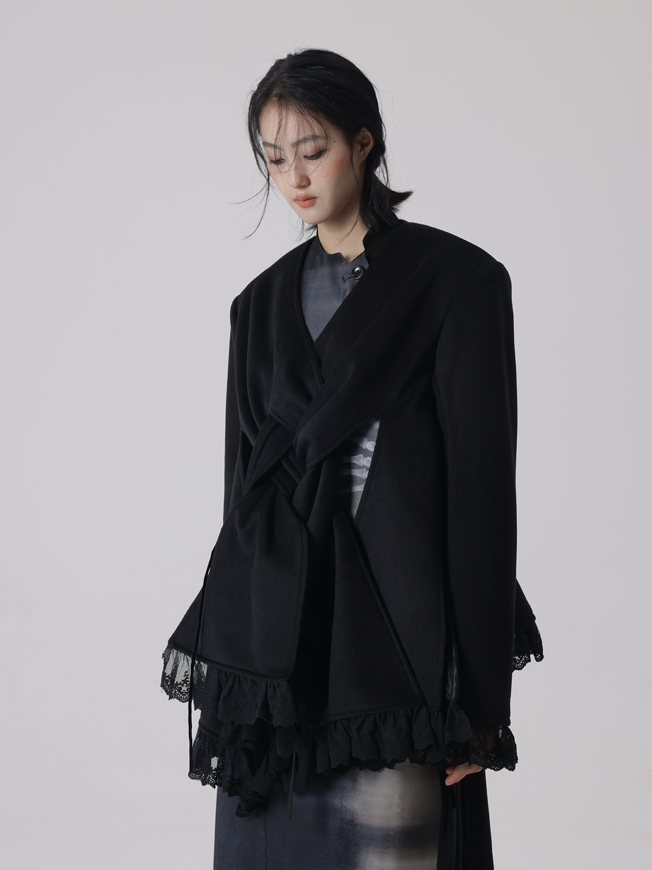 Gewebter Spitzenstich V-Ausschnitt Jacke
