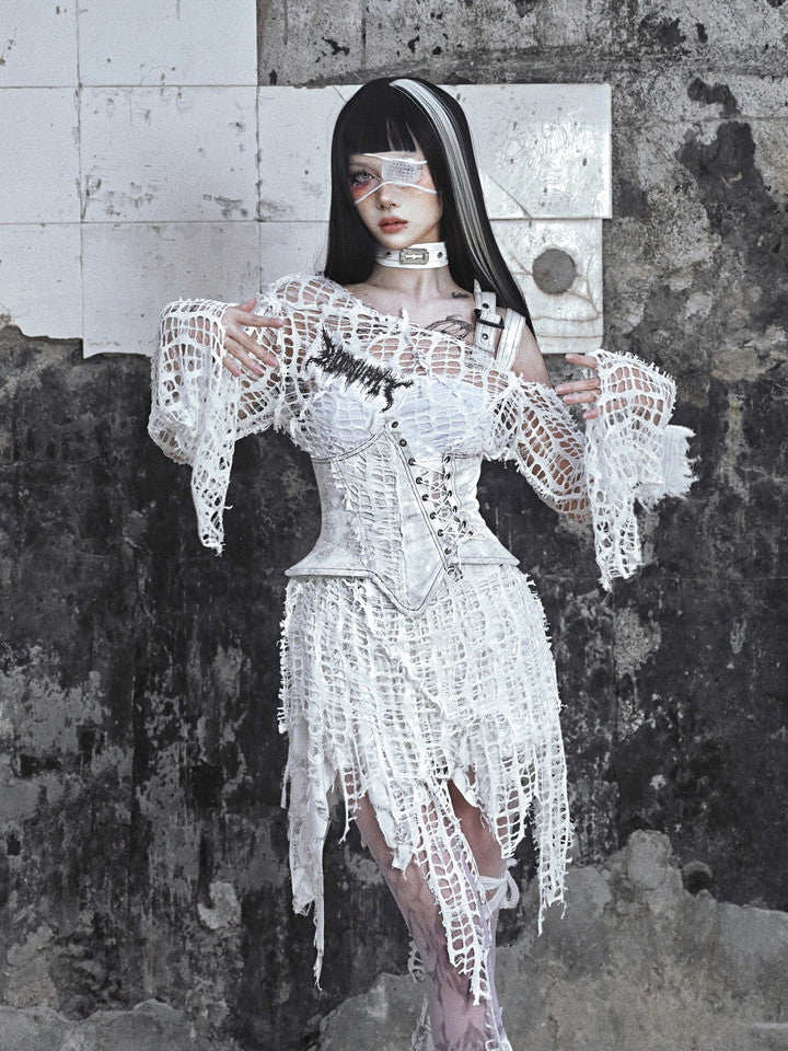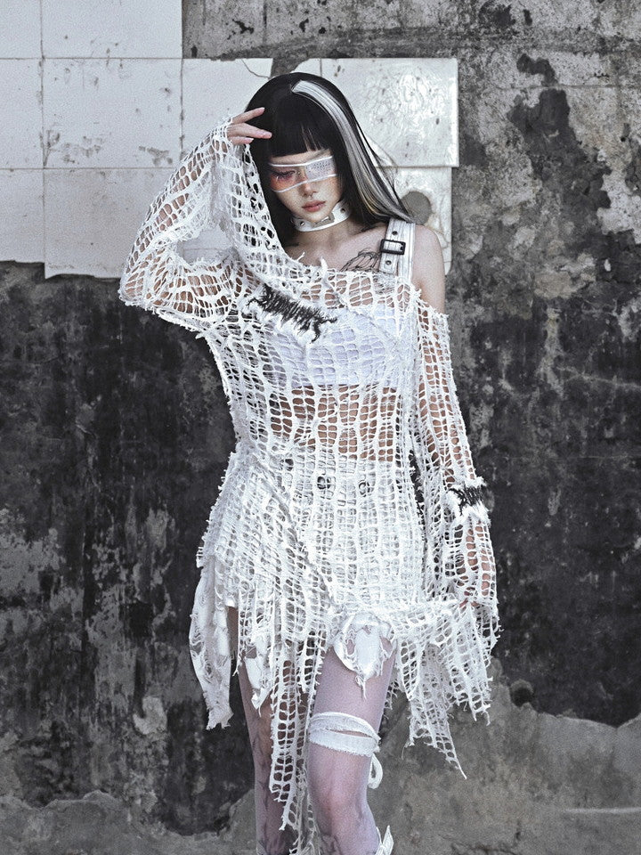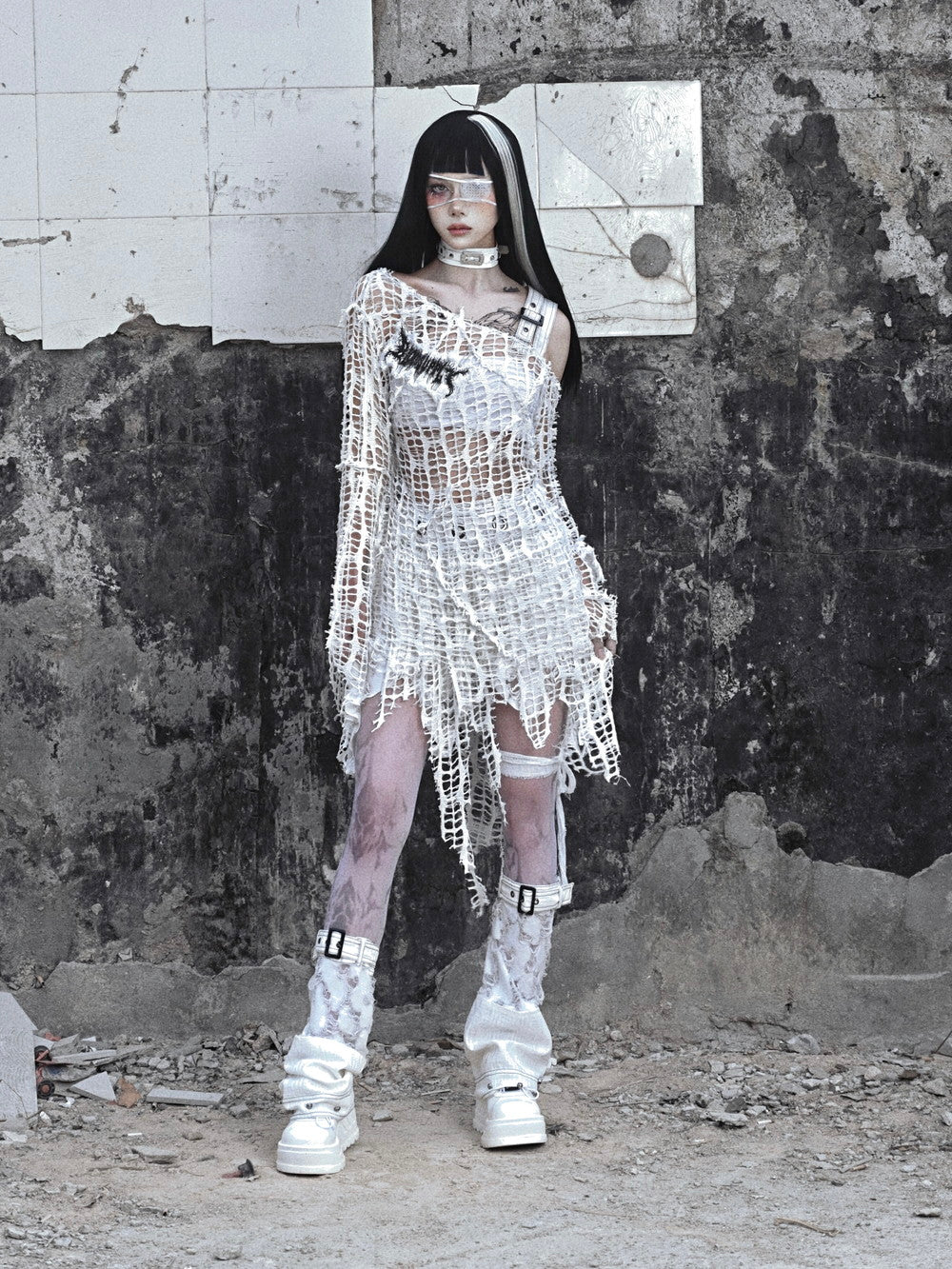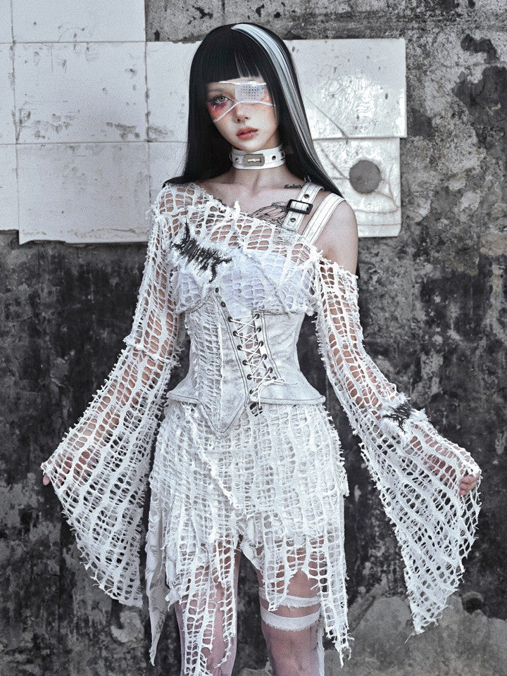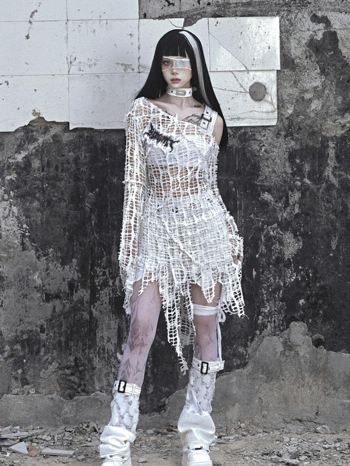Gothic Vintage One-Shoulder Mesh Nichi Flare-Ahne-Strick