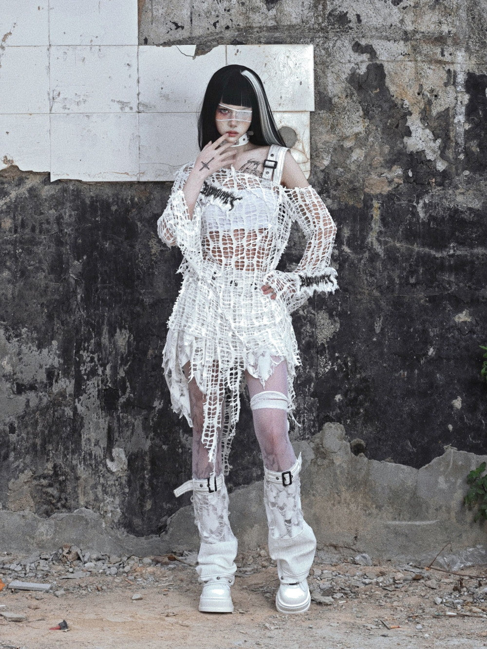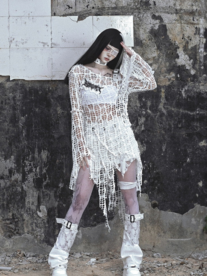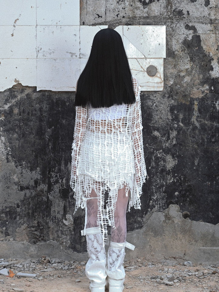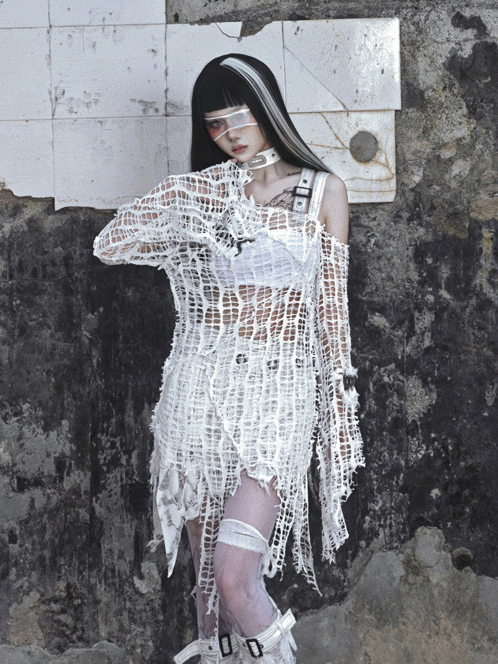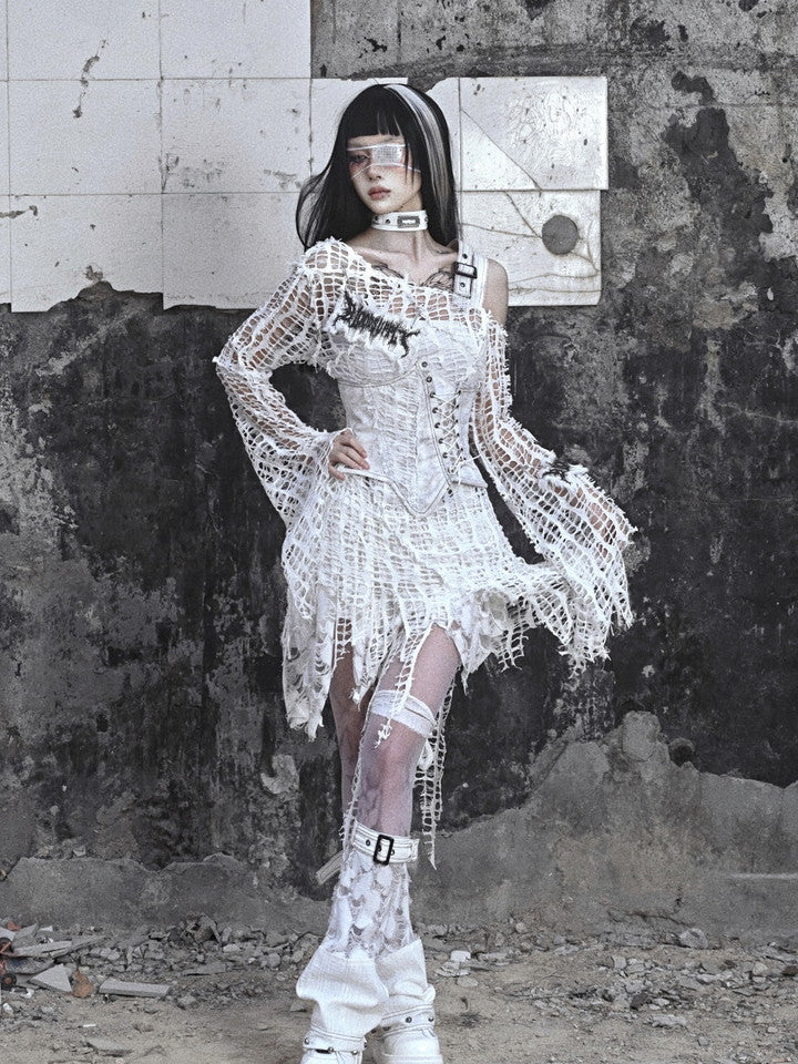 Gothic Vintage One-Shoulder Mesh Nichi Flare-Ahne-Strick