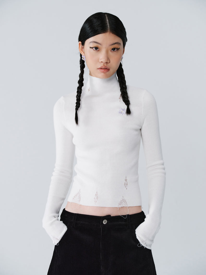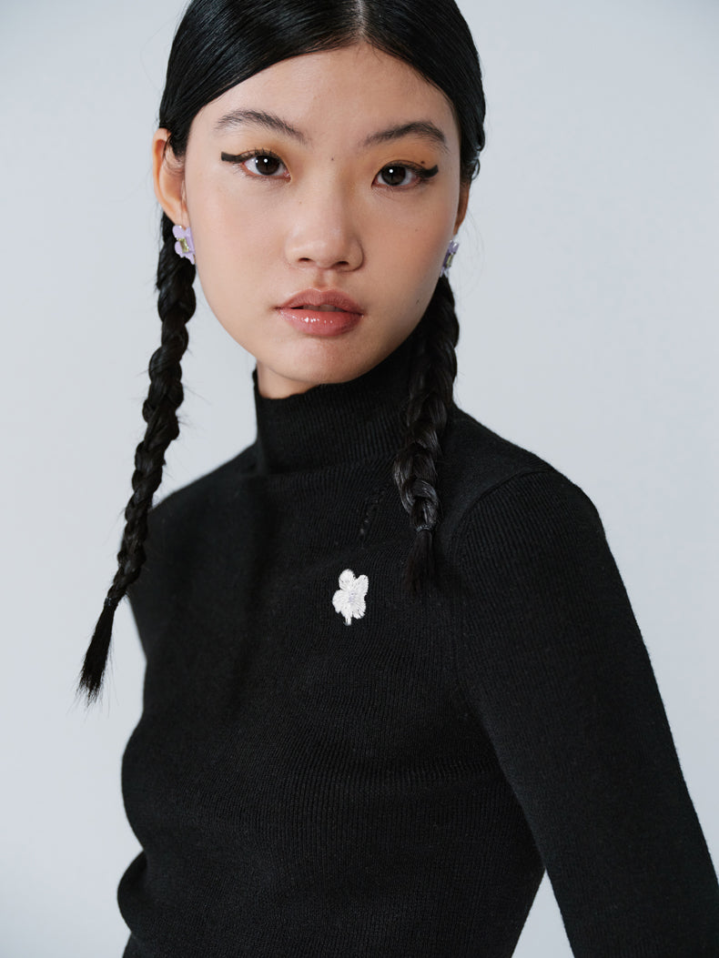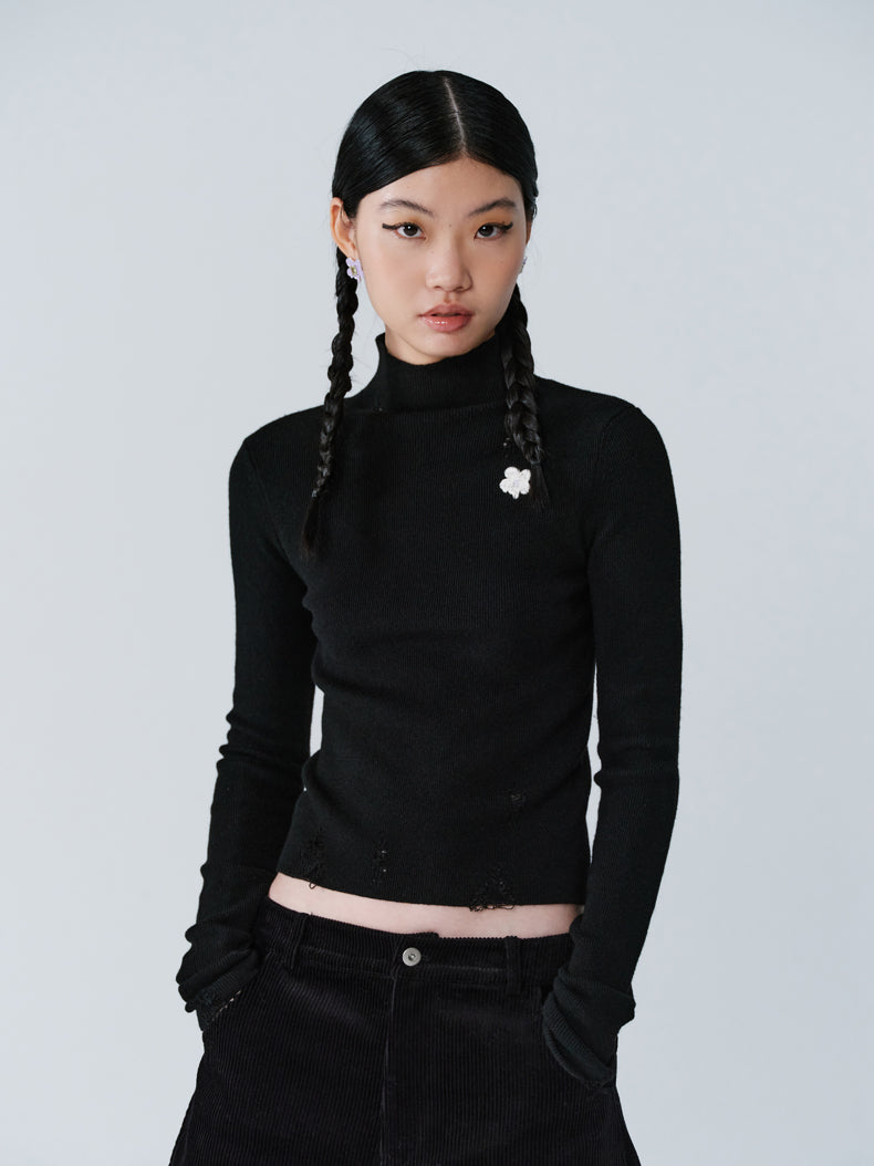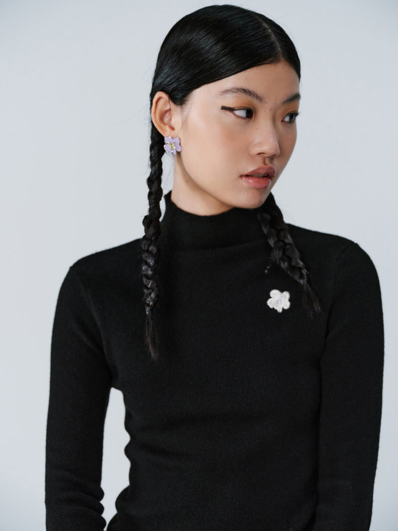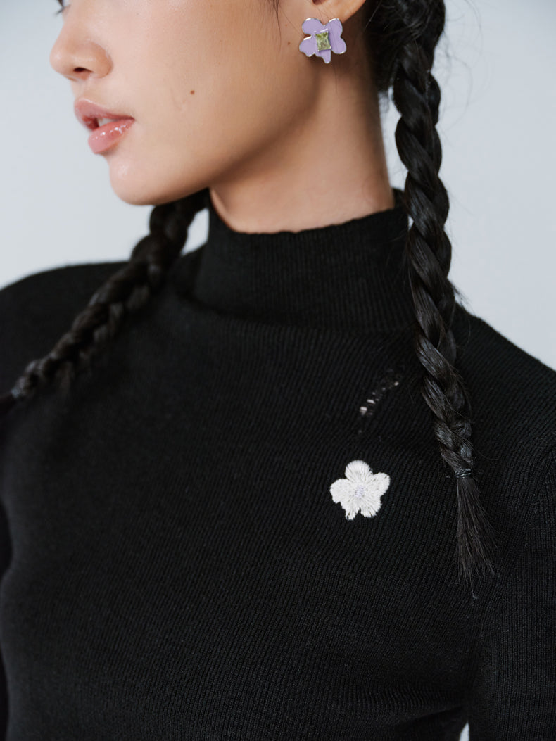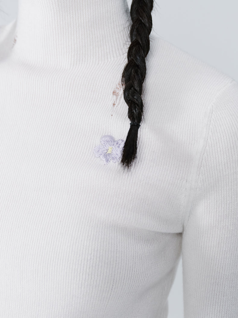 Hochhals schlankes, schlichtes Blütenmagel-Strick