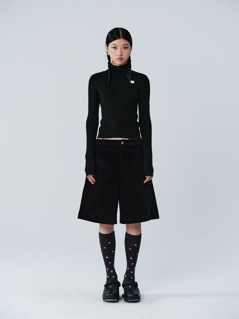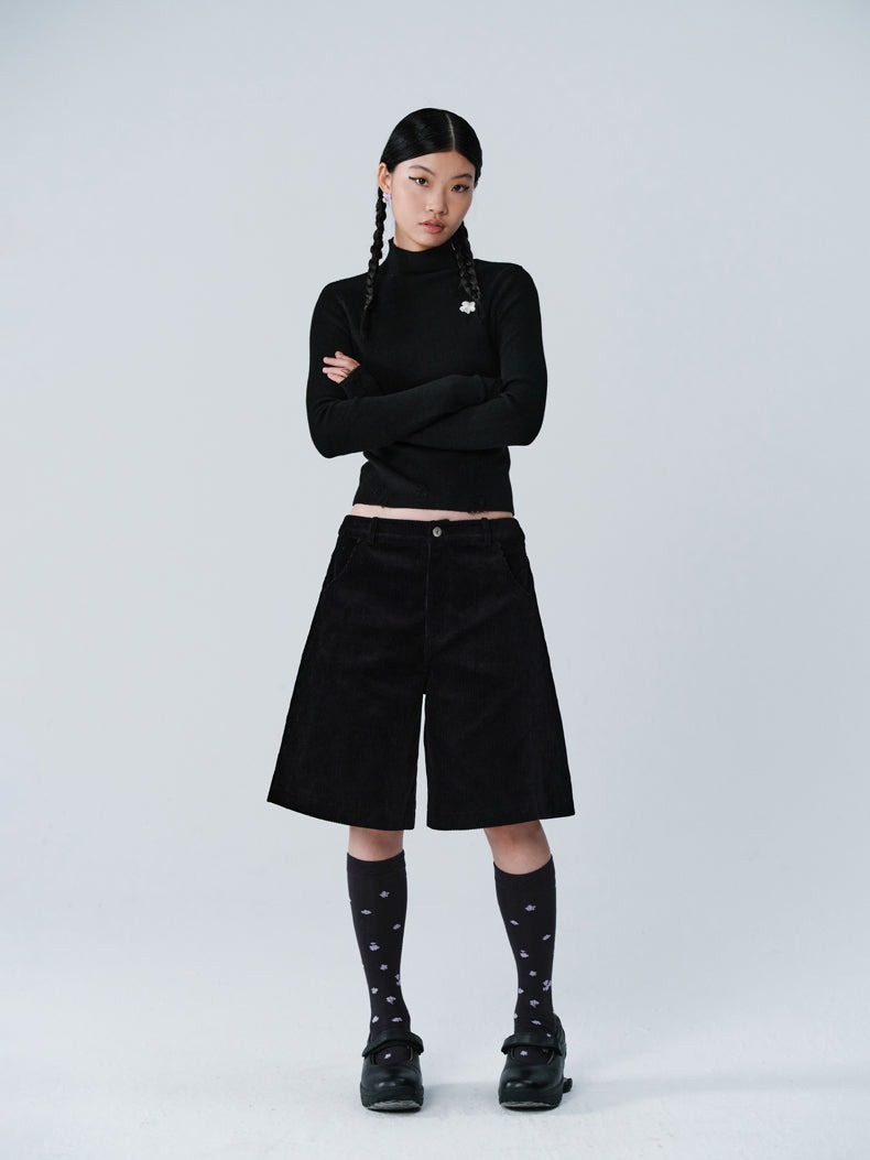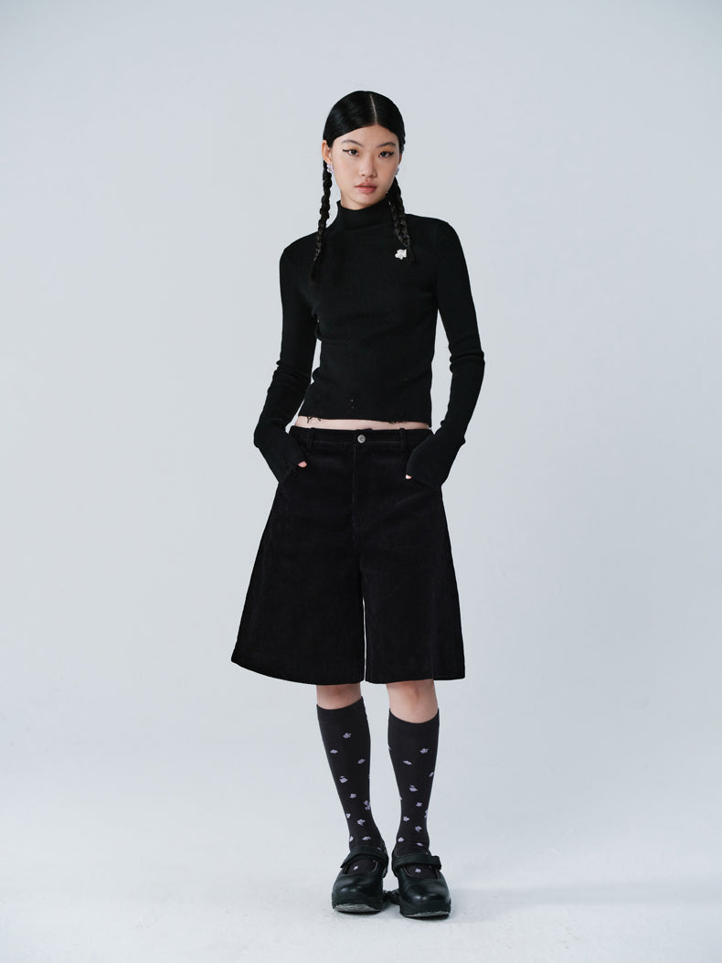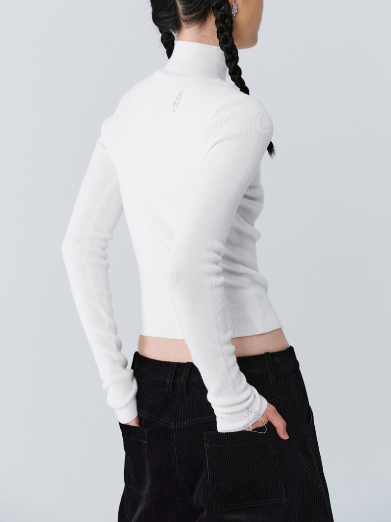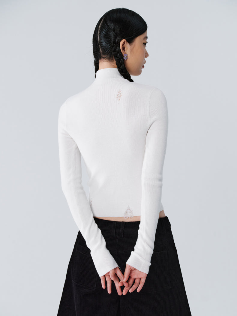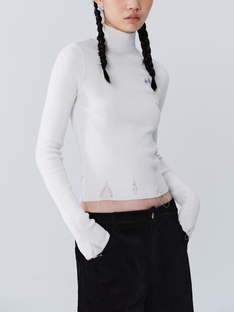 Hochhals schlankes, schlichtes Blütenmagel-Strick