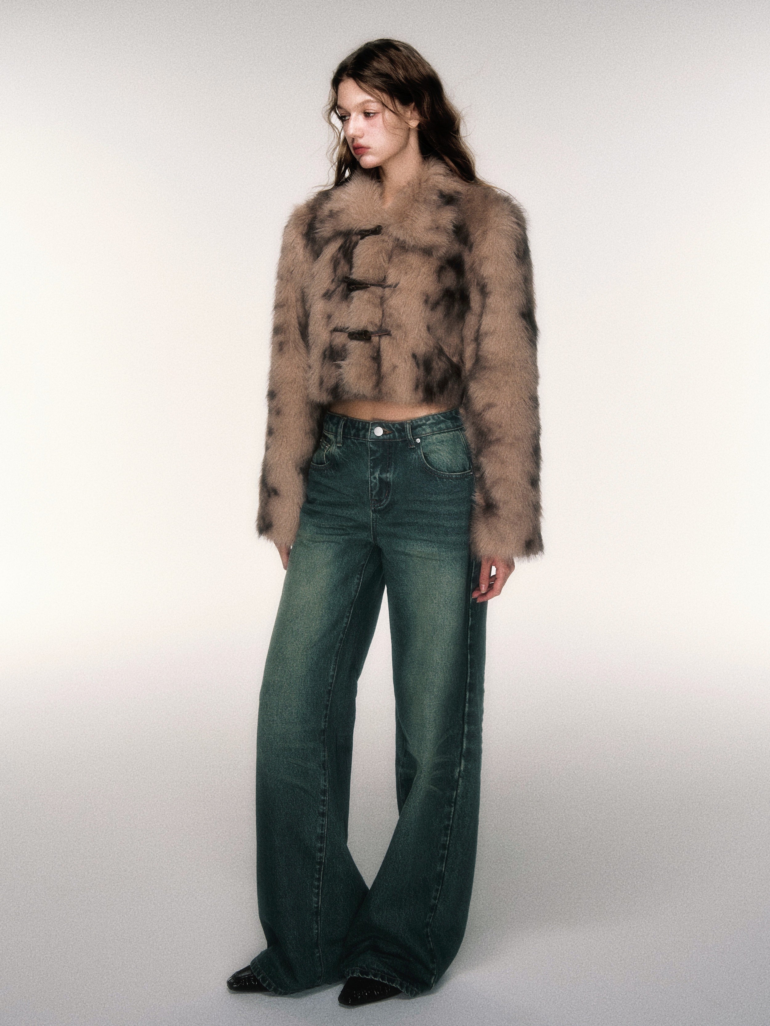 Hornknopf kurzer Leopardendruck Nachahmungsjacke