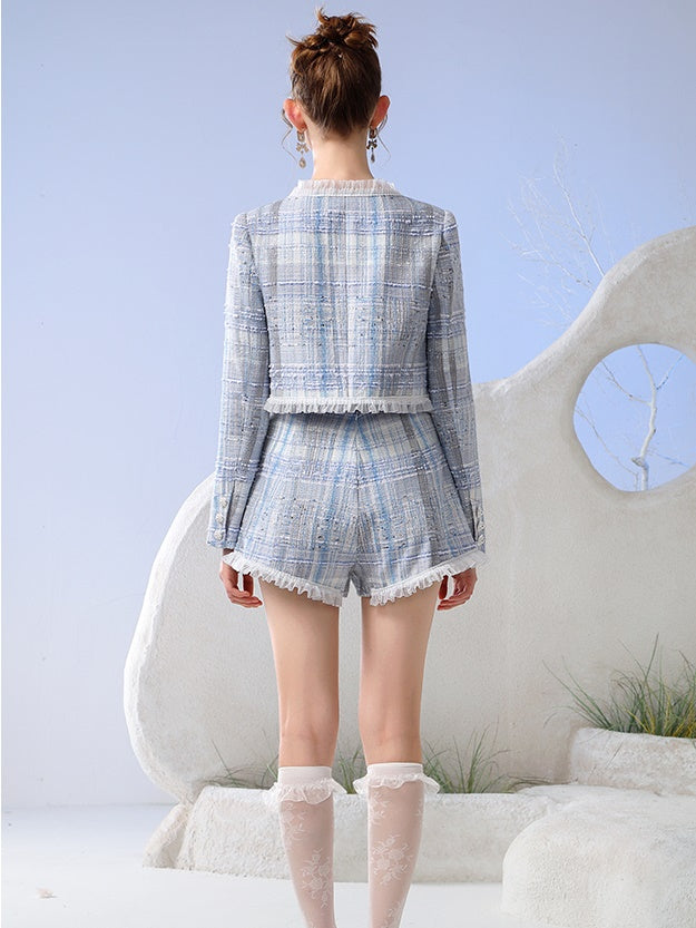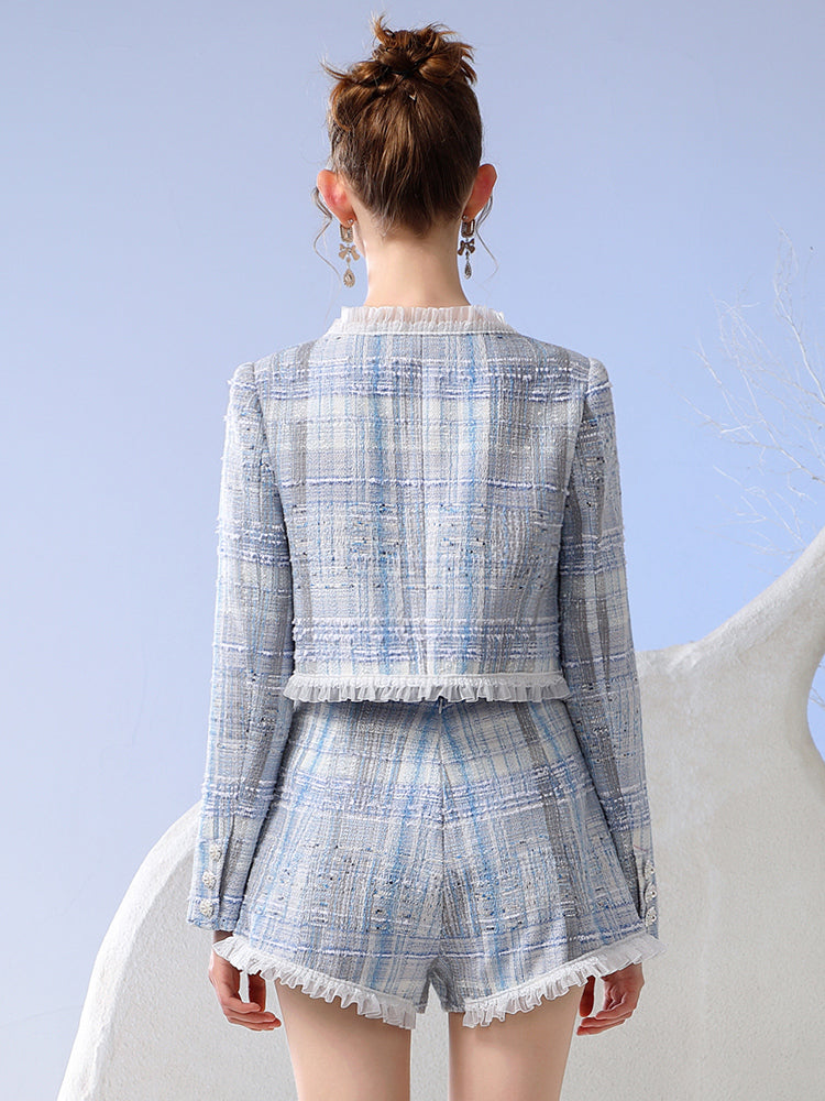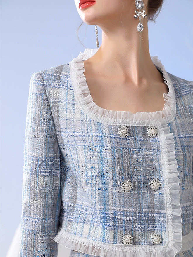 Jacke und Kurzeherzen Tweed-Anzug Spitze Setup