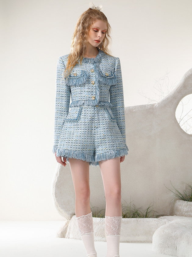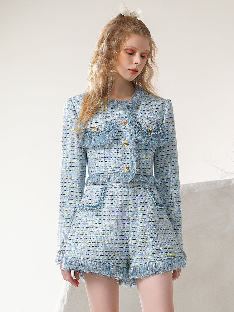 Jacke und Kurzeherzen Tweed Quastenanzug Sweet Setup Strick