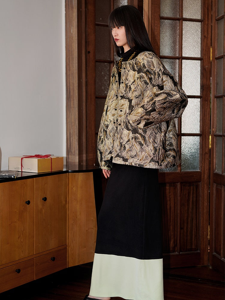 Jacquard lose No-Collar-Jacke