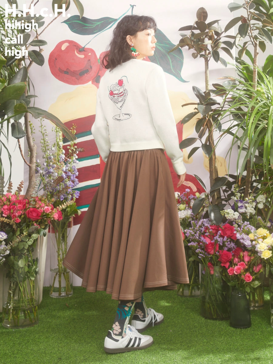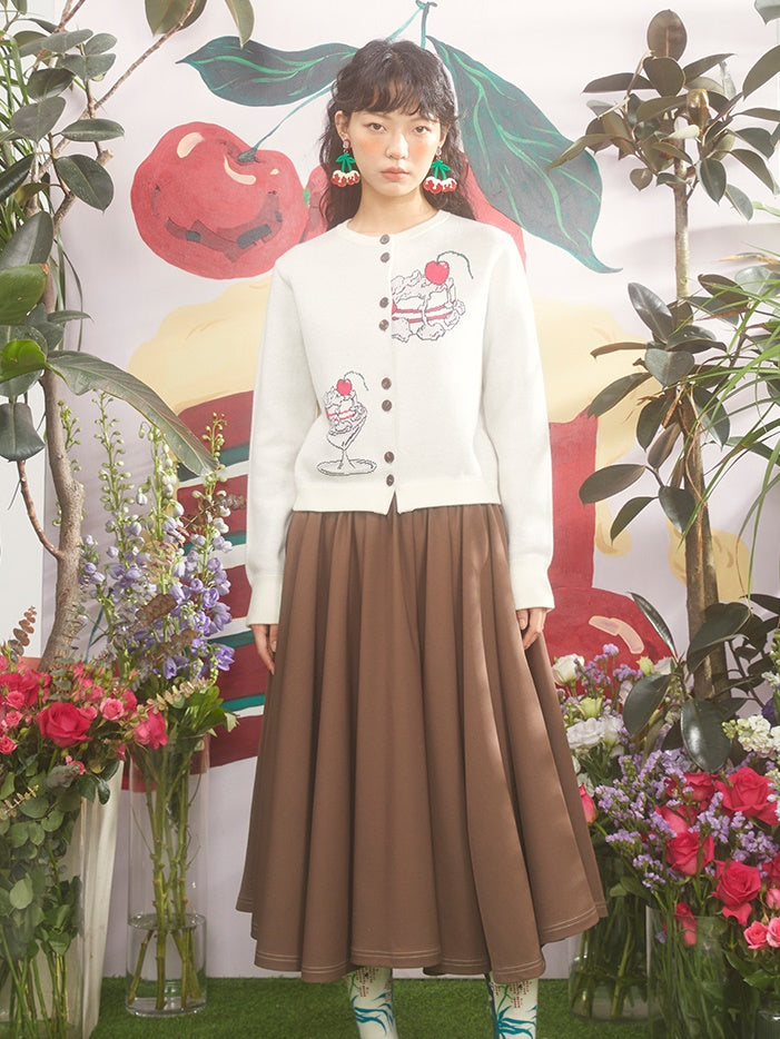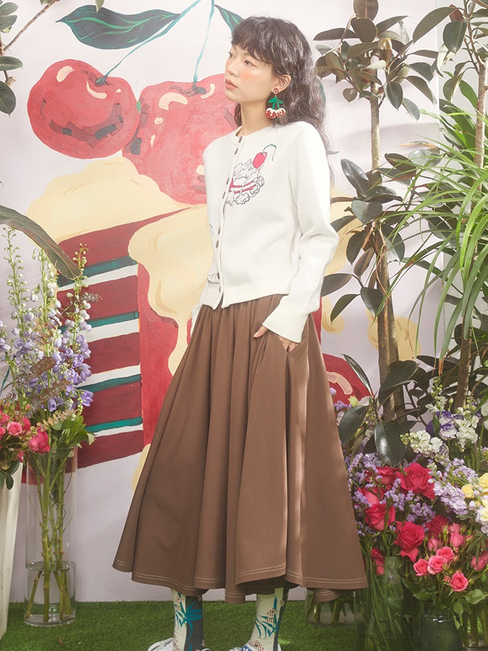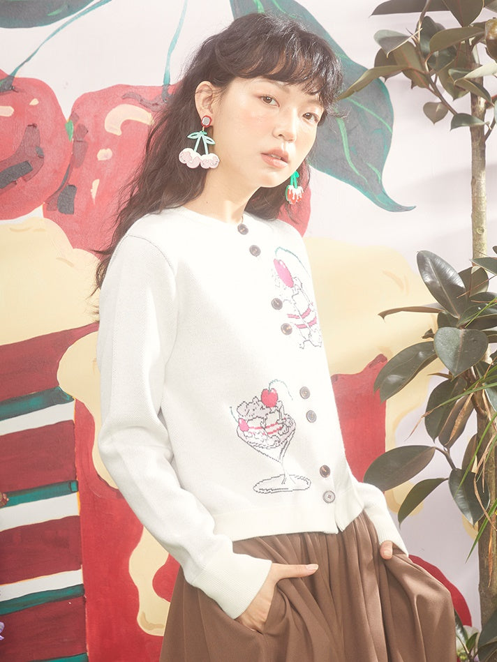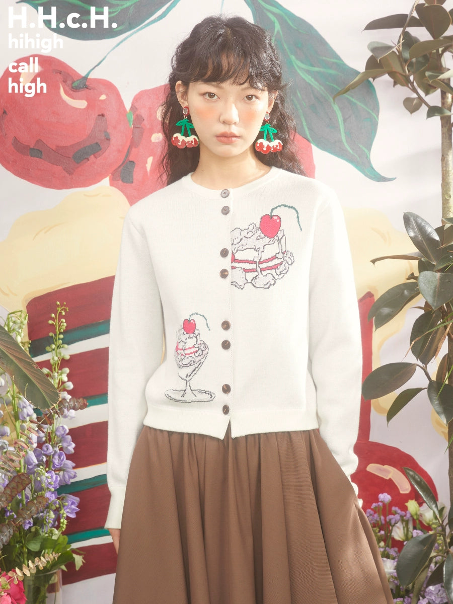 Kirschcreme -Kuchen Jacquard Strickjacke Strickjacke
