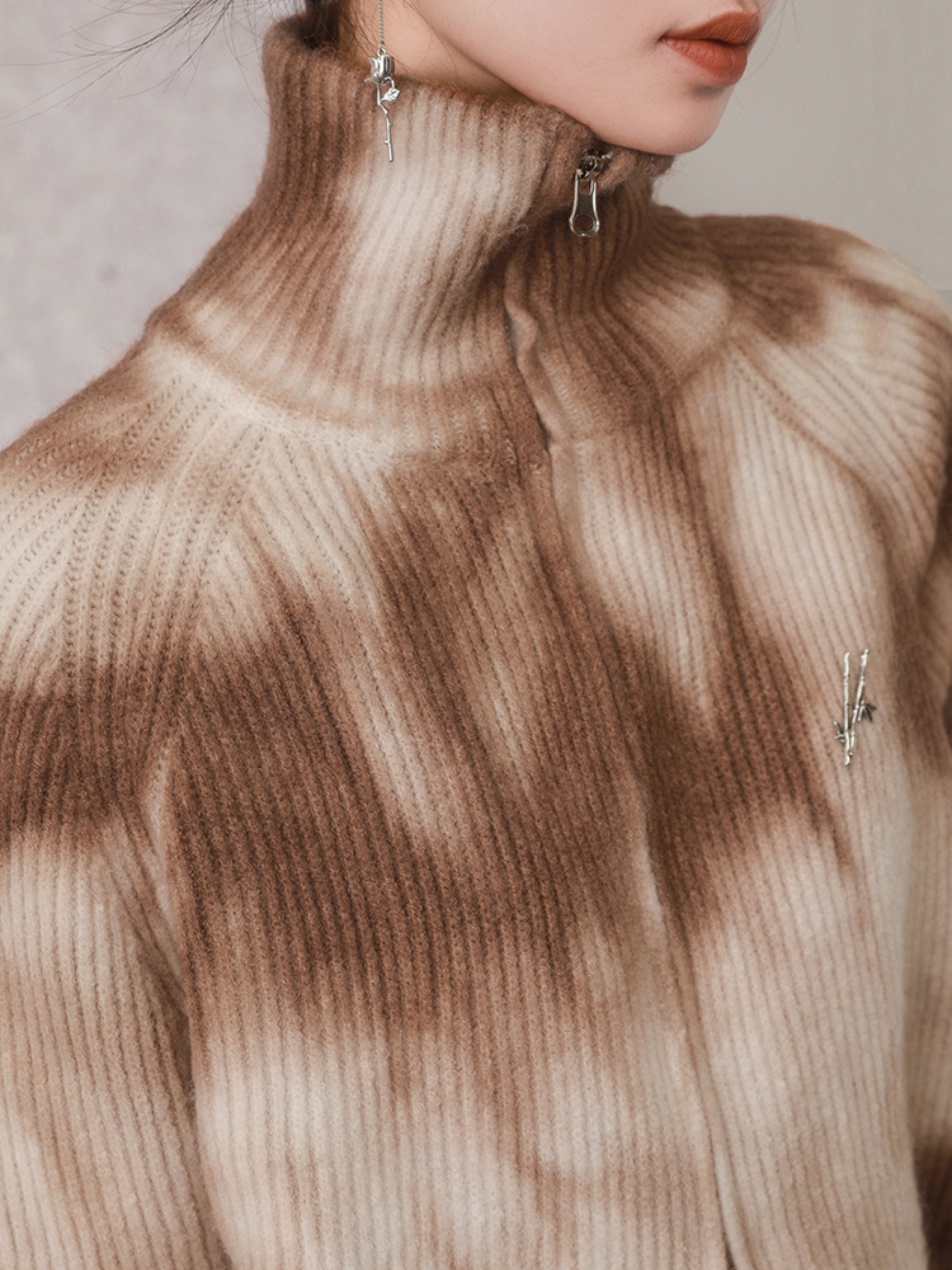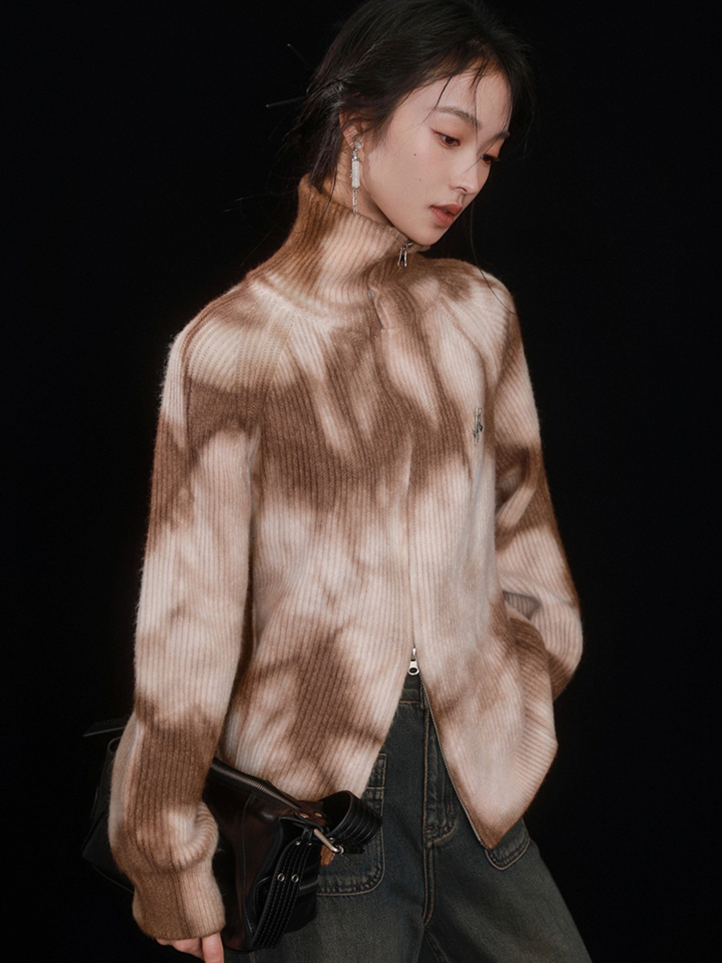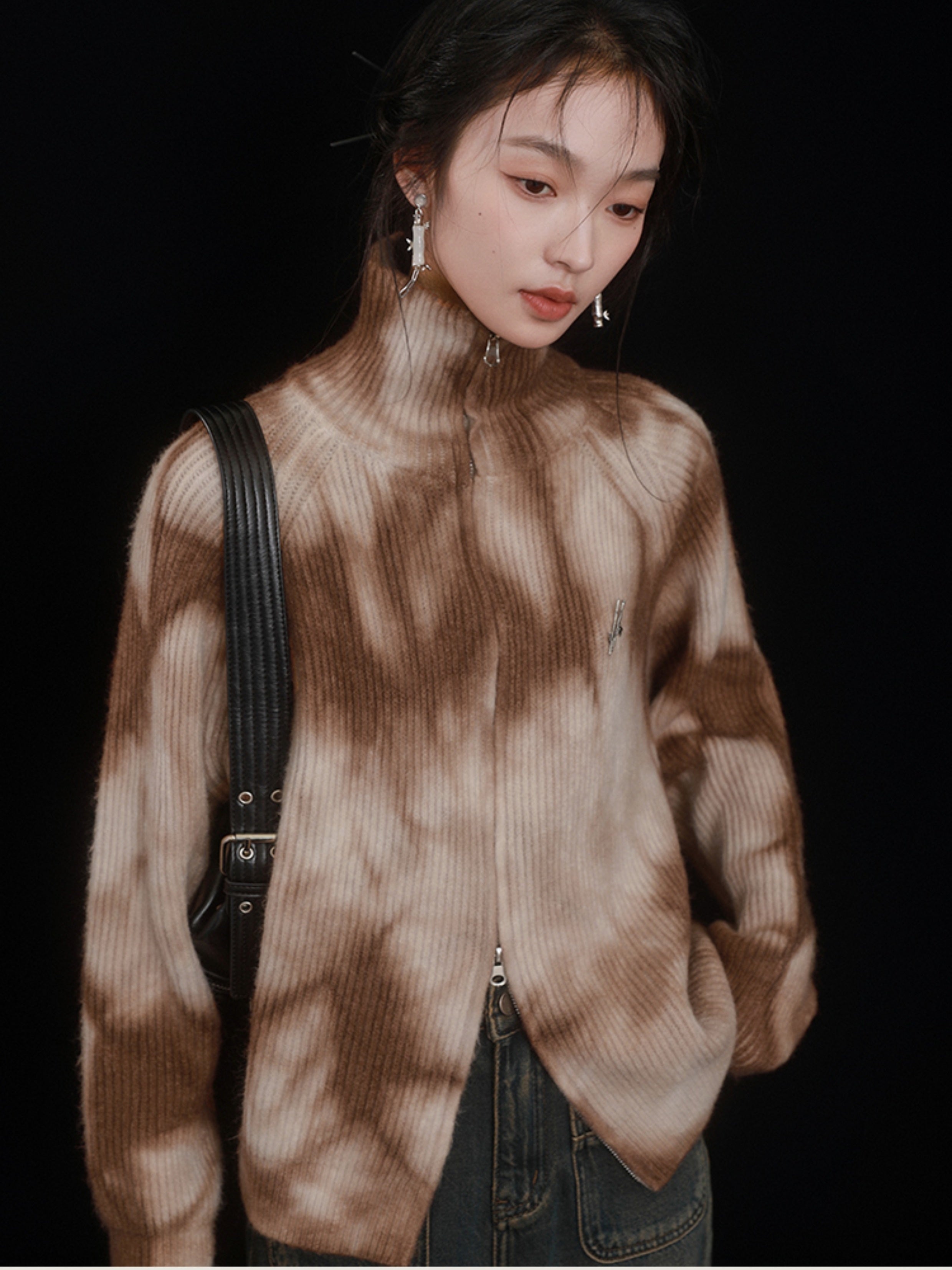 Krawatten-Dye High Neck Reißverschluss Strick-Strickjacke