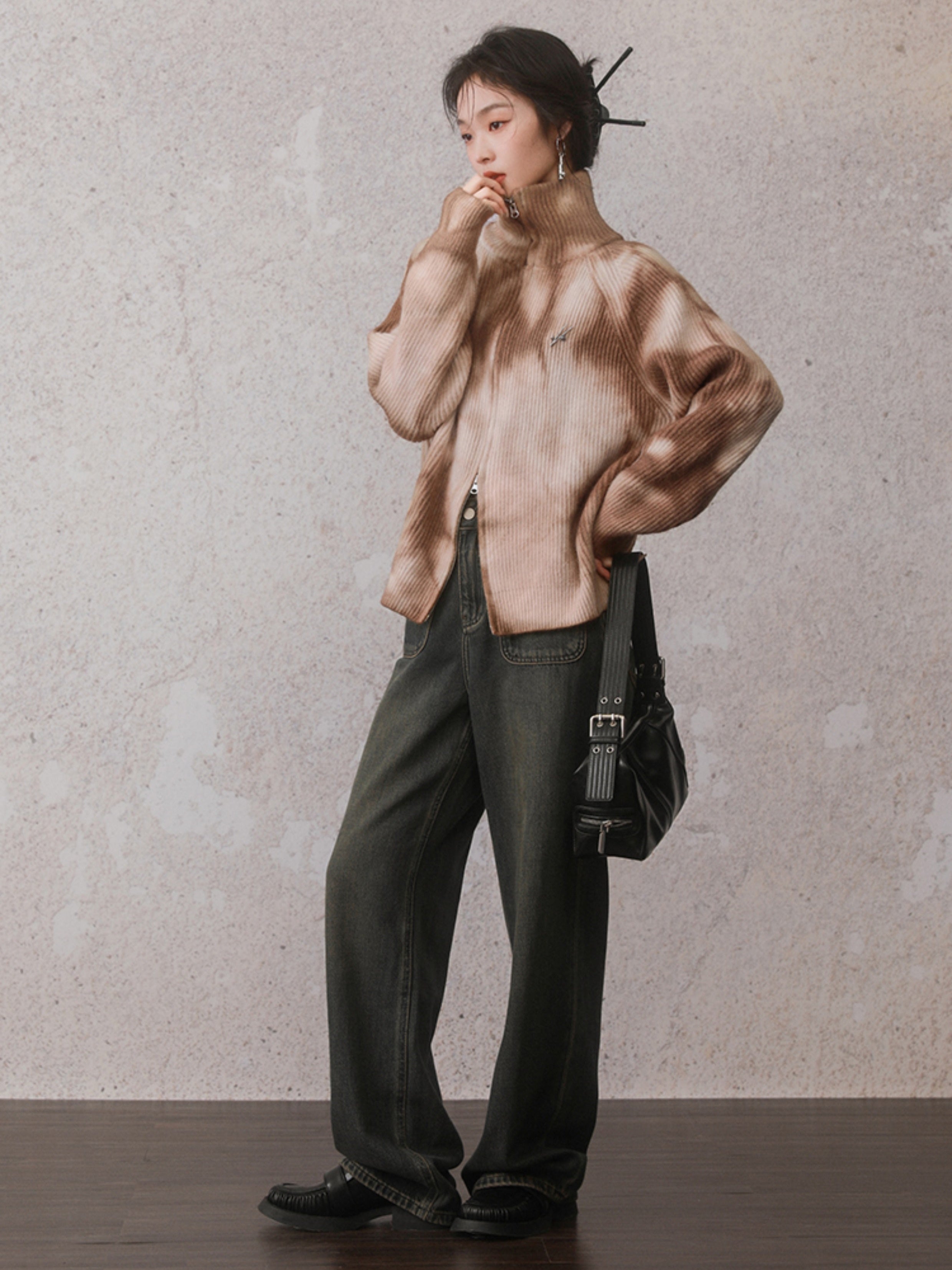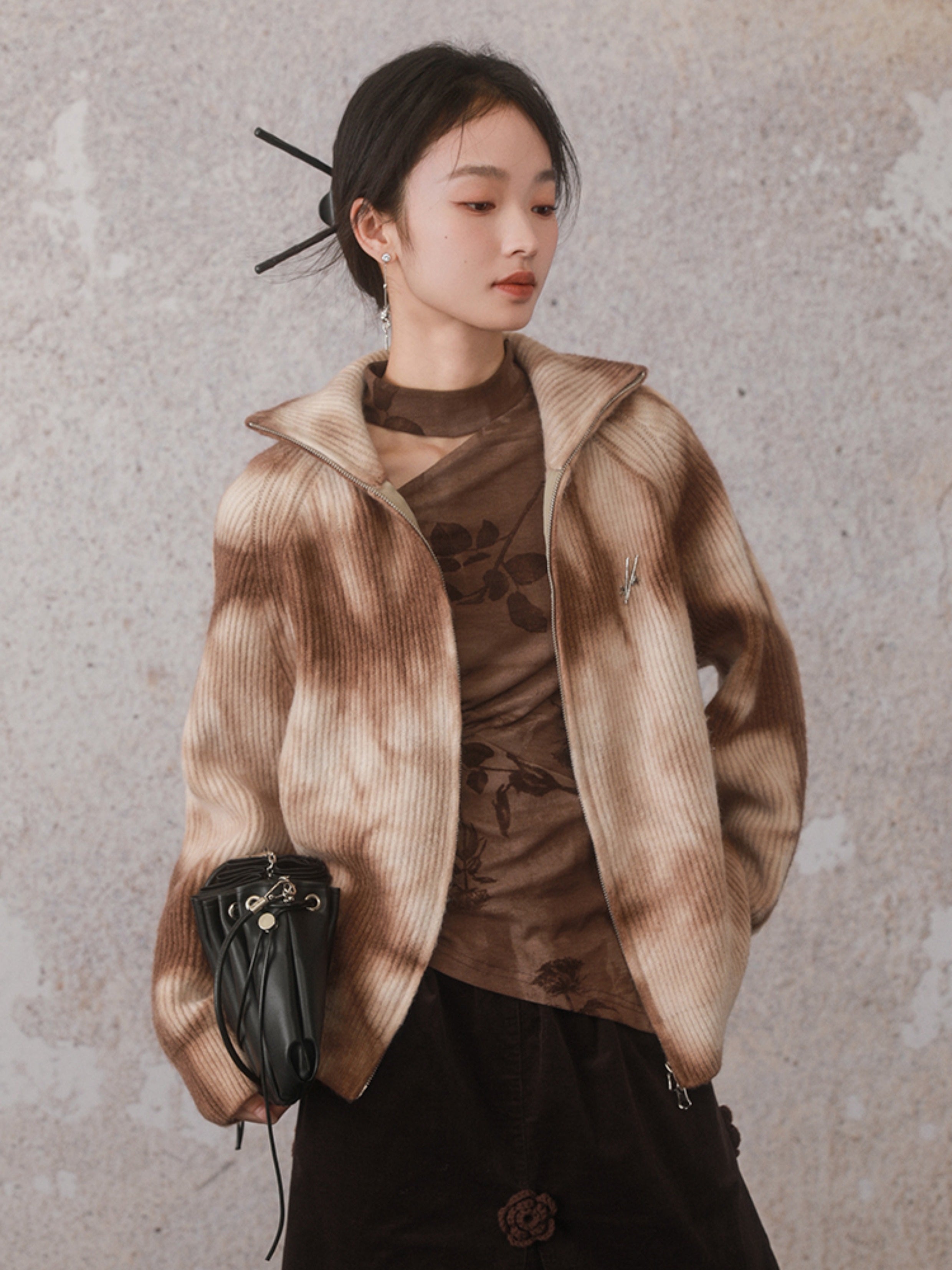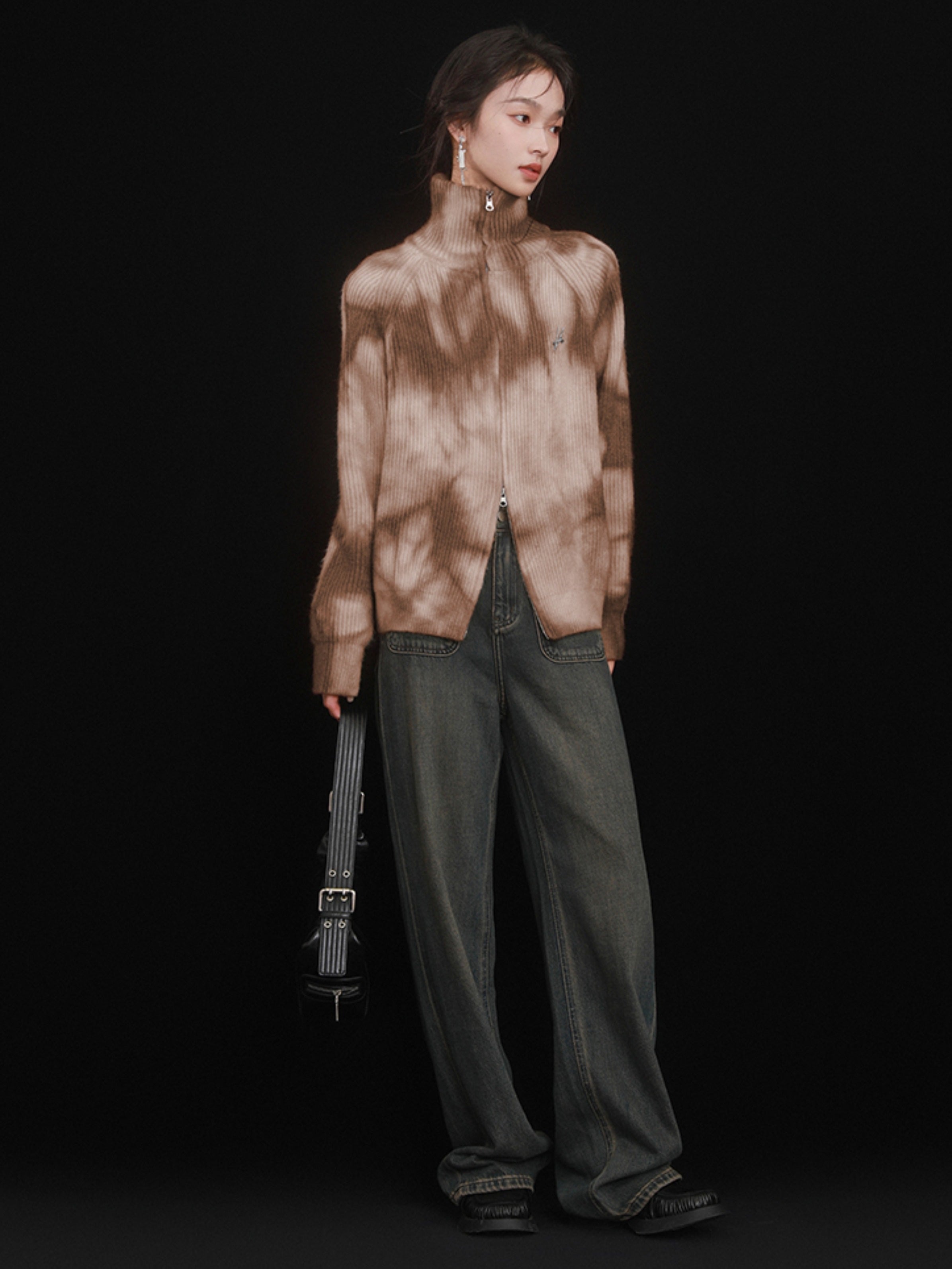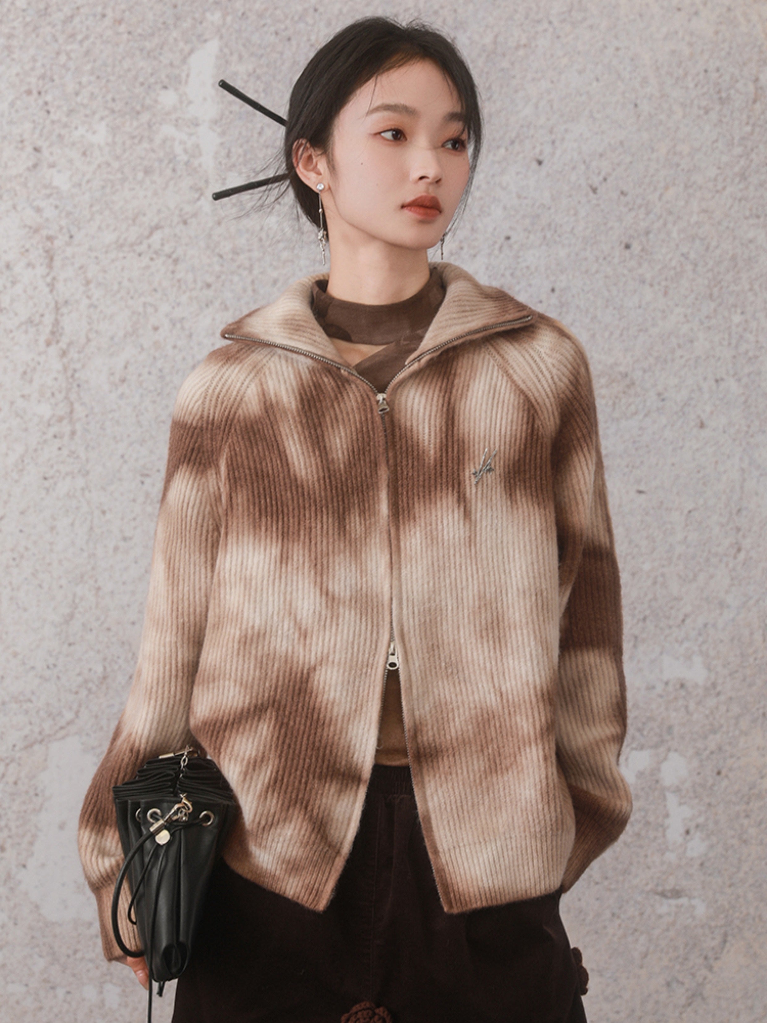 Krawatten-Dye High Neck Reißverschluss Strick-Strickjacke