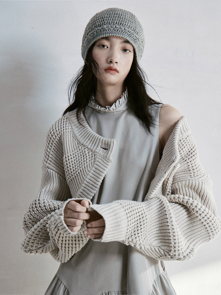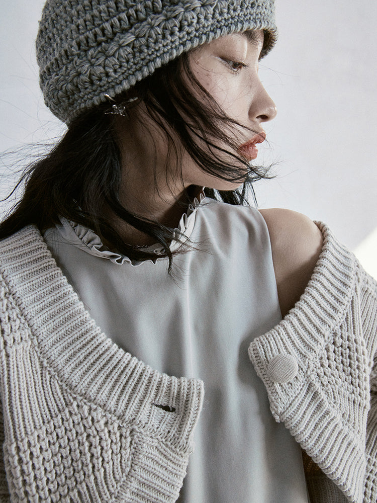 Kurze Waffel-Lautstärkemischung lose Strickjacke