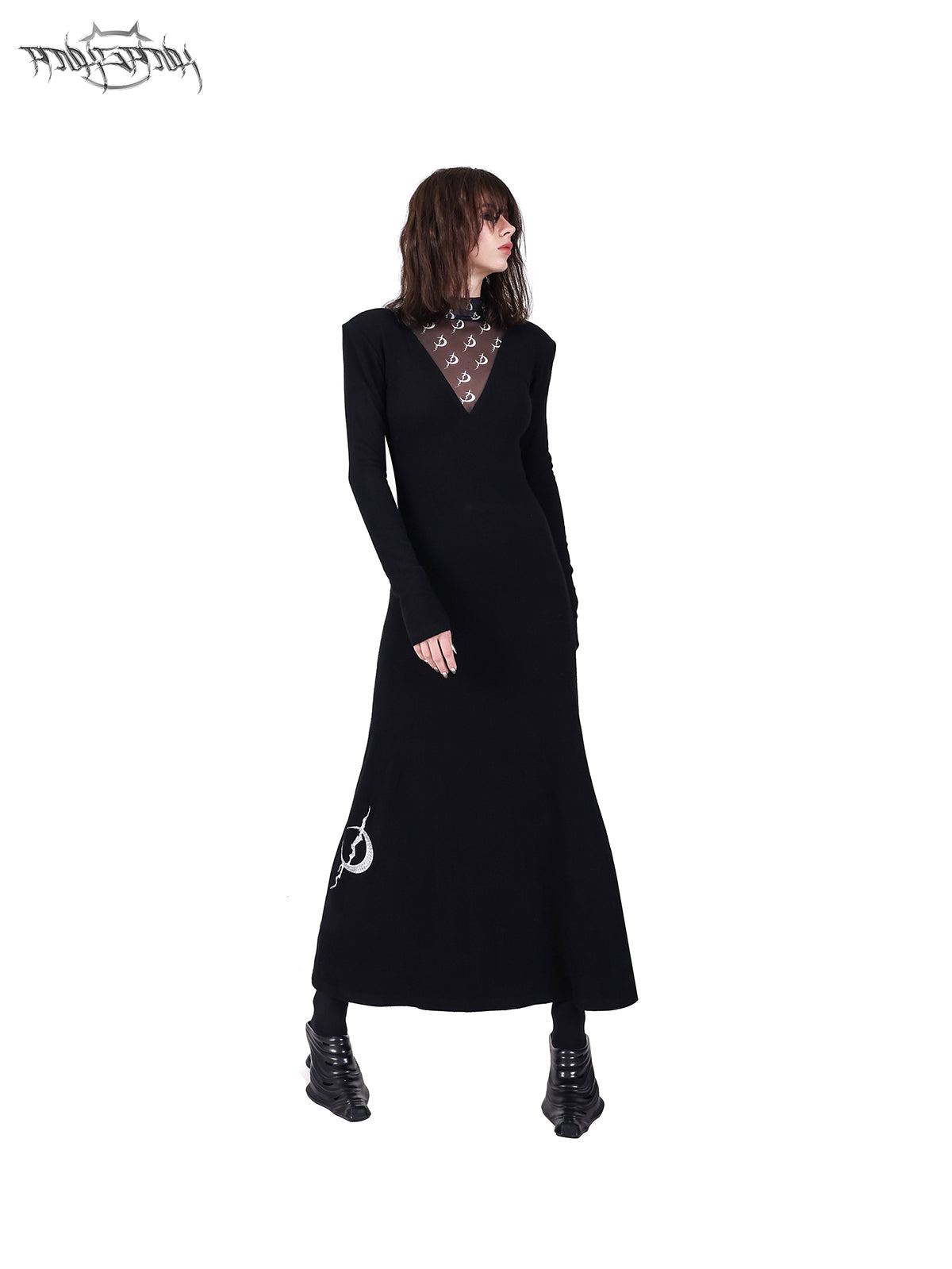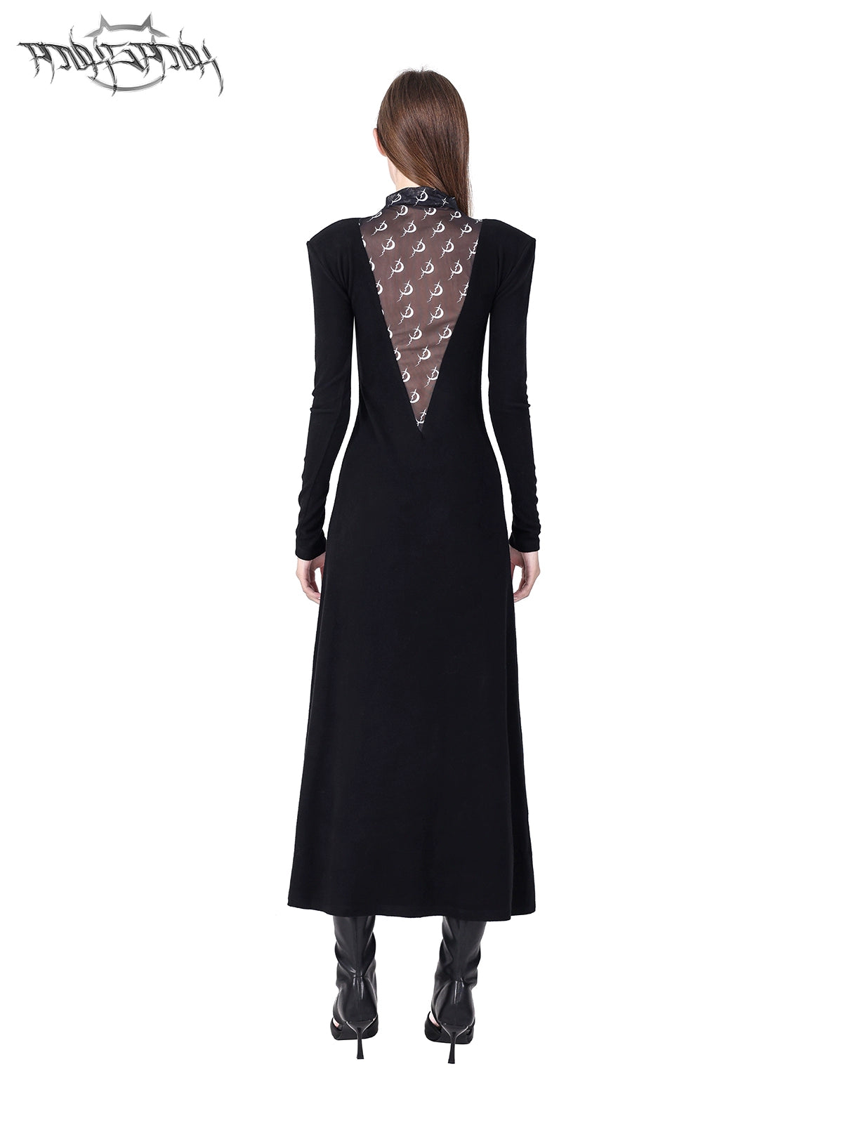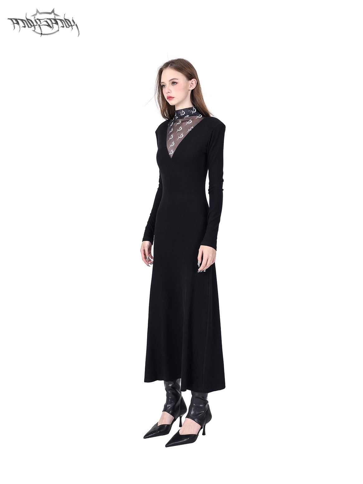 Mesh Spleißen Schulterpolster -Flaschenhalle Kleid