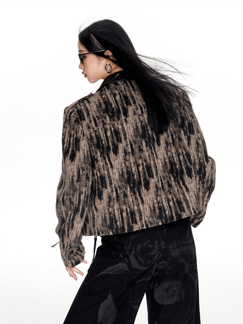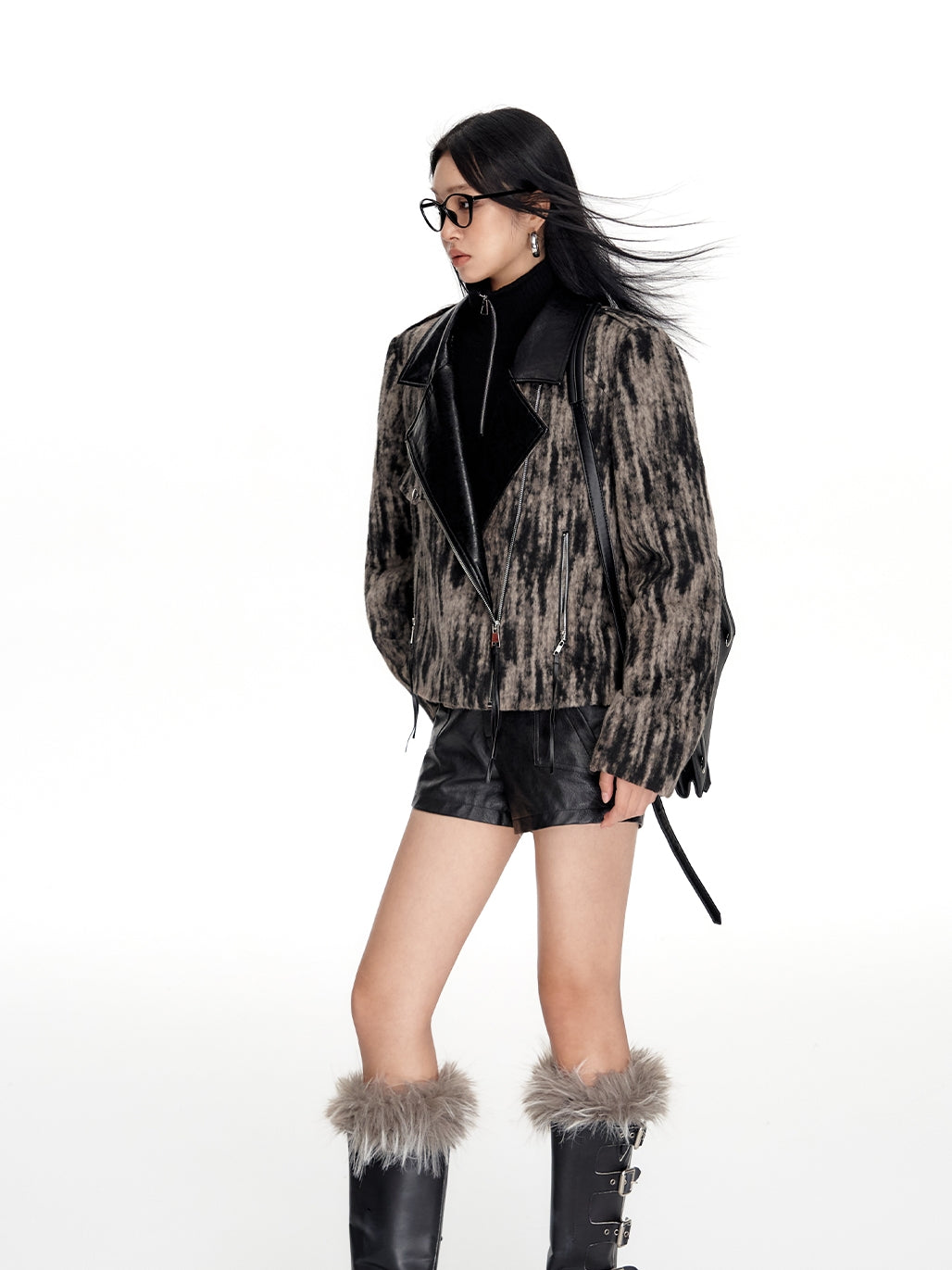 Nichi Retro -Jacke von Leder und Wolle gesprenkelt