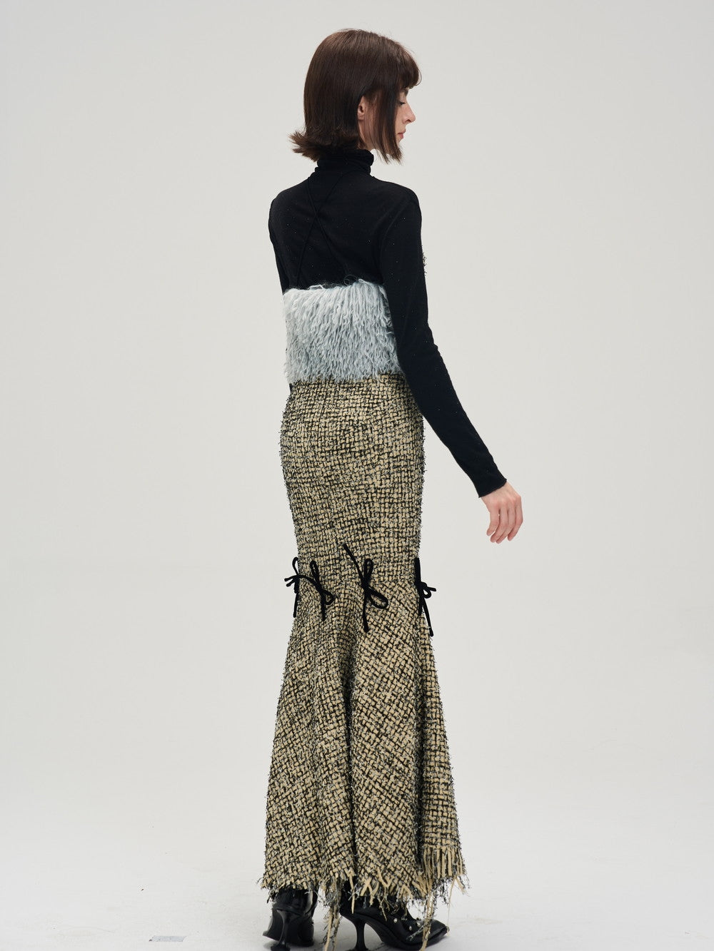 Nichi Tassel Tweed Ribbon Fell Camisole & Long-Scirt