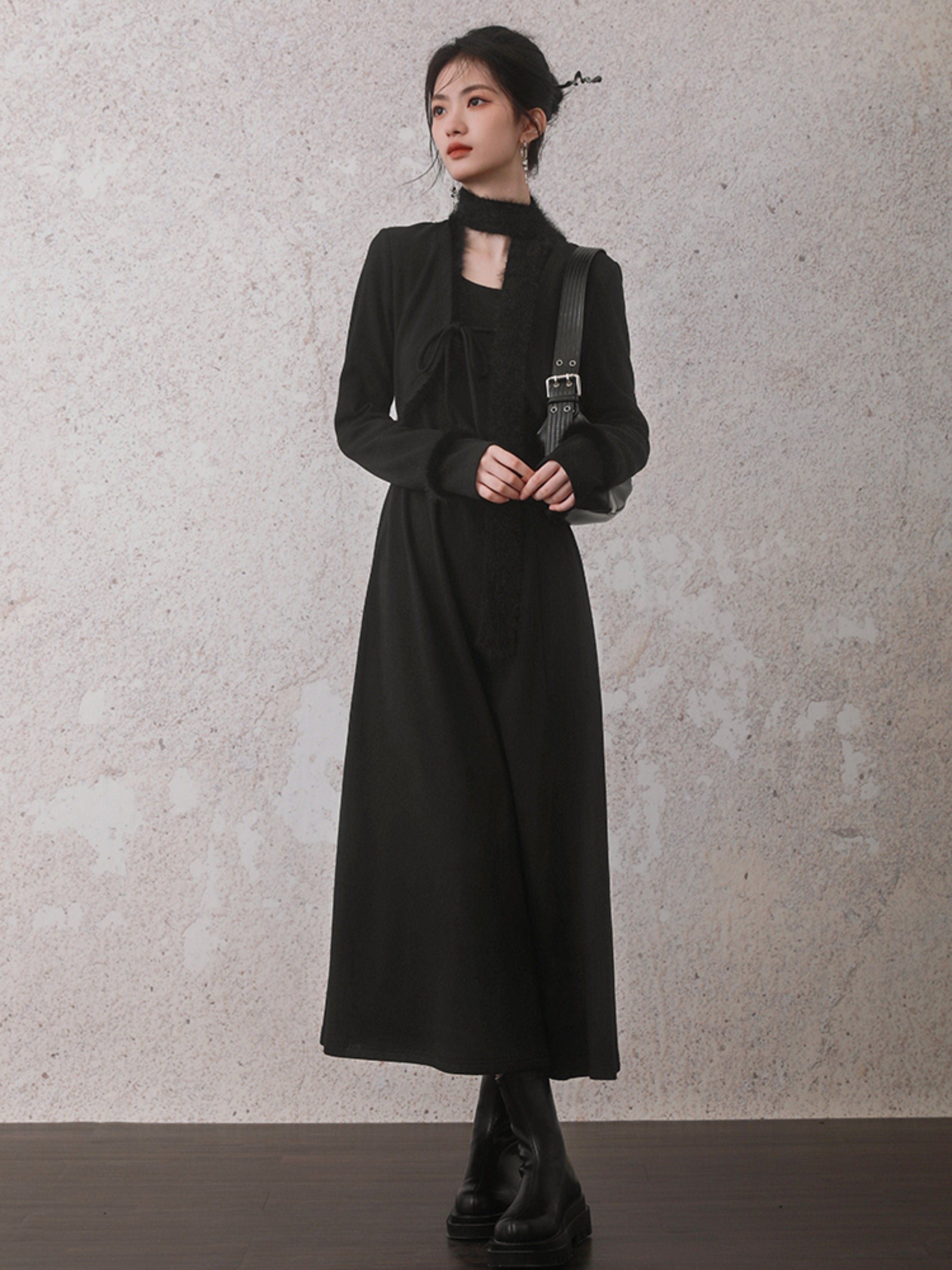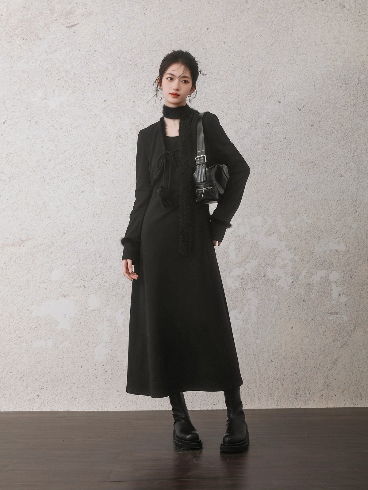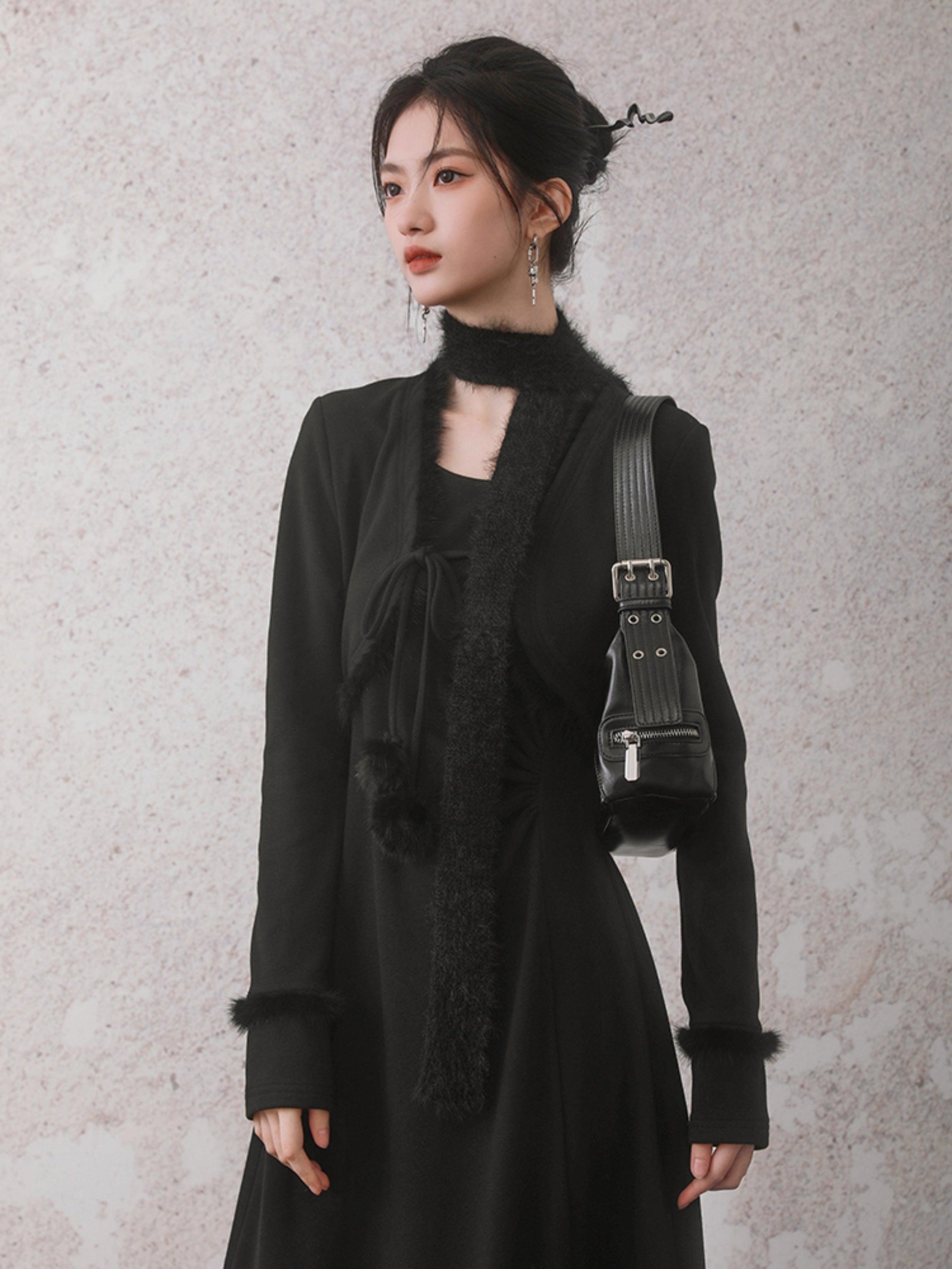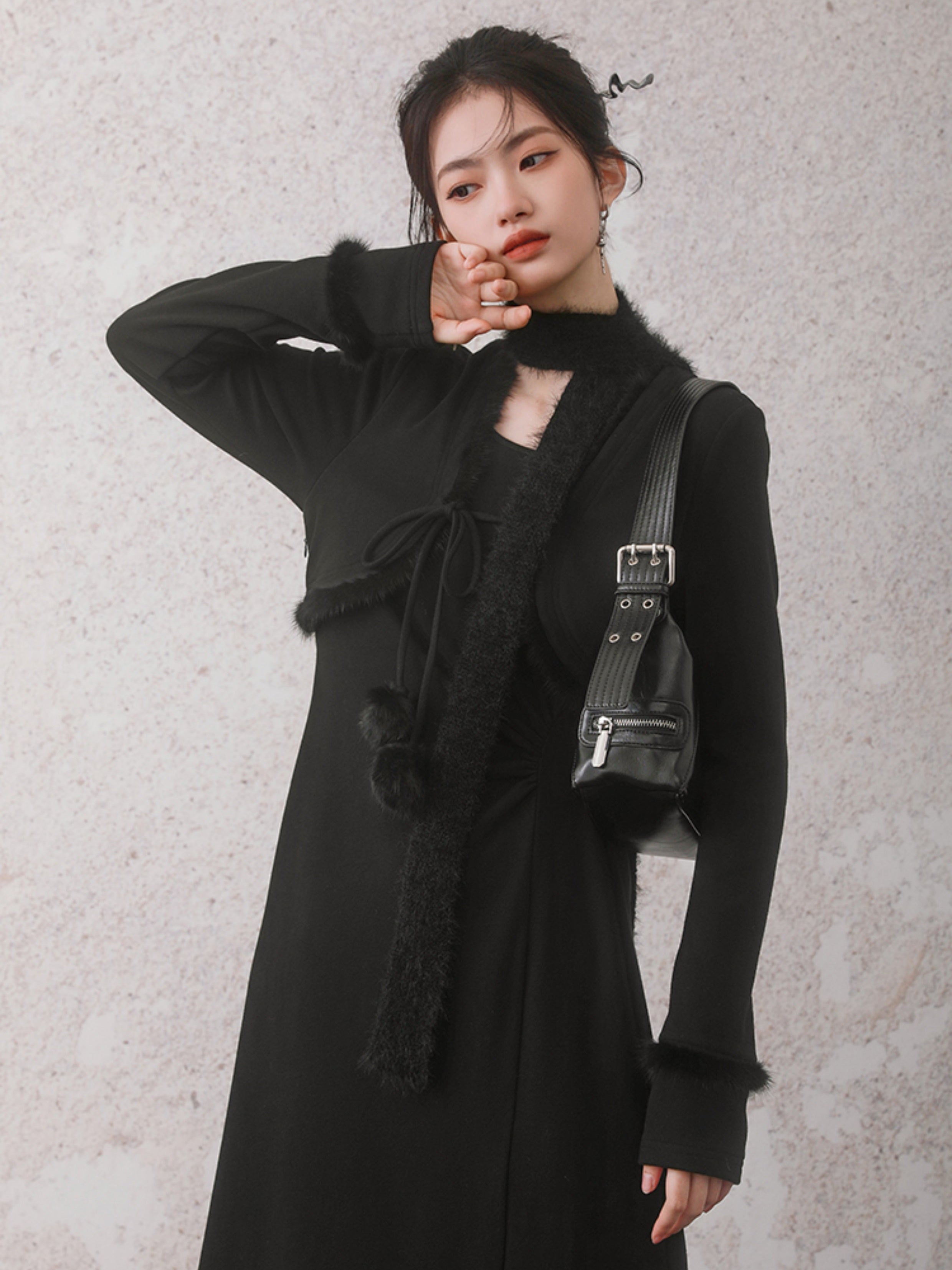Pelz Edge Chinesische Stil falsches zweiteiliges Kleid