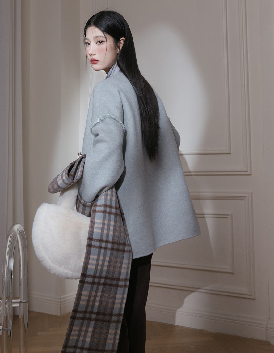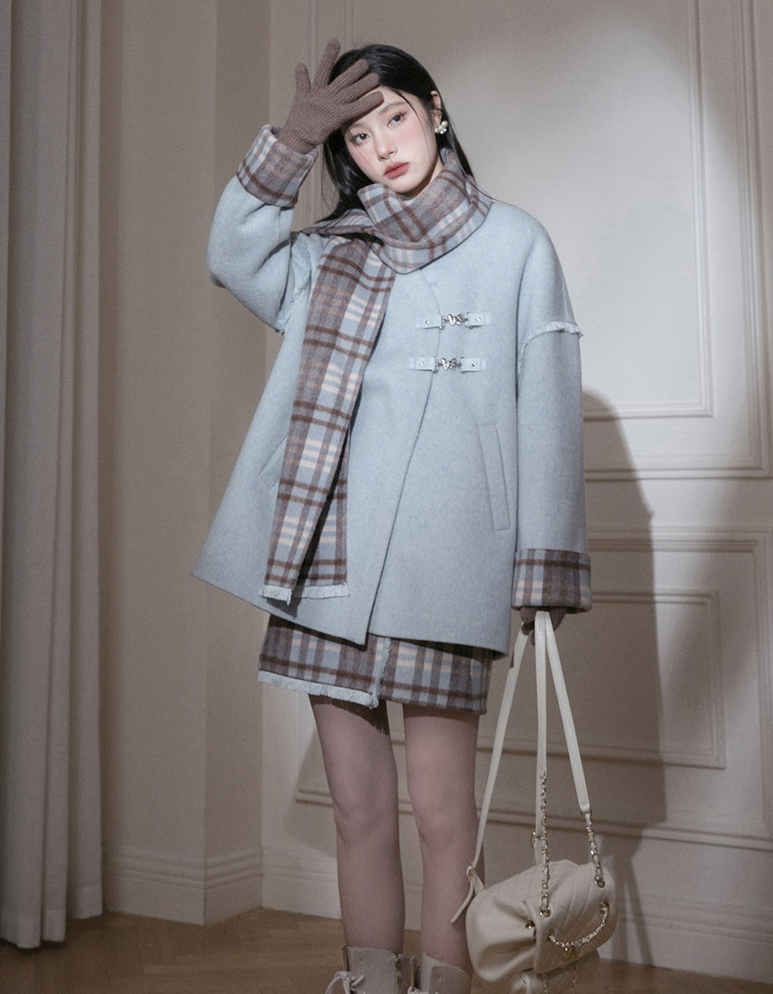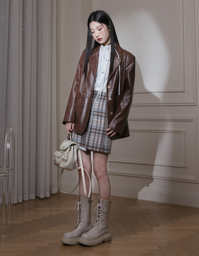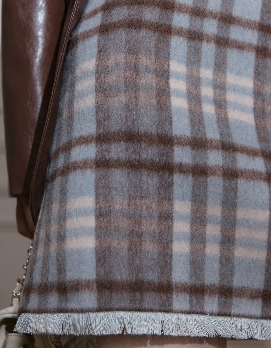 Plaid-Halbjacke und Rock mit V-Ausschnitt