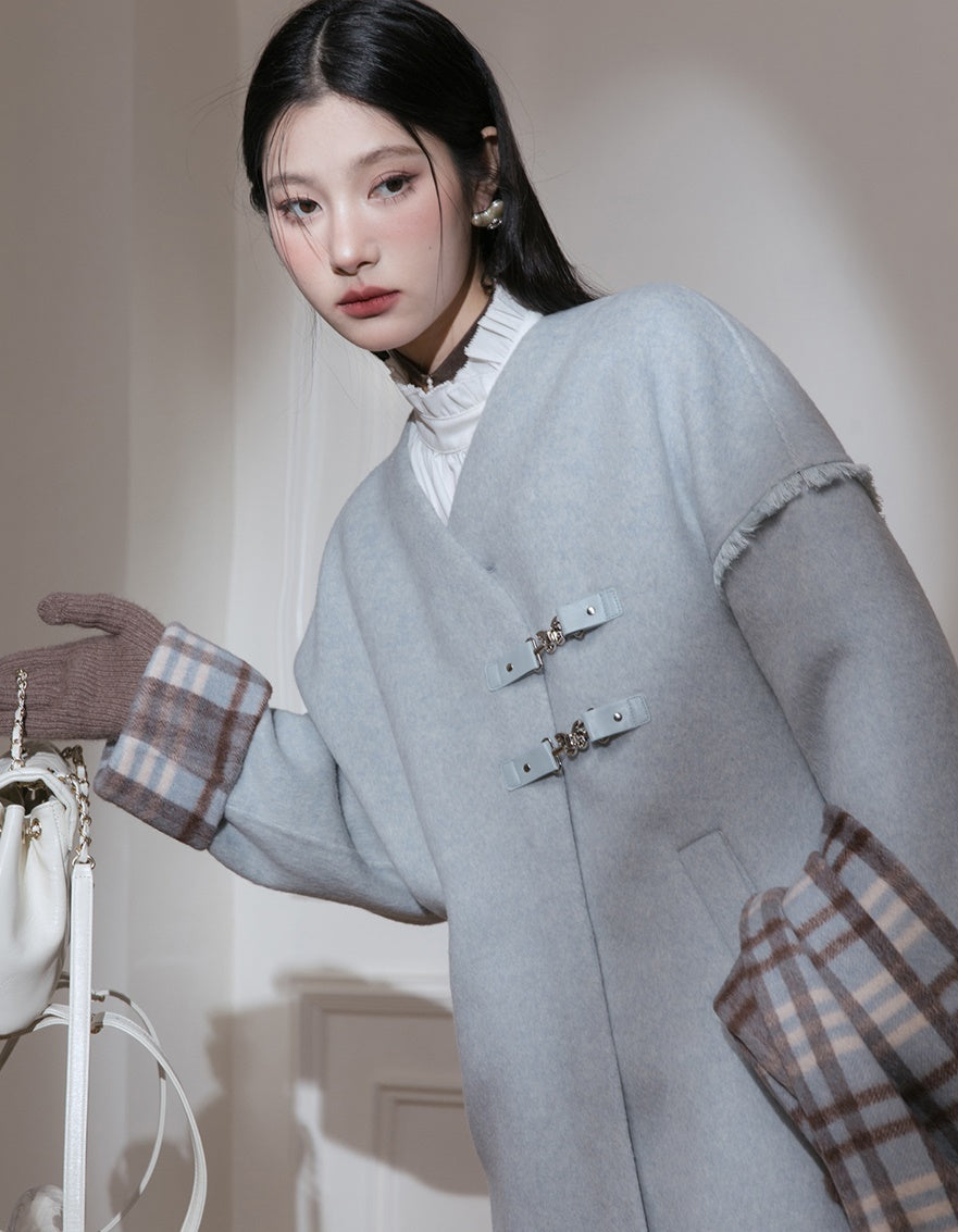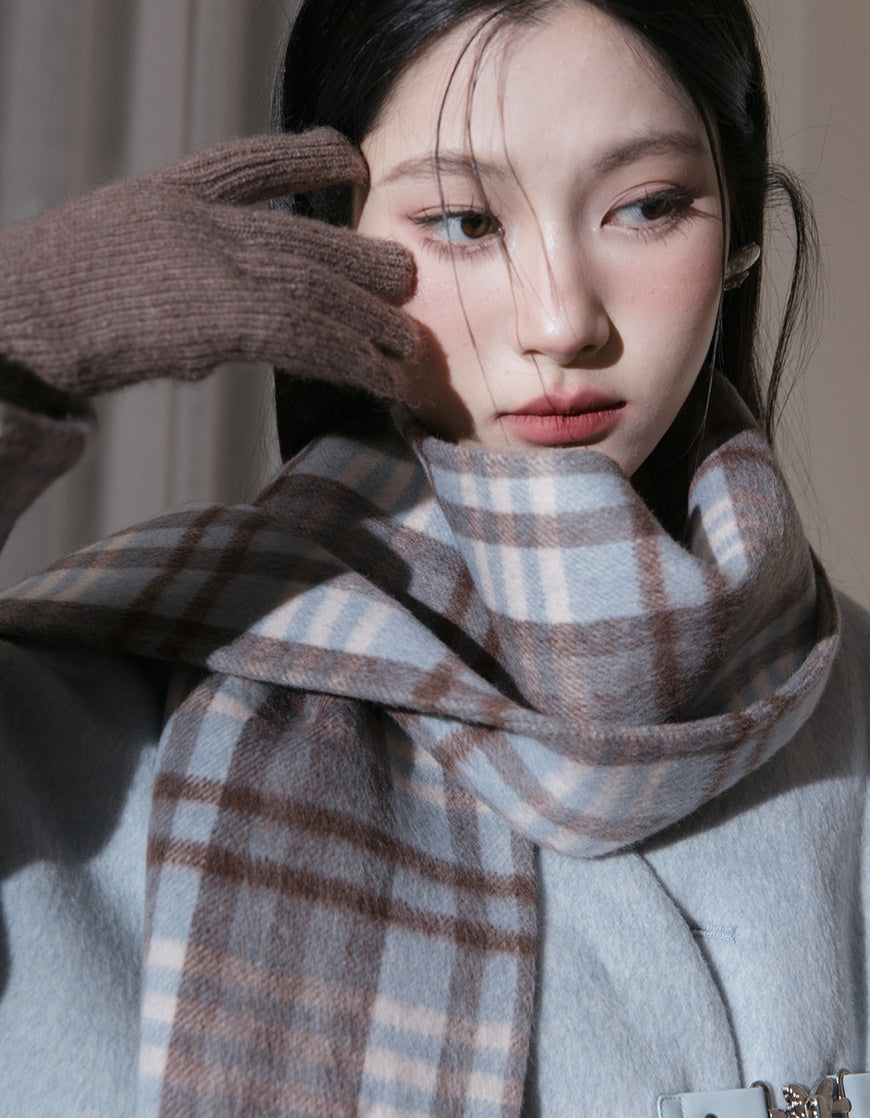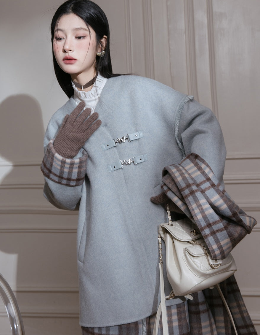 Plaid-Halbjacke und Rock mit V-Ausschnitt