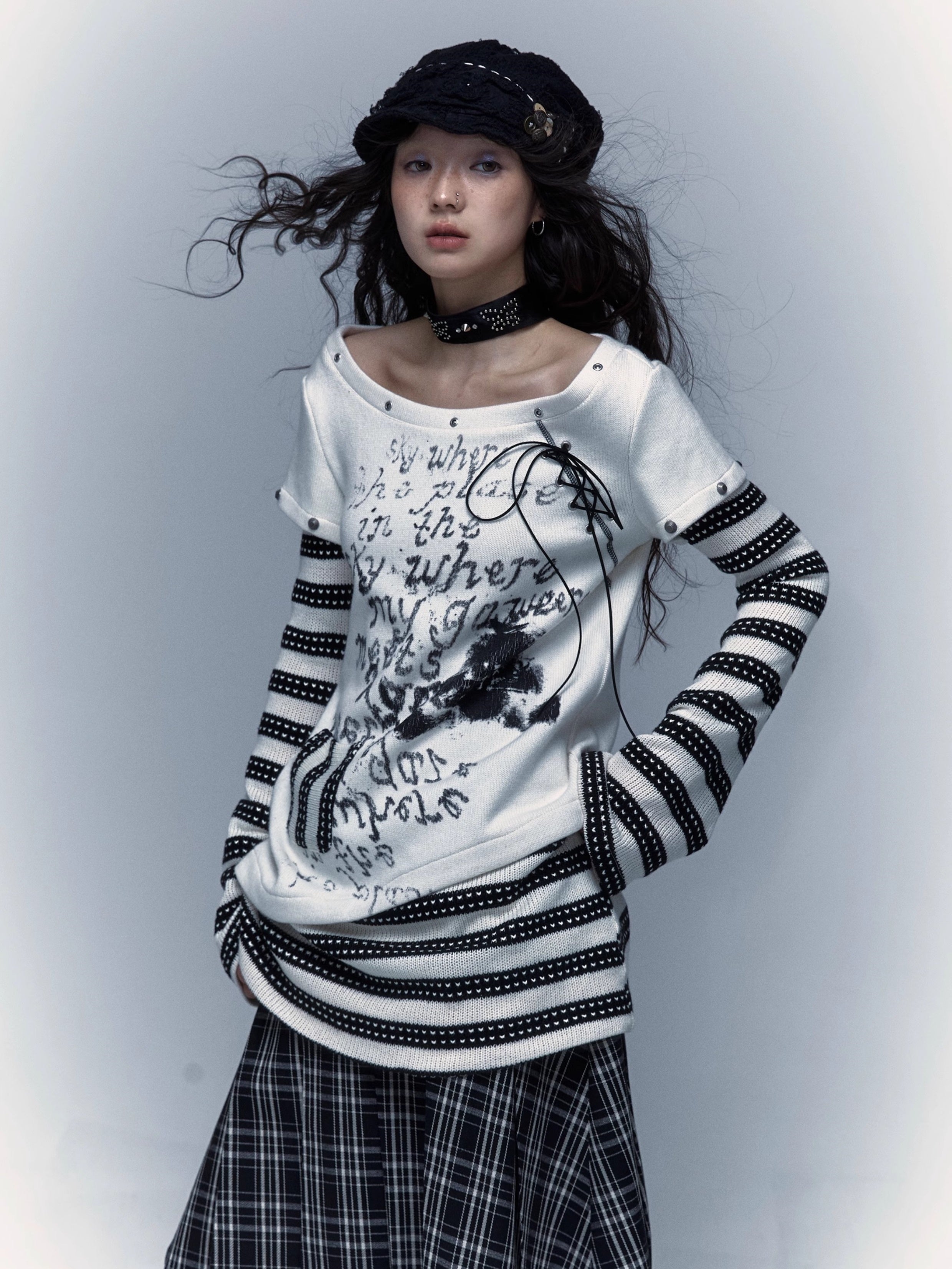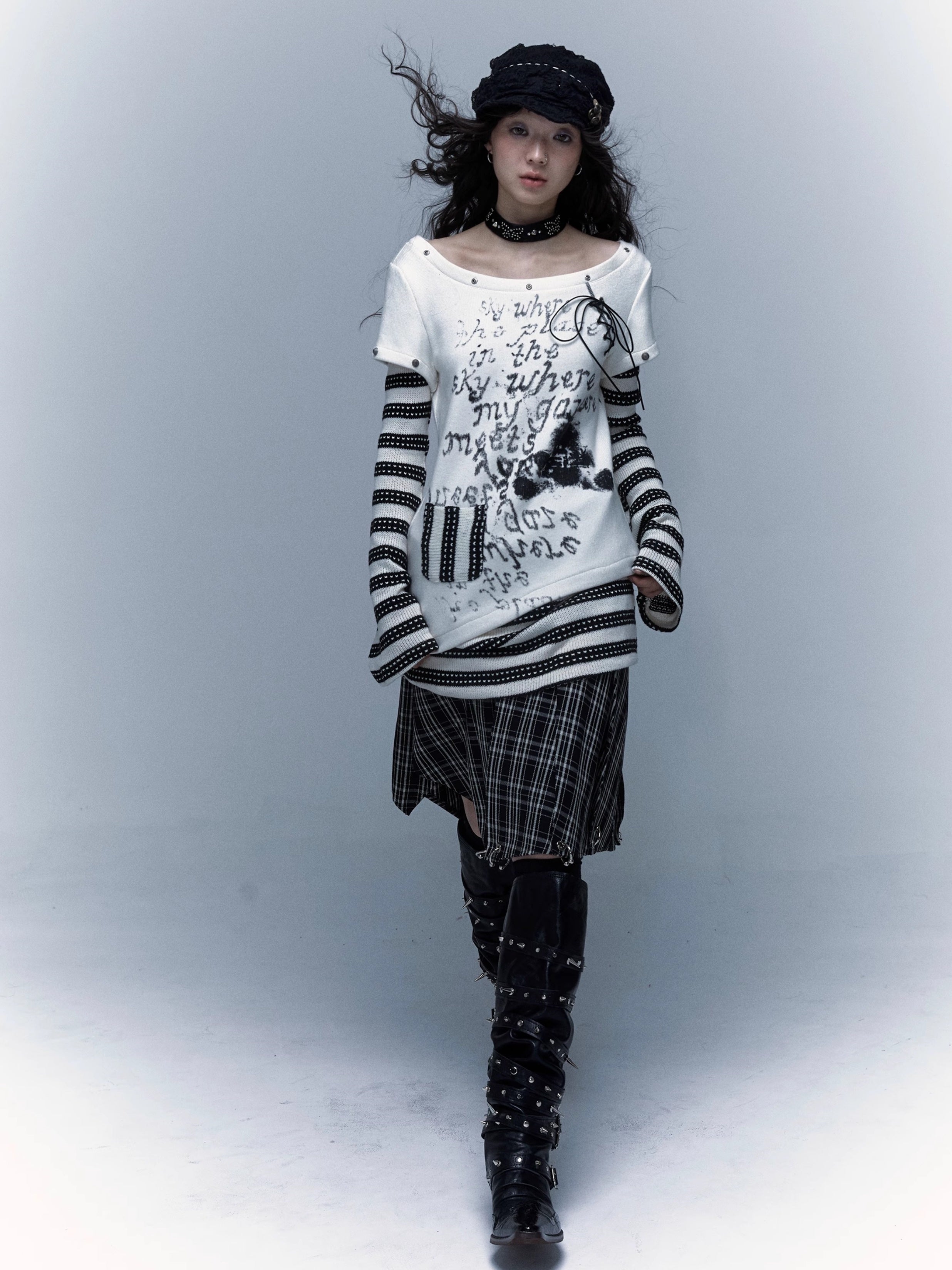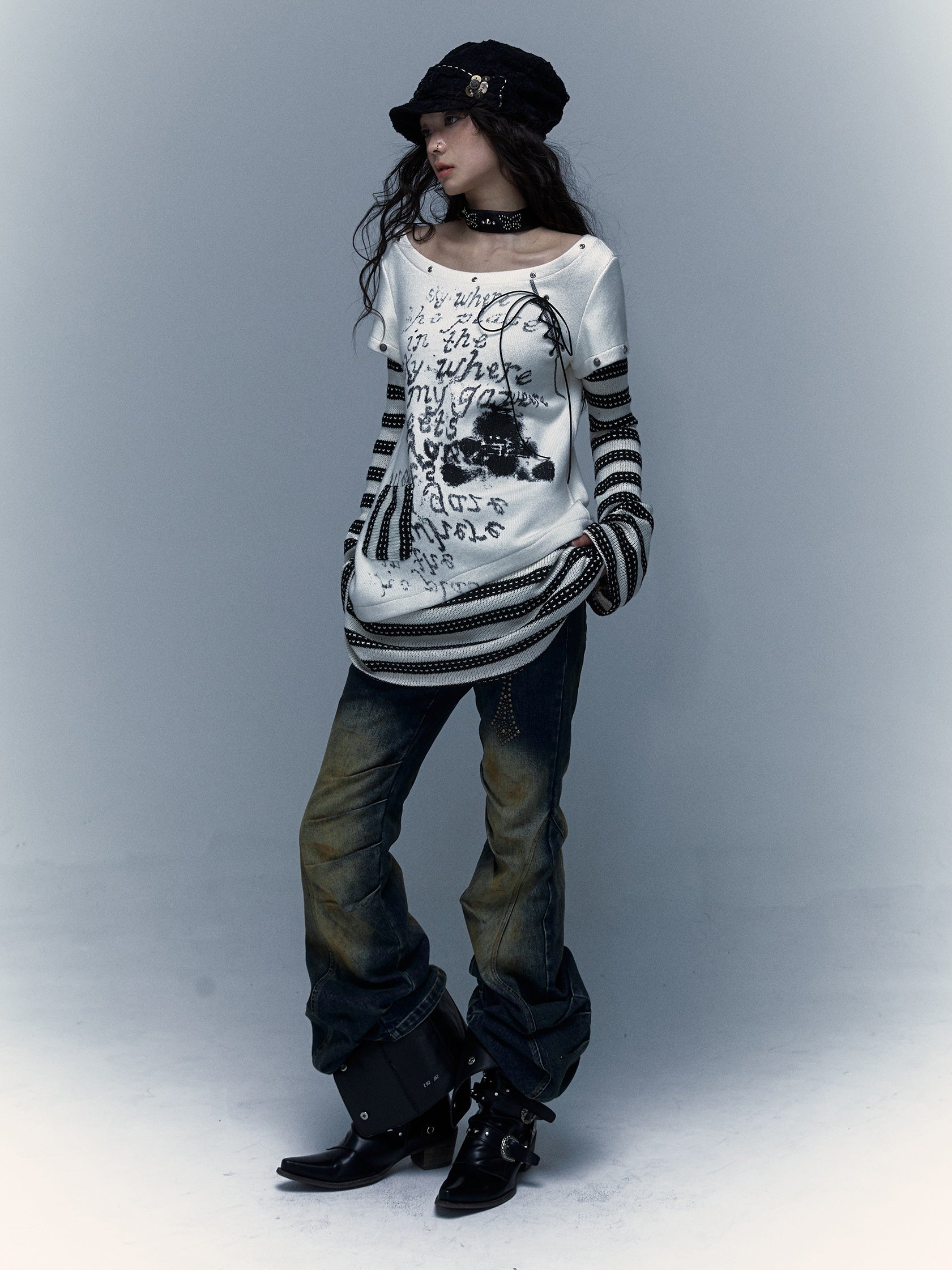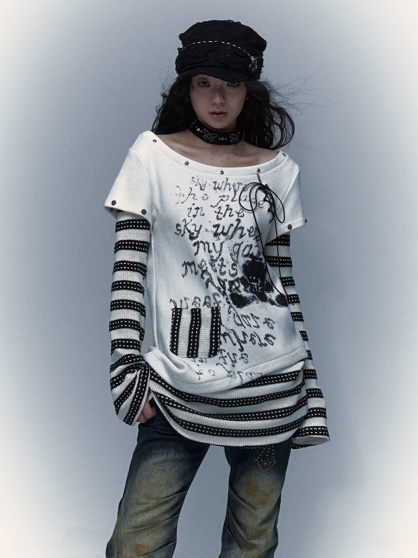 Punk-Spleißen gestreiftes Druck mit langem Ärmeln T-Shirt