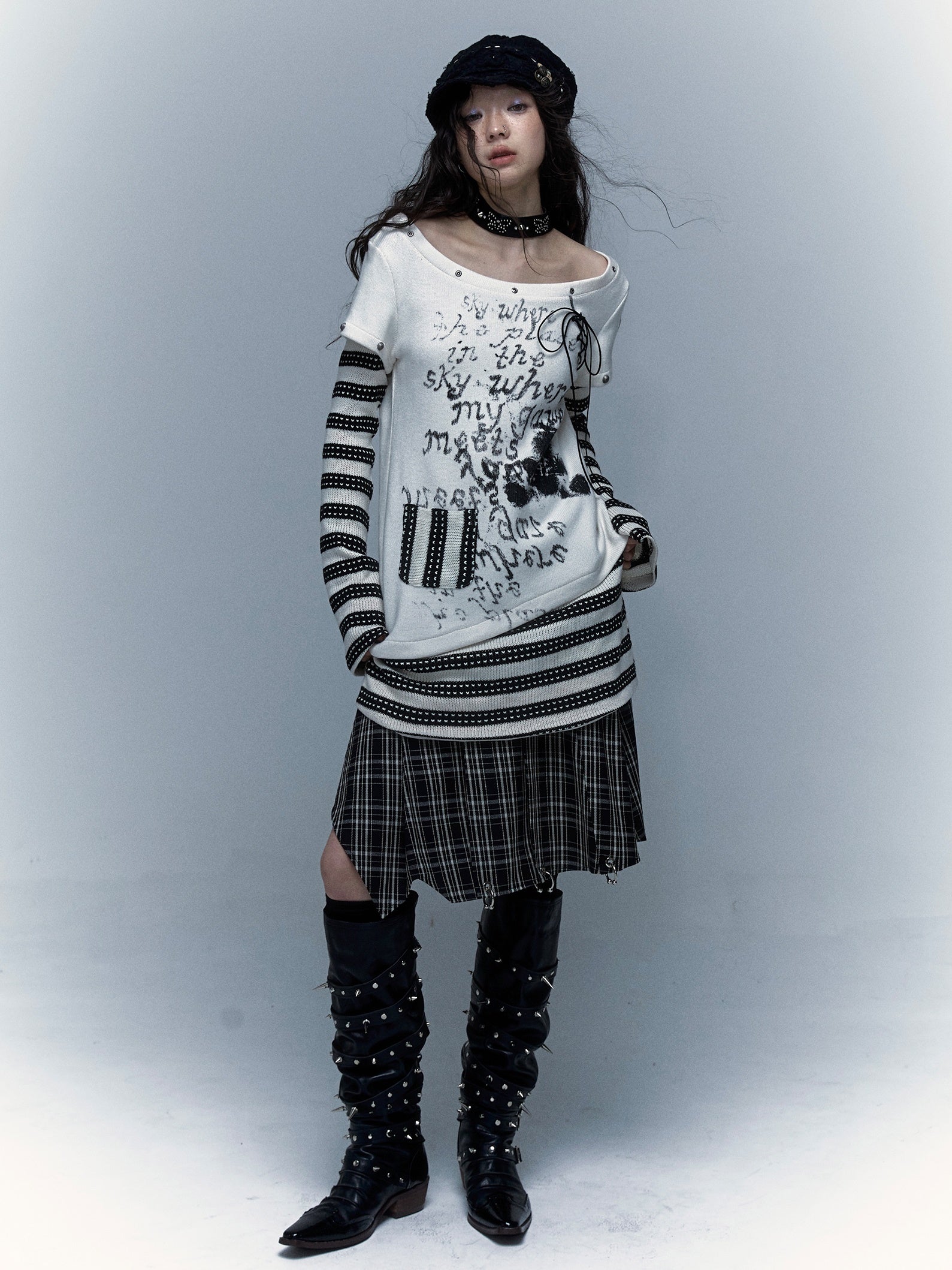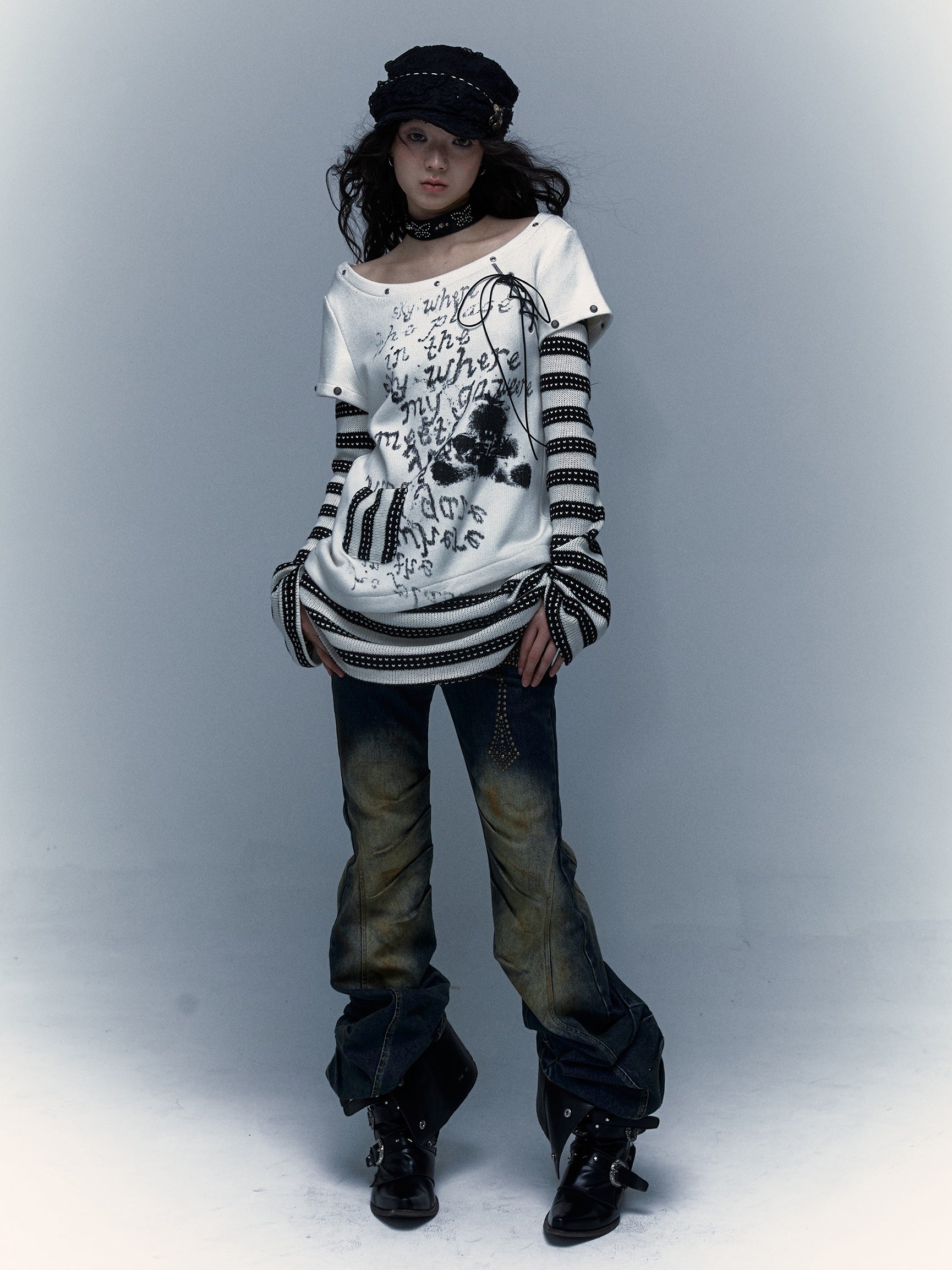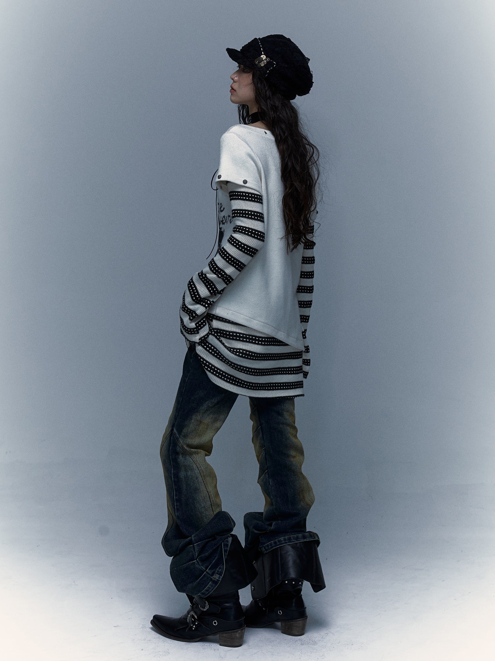 Punk-Spleißen gestreiftes Druck mit langem Ärmeln T-Shirt