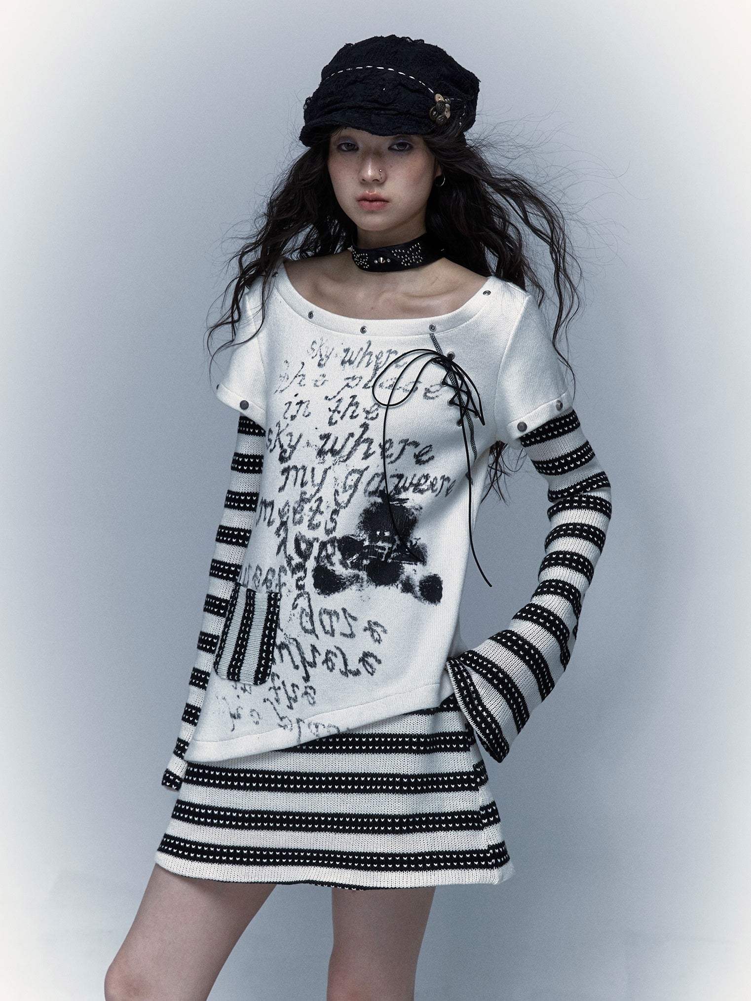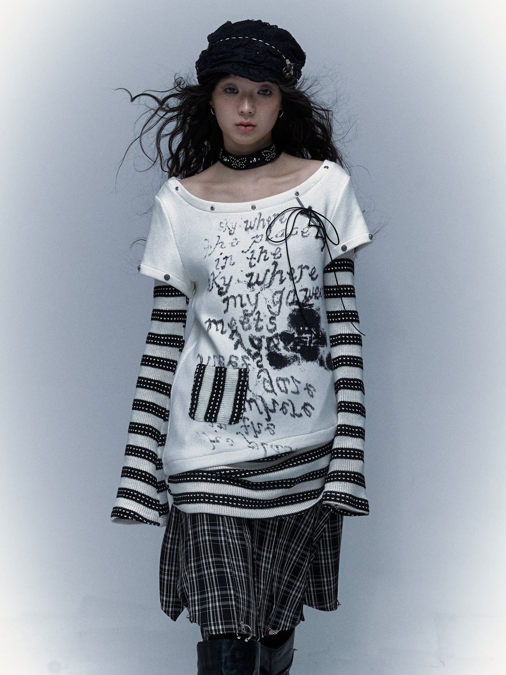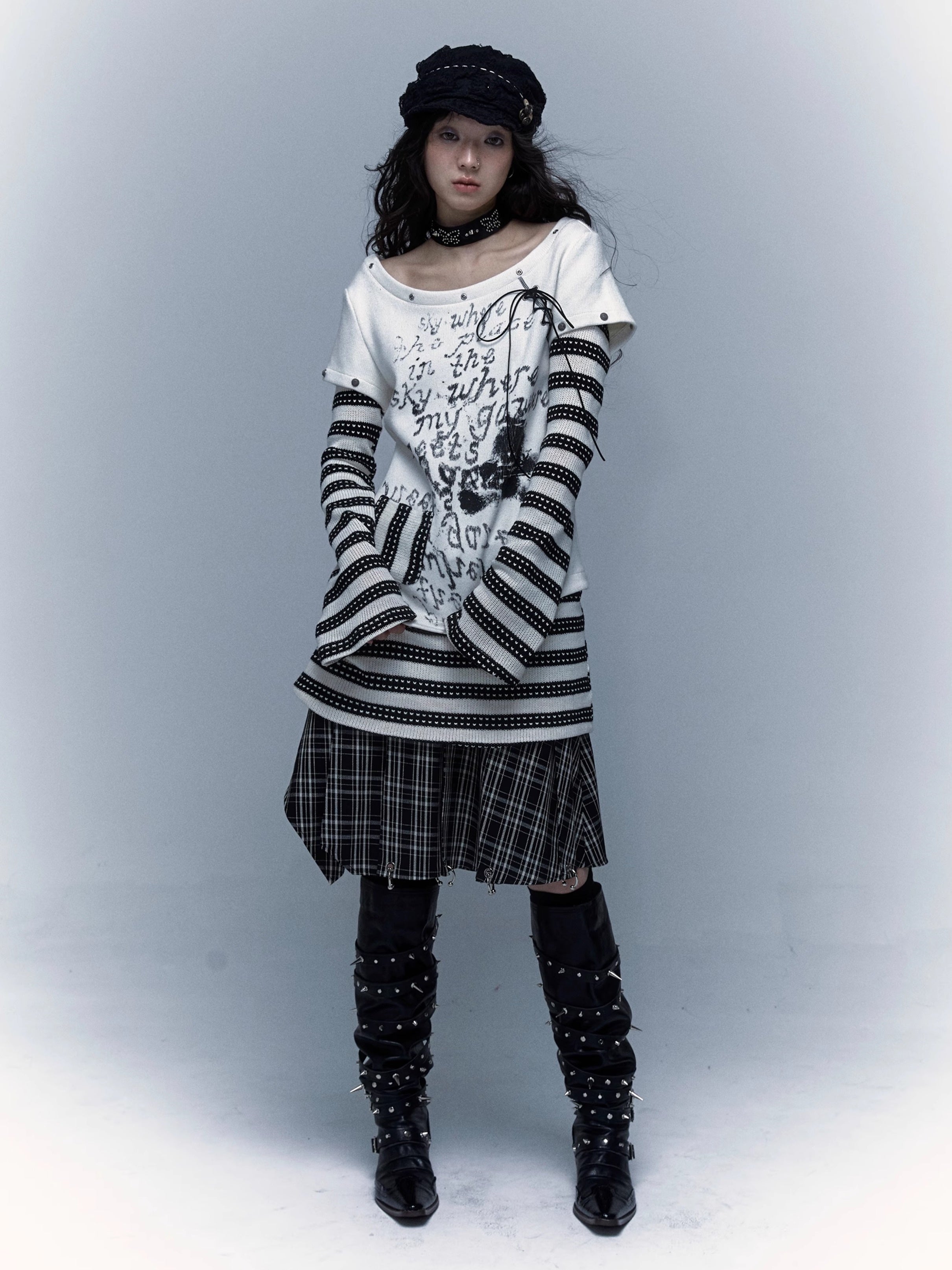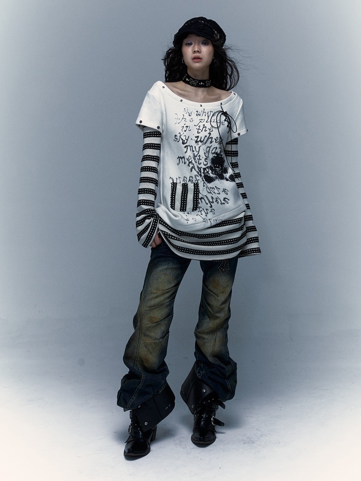 Punk-Spleißen gestreiftes Druck mit langem Ärmeln T-Shirt
