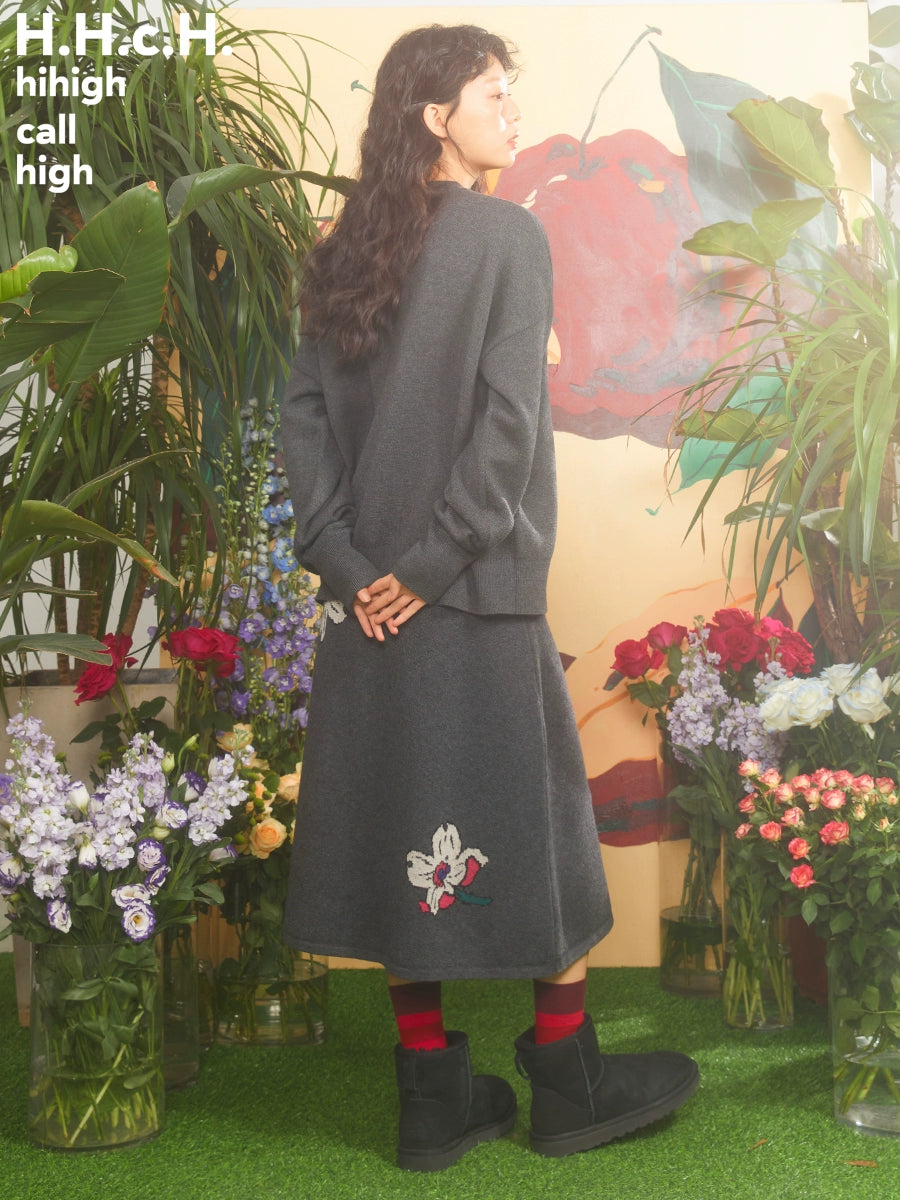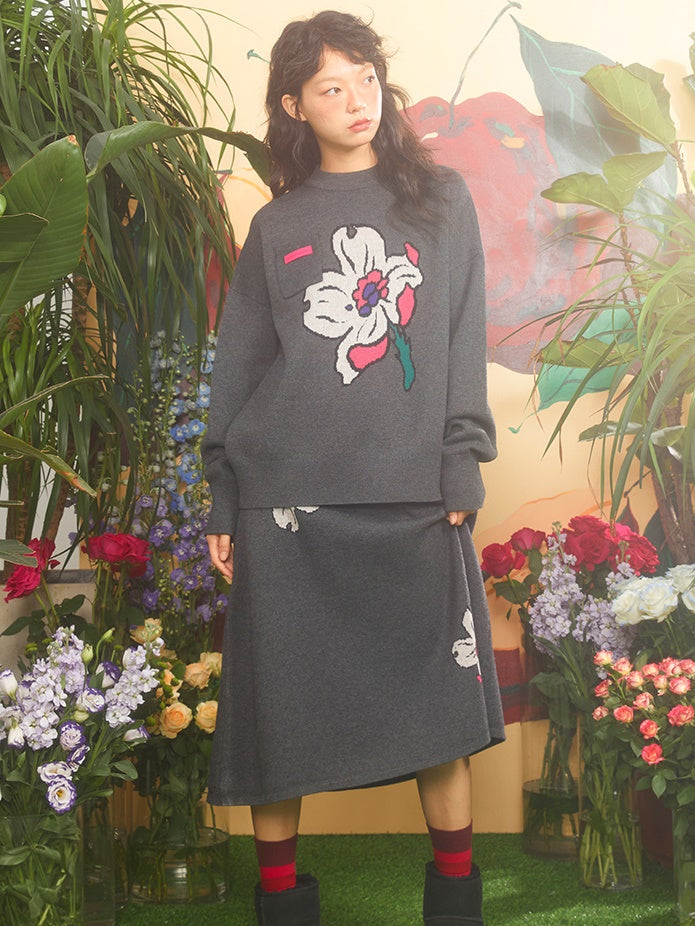 Retro -Kirschblüte Jacquard -Pullover und gestrickter Rock