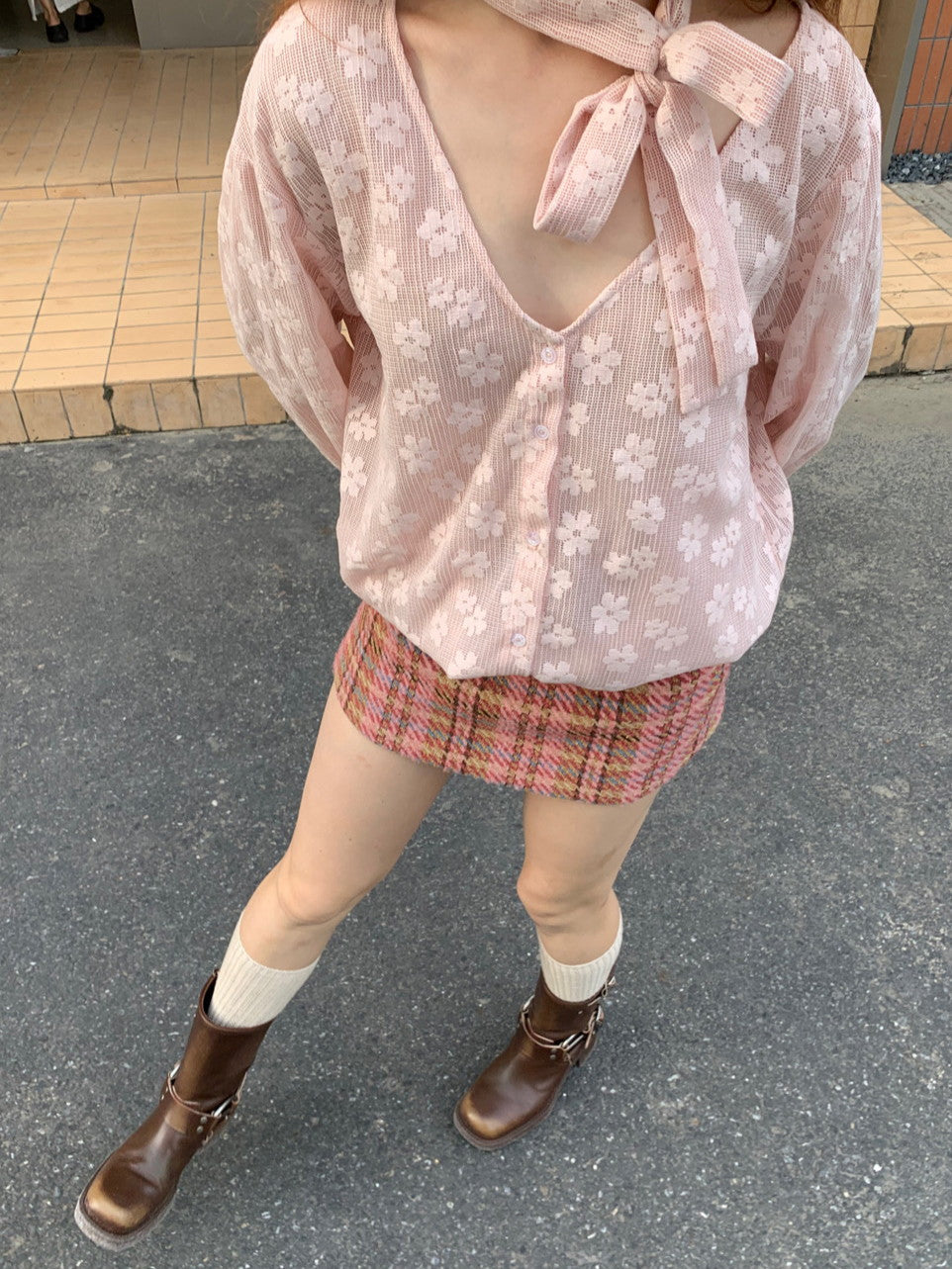 Ribbon Rose Lose Off-Shoulder 2way Long-Knit