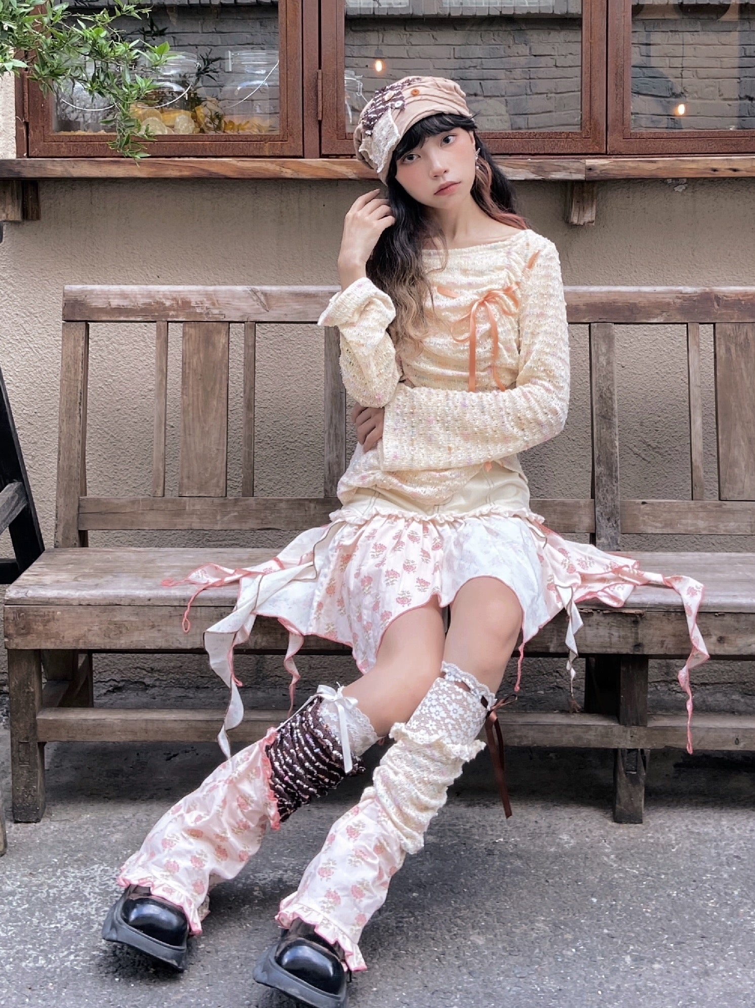 Rohkante Retro Patchwork Stapelhut