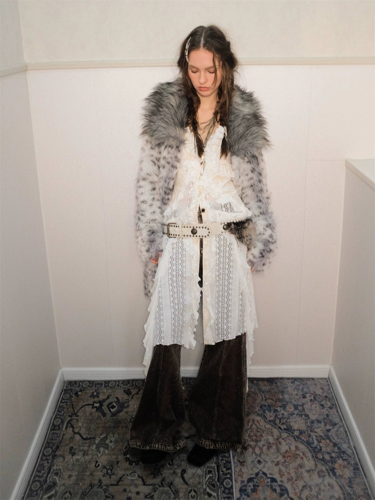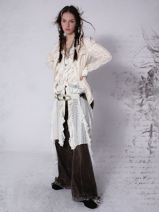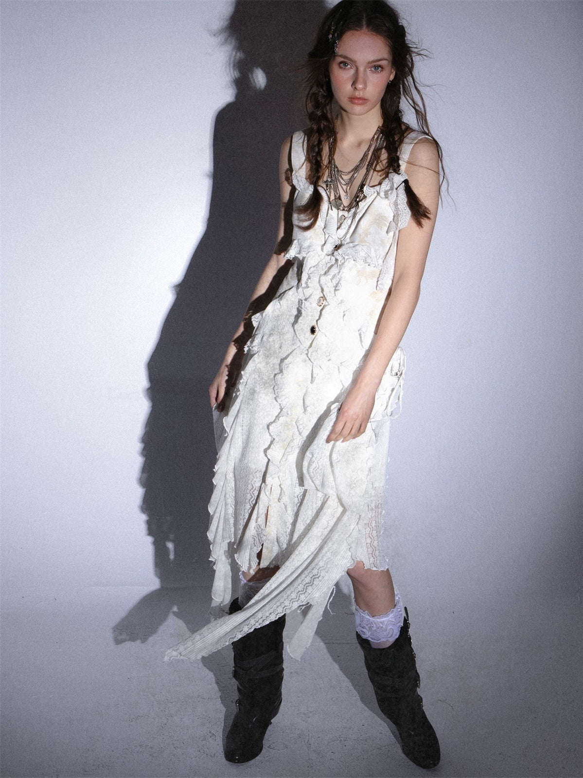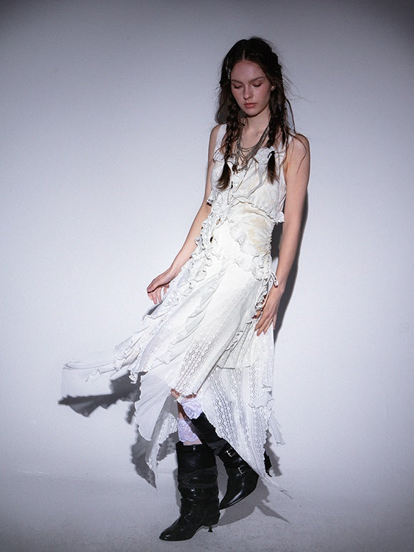 Romantische gekräuselte Spitze unregelmäßiger Hosenträgerkleid
