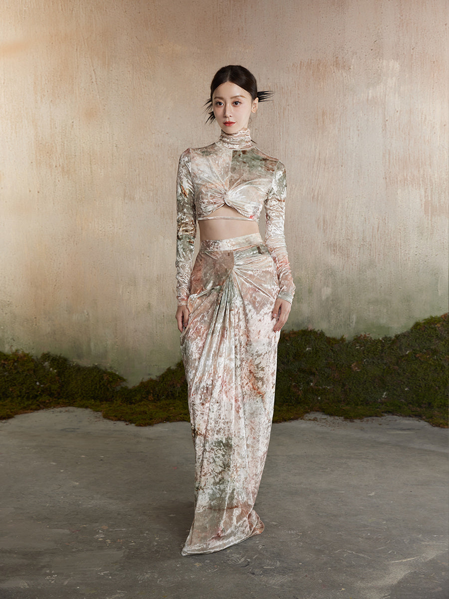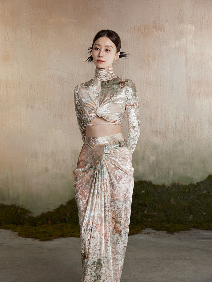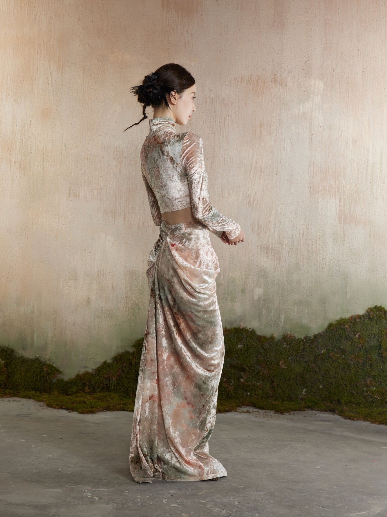 Samt hochhals glänzendes High-End-Blumen-Kurzfilm & Langstreicher