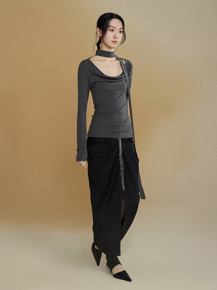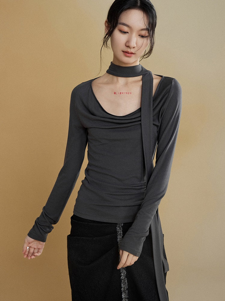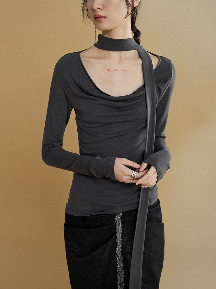 Schal schwang Kragenboden T-Shirt