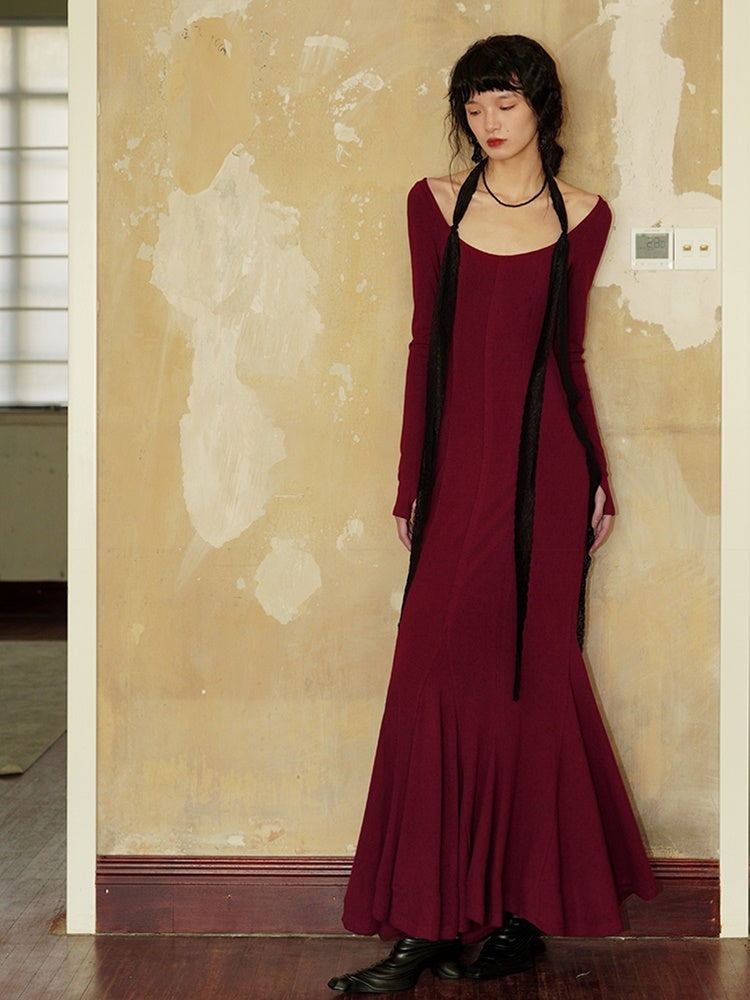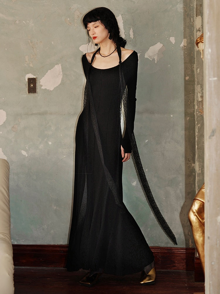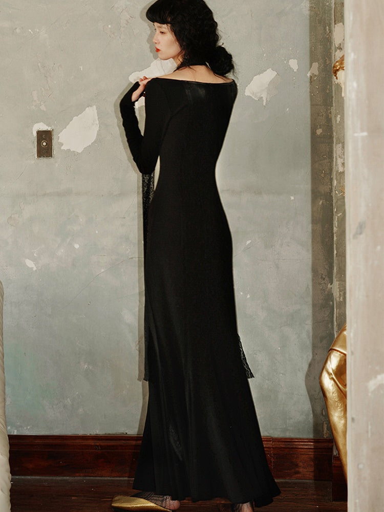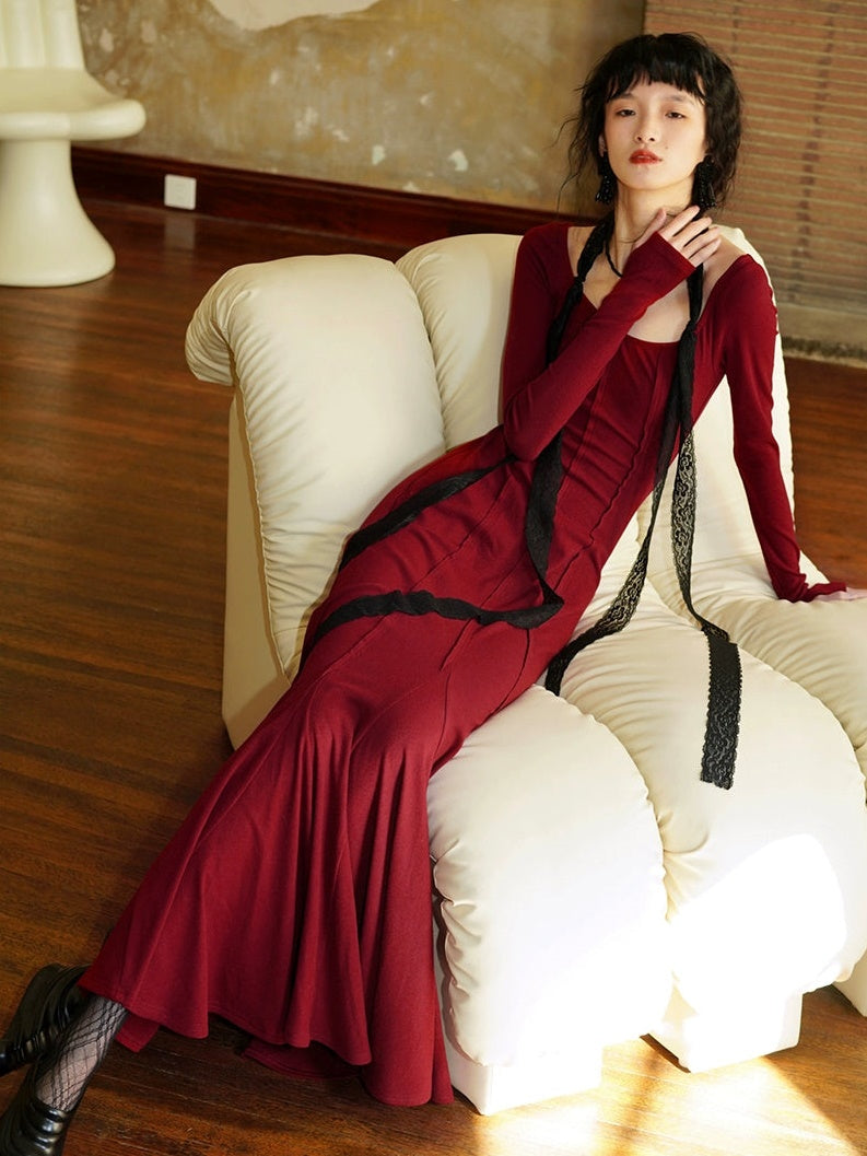 Slim Long Split Mermaid -Kleid mit Spitze gestohlen