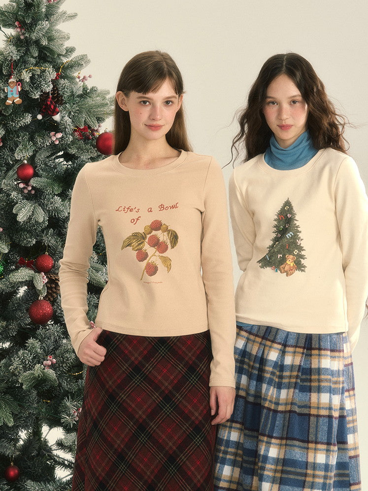 Slim Winter Weihnachten Rund-Hals Einfacher Cutsew