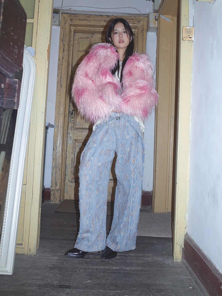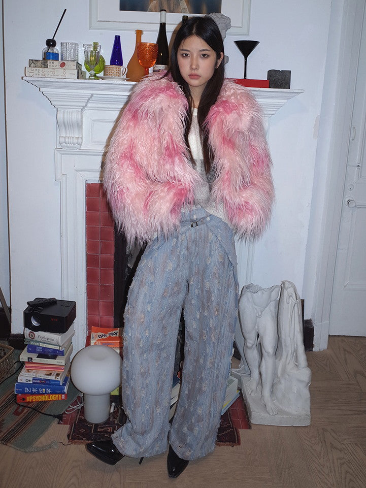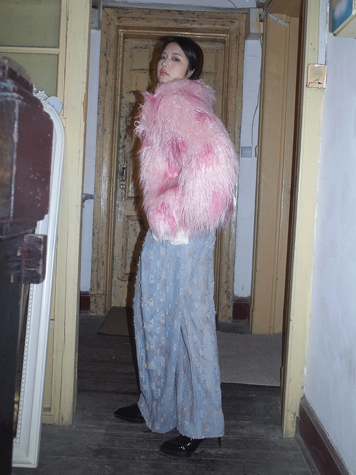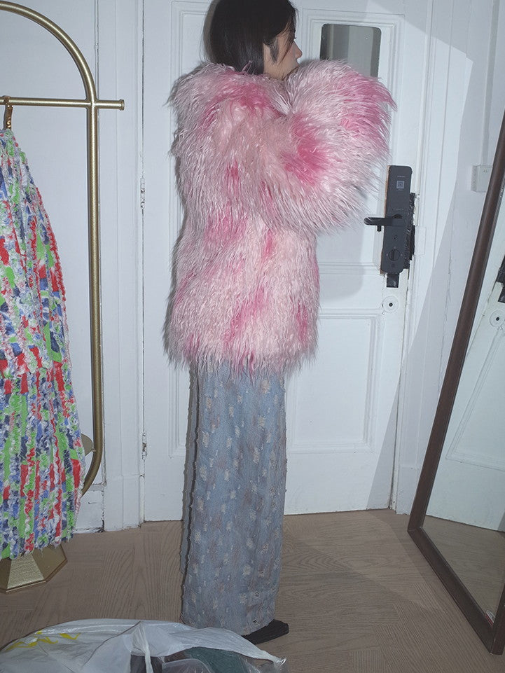 Süße rosa Luxusvolumen warme Fur-Jacket