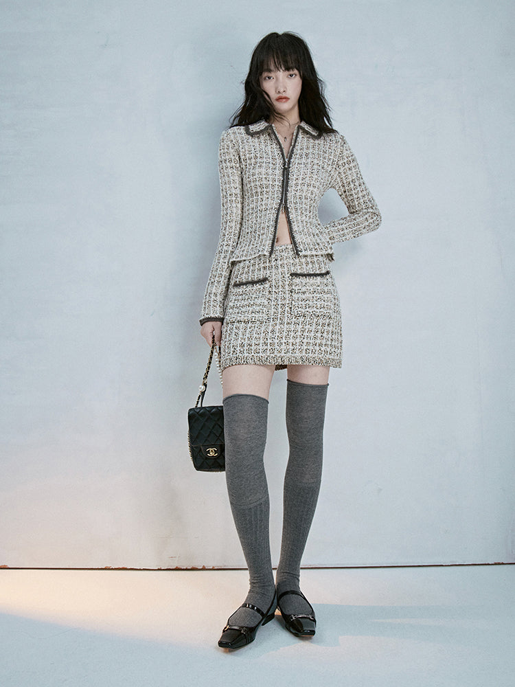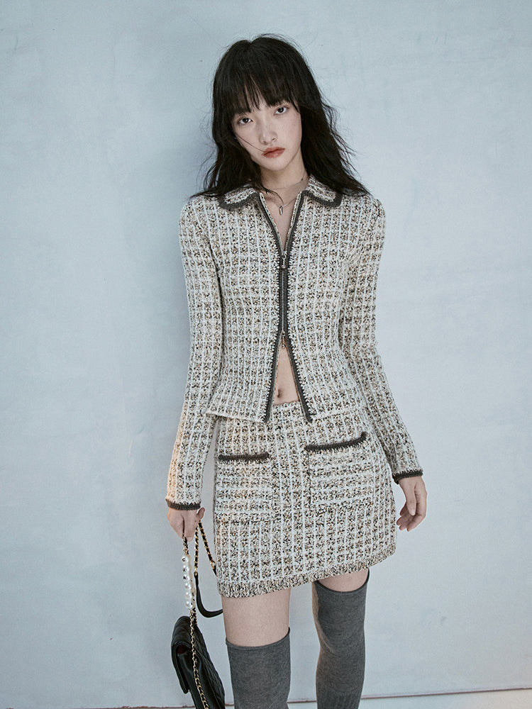Tweed Slim CLOSY Anzugjacke Minirocke