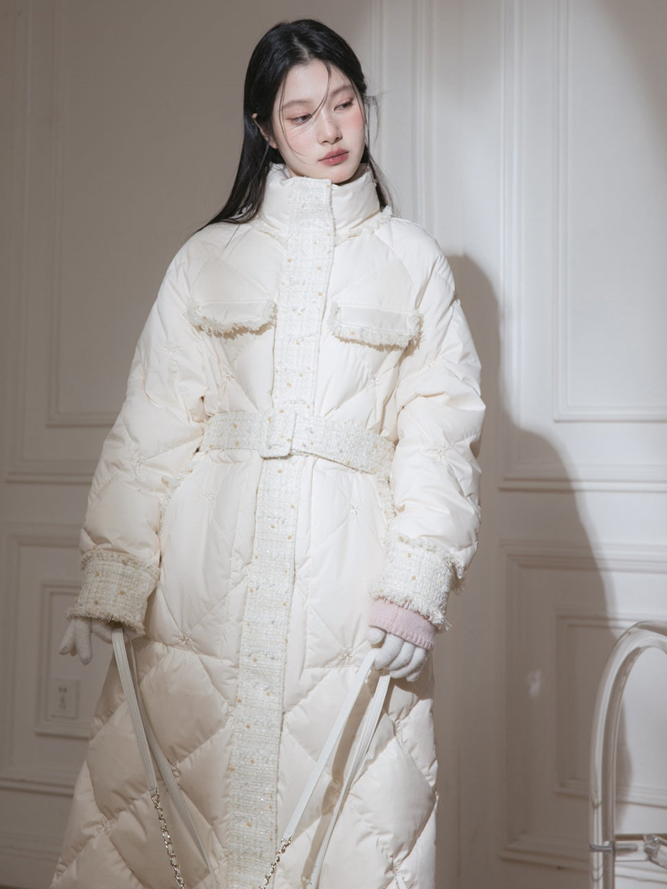Tweedstich Long Down Jacke