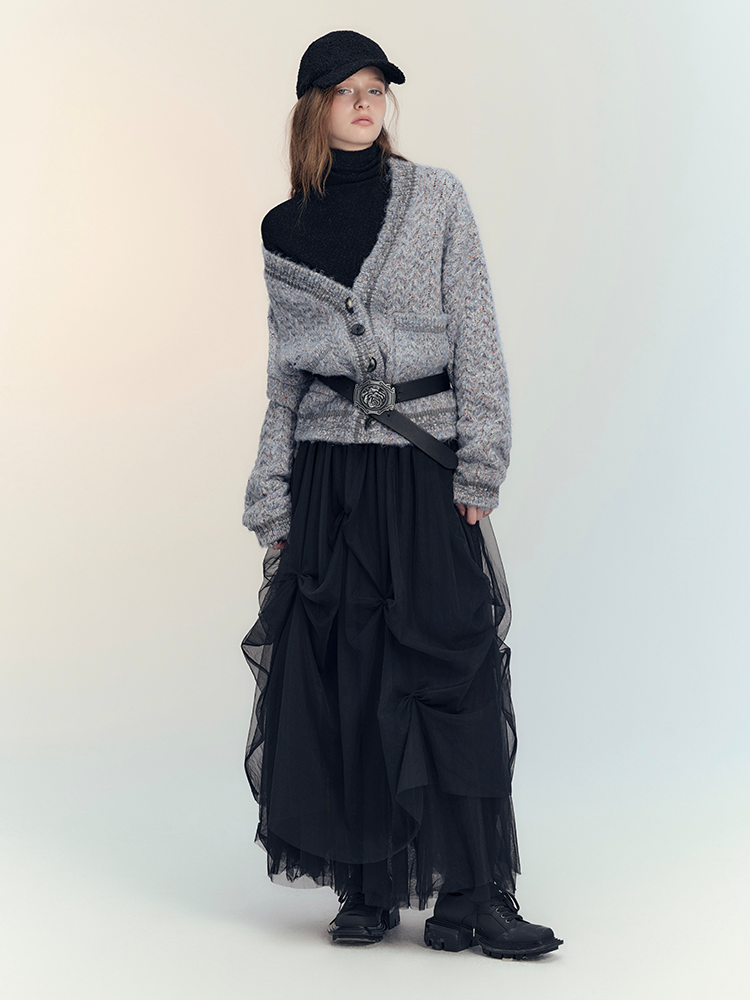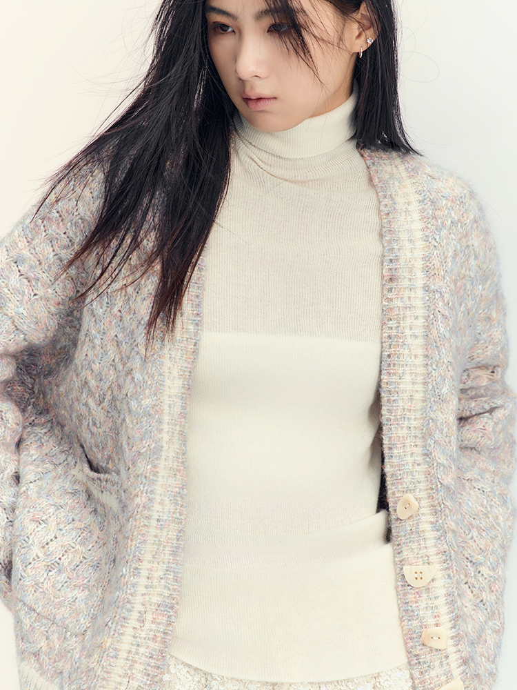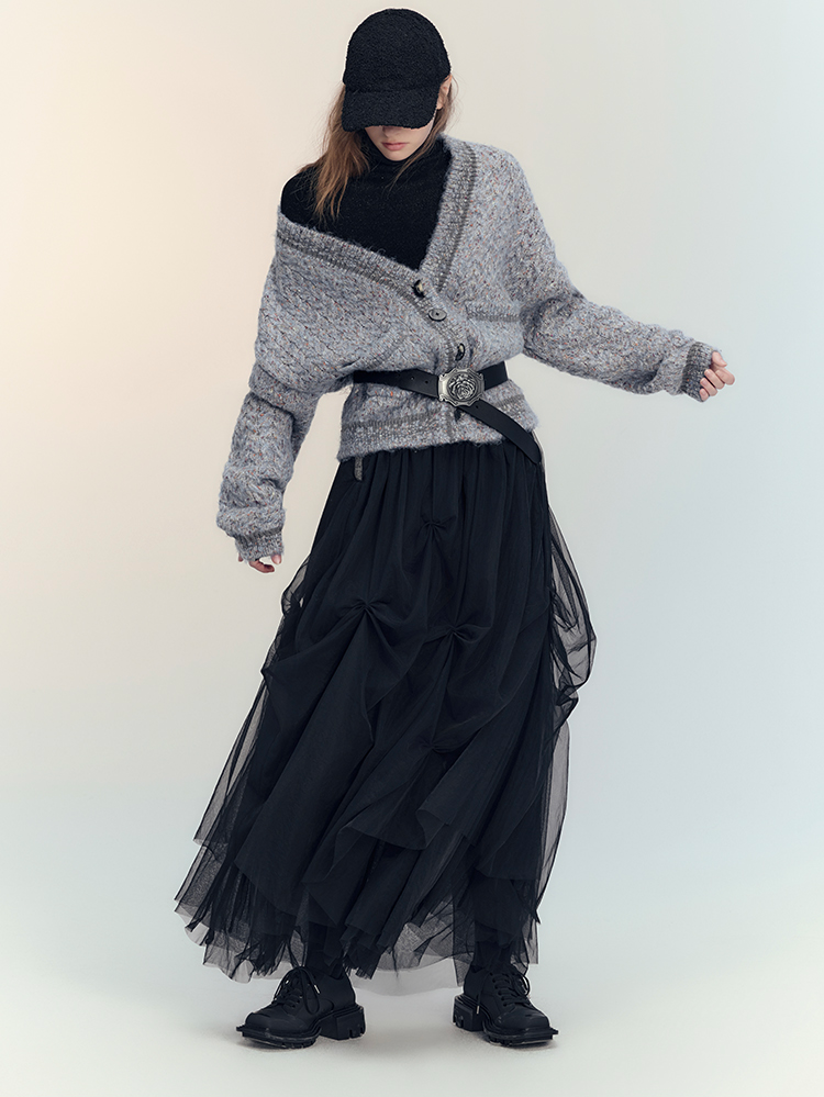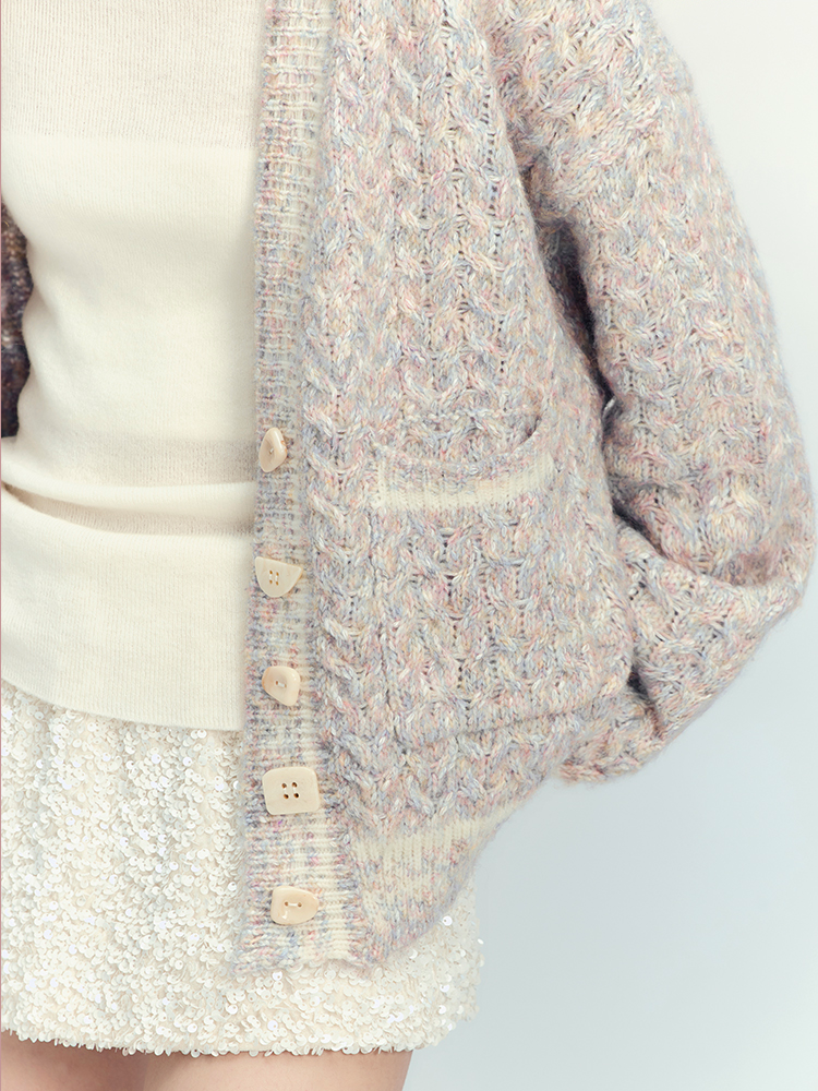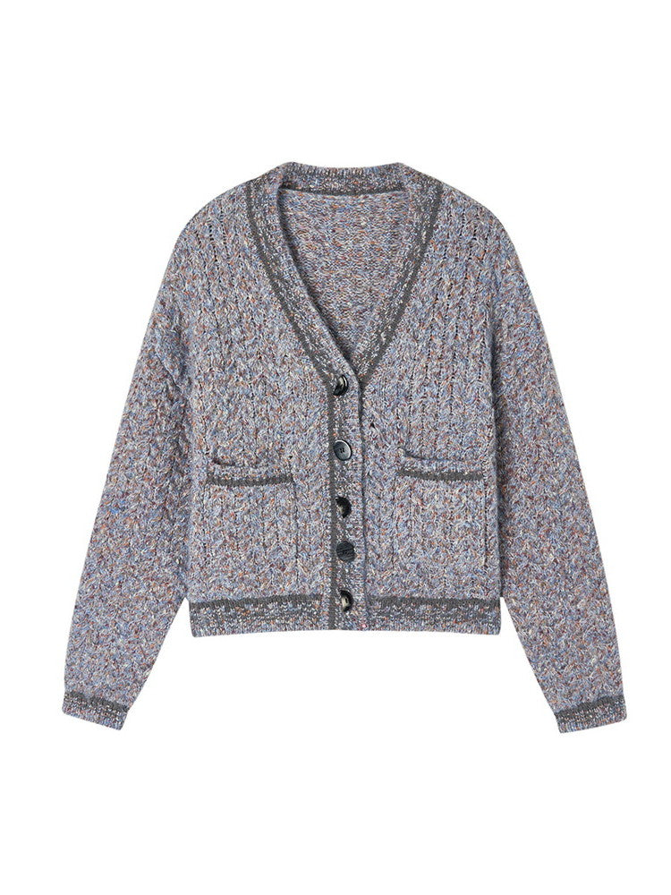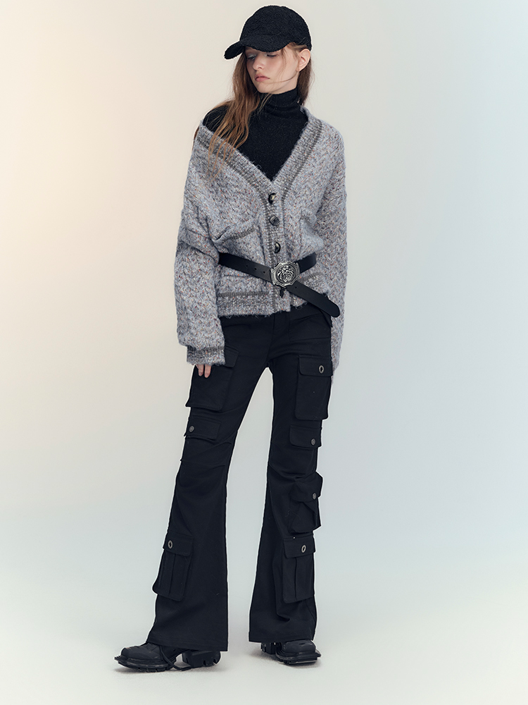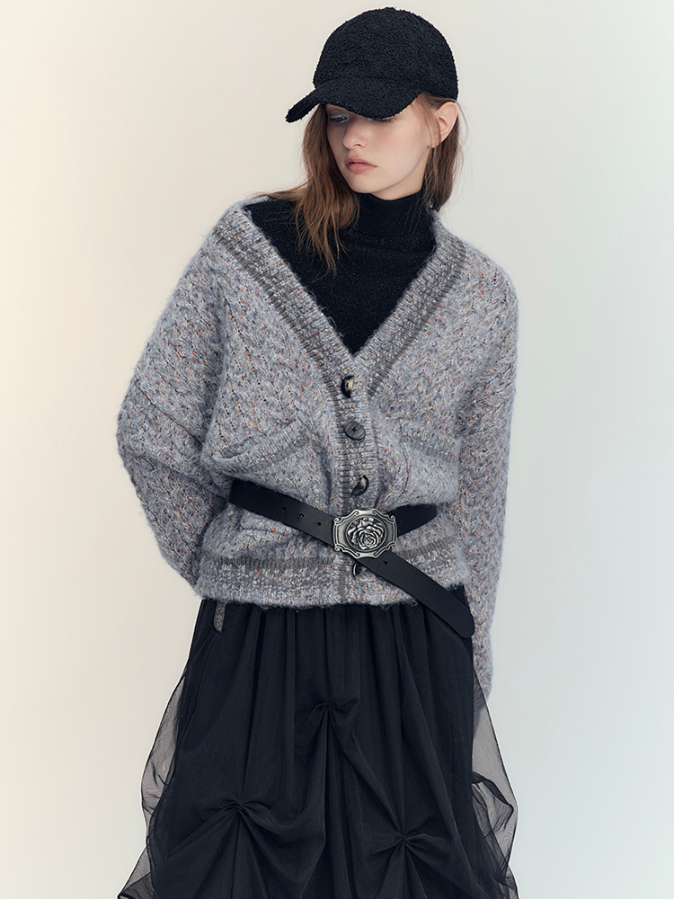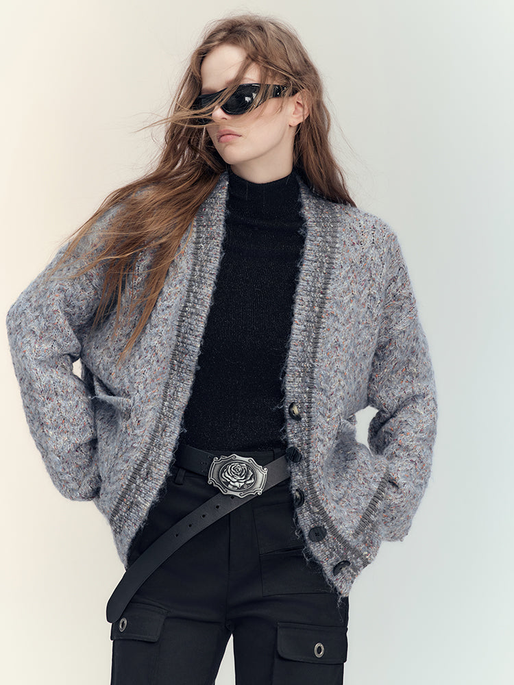 Übergroße Drop-Shoulder-Strick-Strickjacke mit V-Ausschnitt
