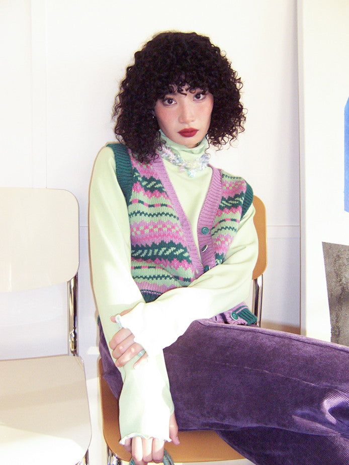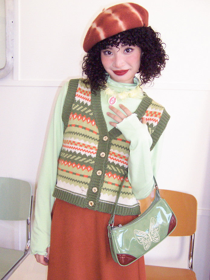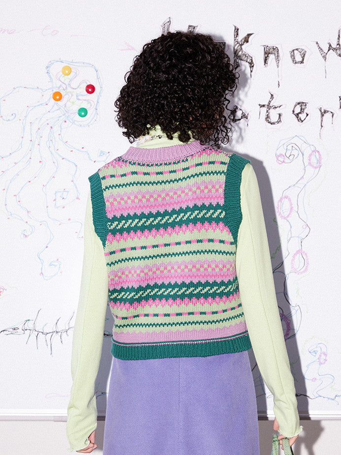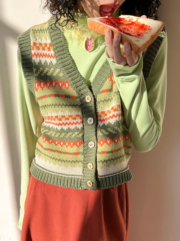 V-Ausschnitt Grenze Retro Casual Vintage Strickweste