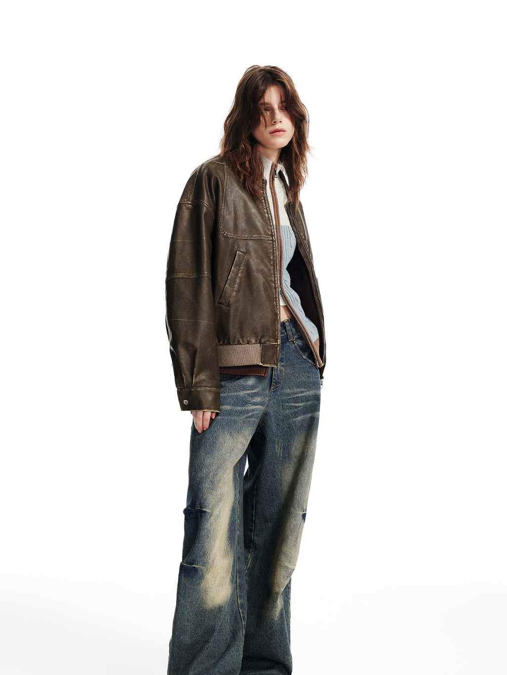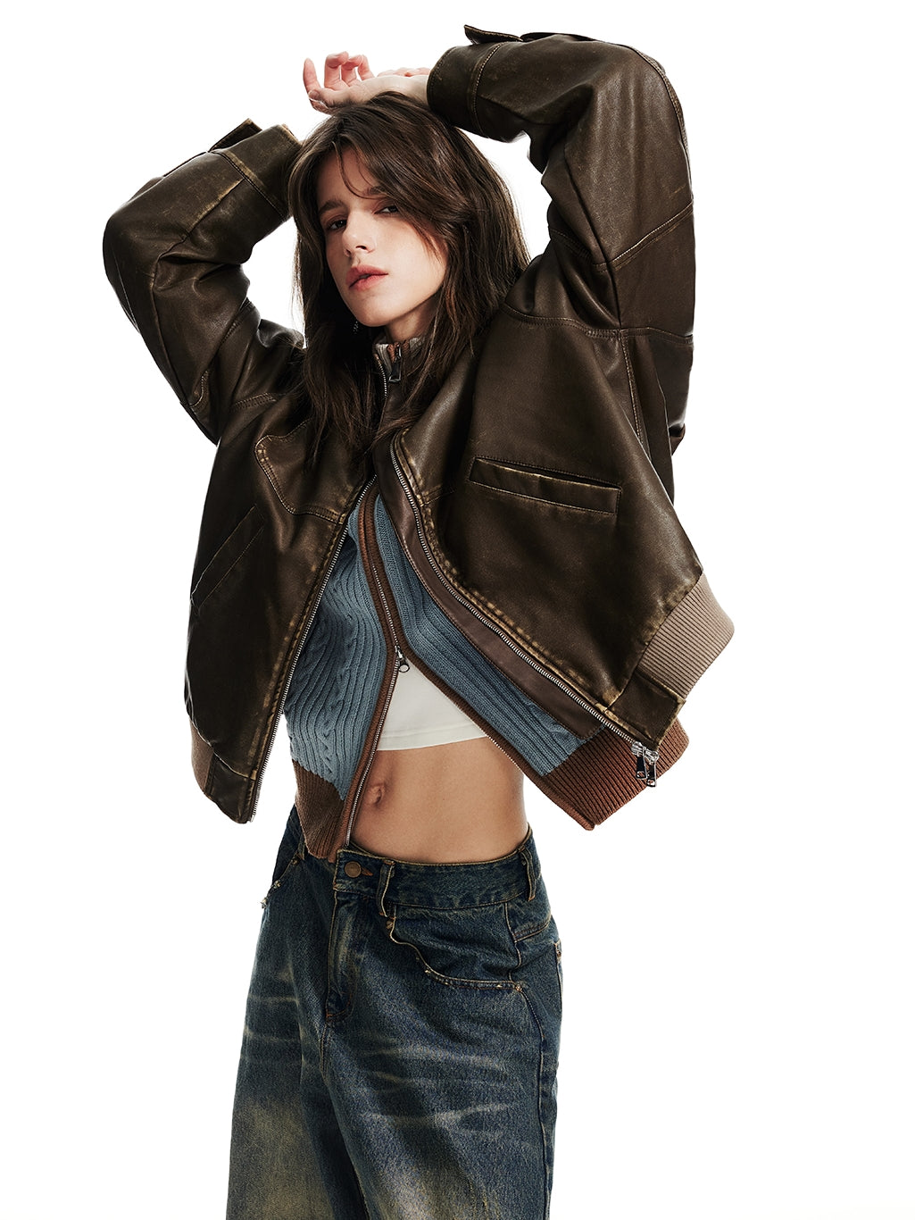 Vintage Retro Stadium-Jumper High-End Leder-Jacket